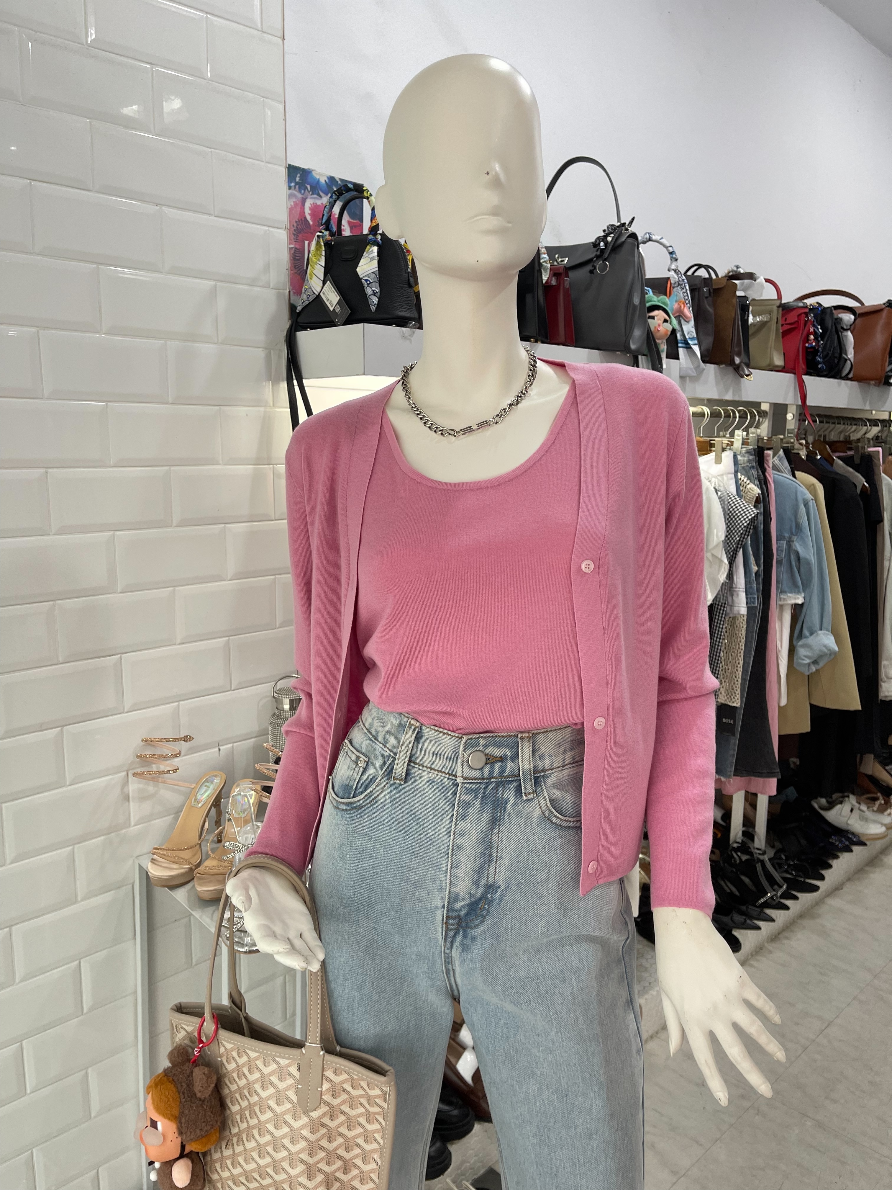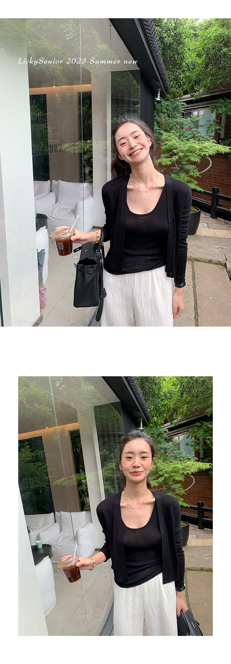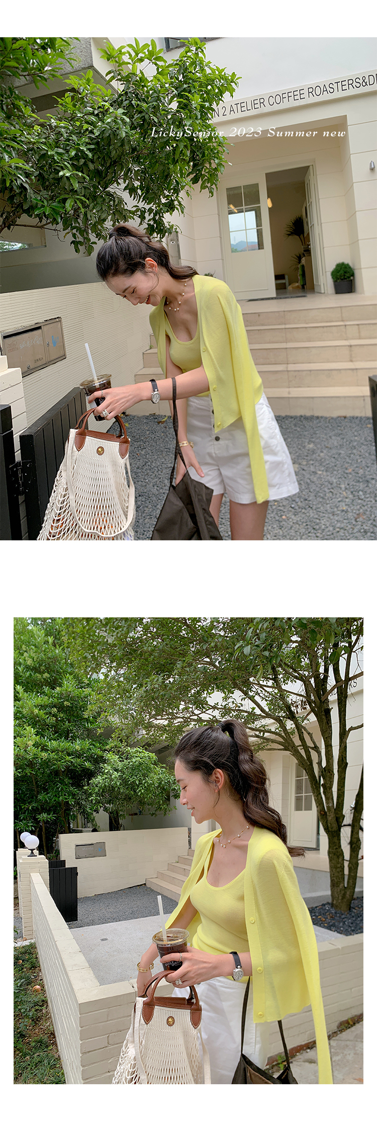 輕柔 U 領背心搭配簡約針織外套,展現柔和甜美的休閒風情。U 領設計優雅性感,修身版型勾勒出自然曲線。針織外套質地細緻柔軟,遮蓋適度,營造柔和氣質。多種顏色選擇,可搭配多種場合,是春夏外出的時尚好選擇。