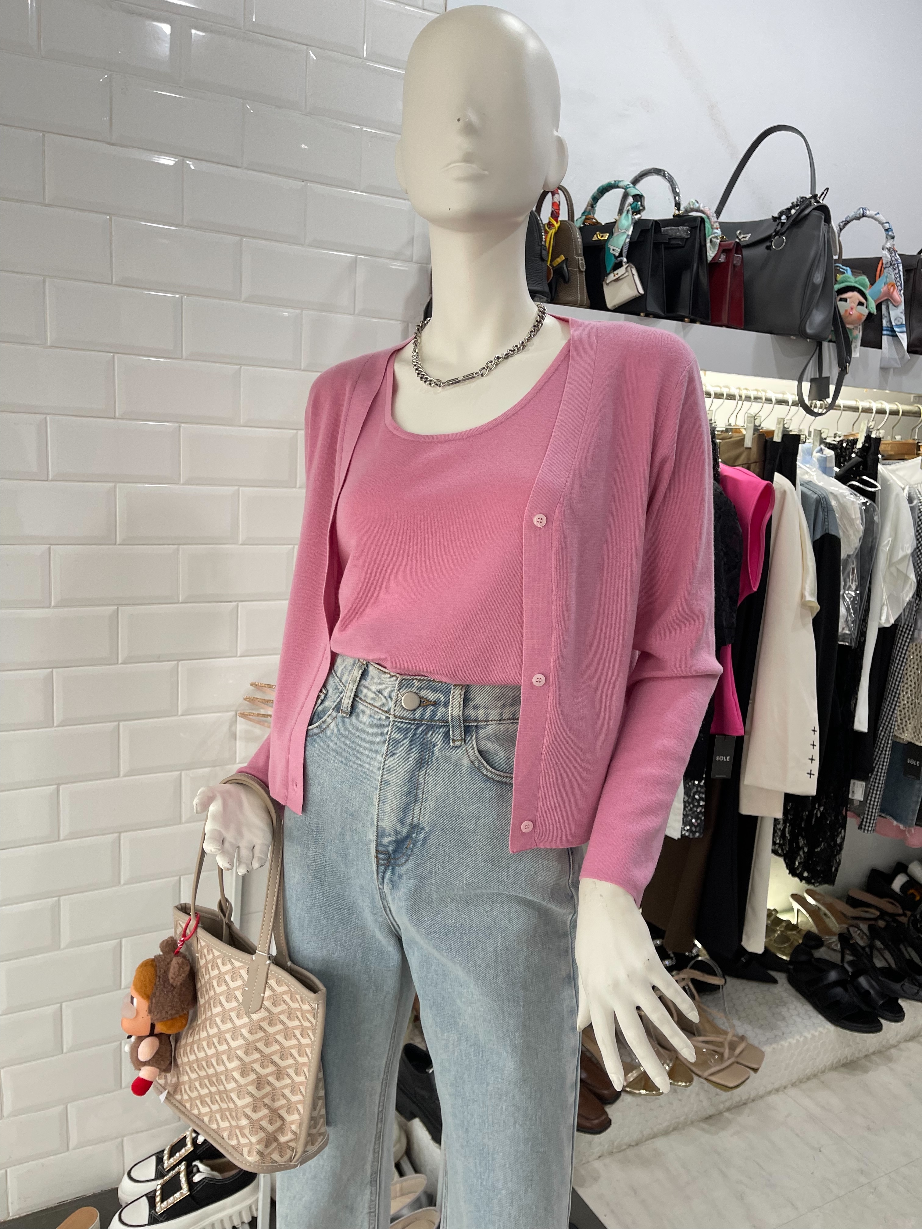 親膚小性感 U領背心+針織外套(2件組)(多色)