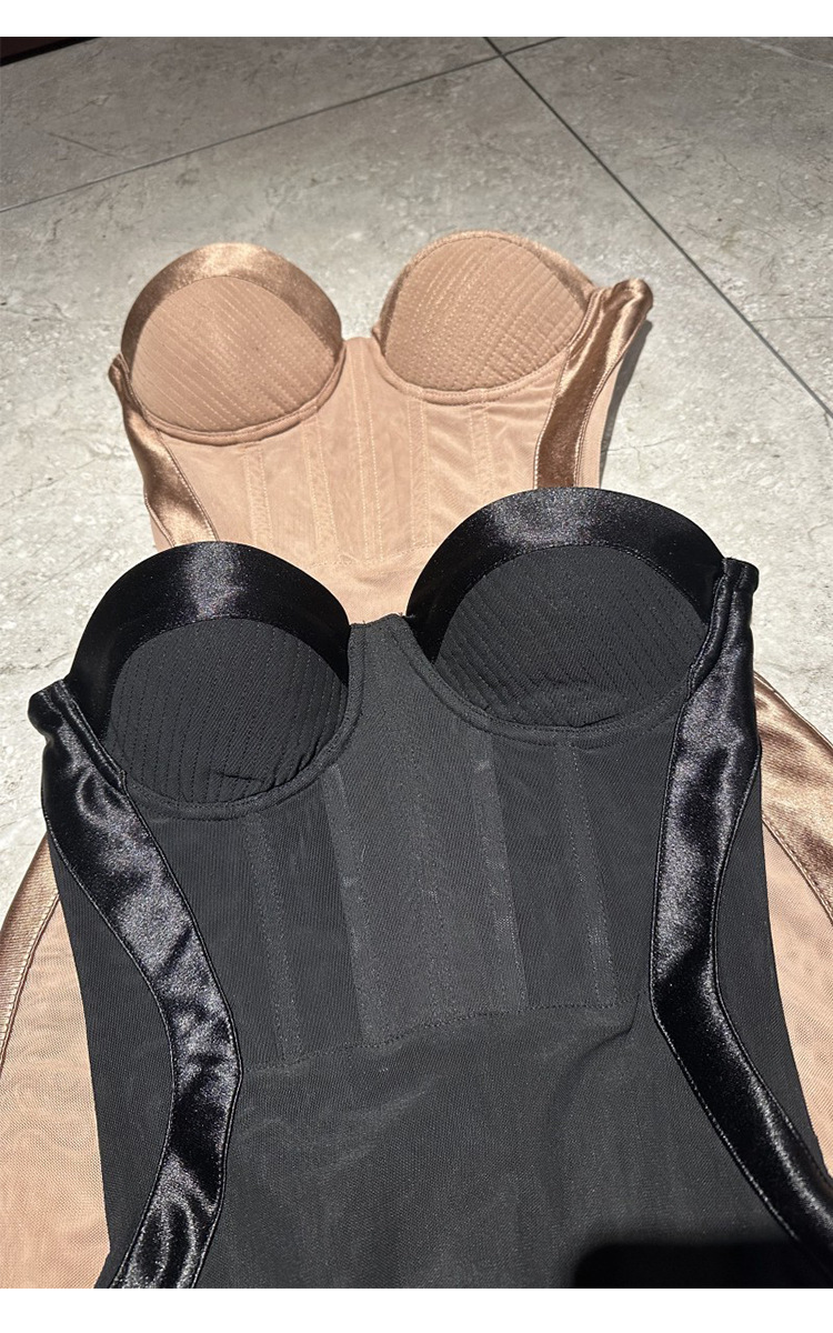 柔軟細緻的綢緞拼接設計,勾勒出迷人曲線輪廓。
