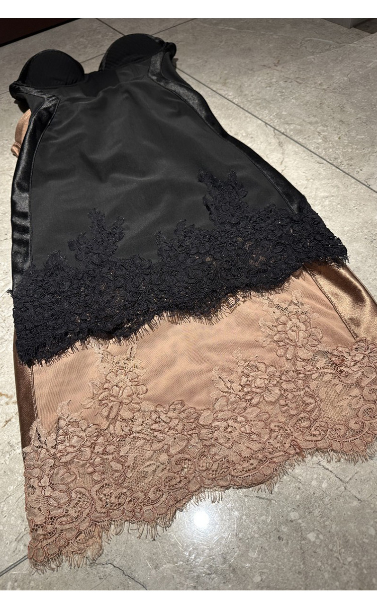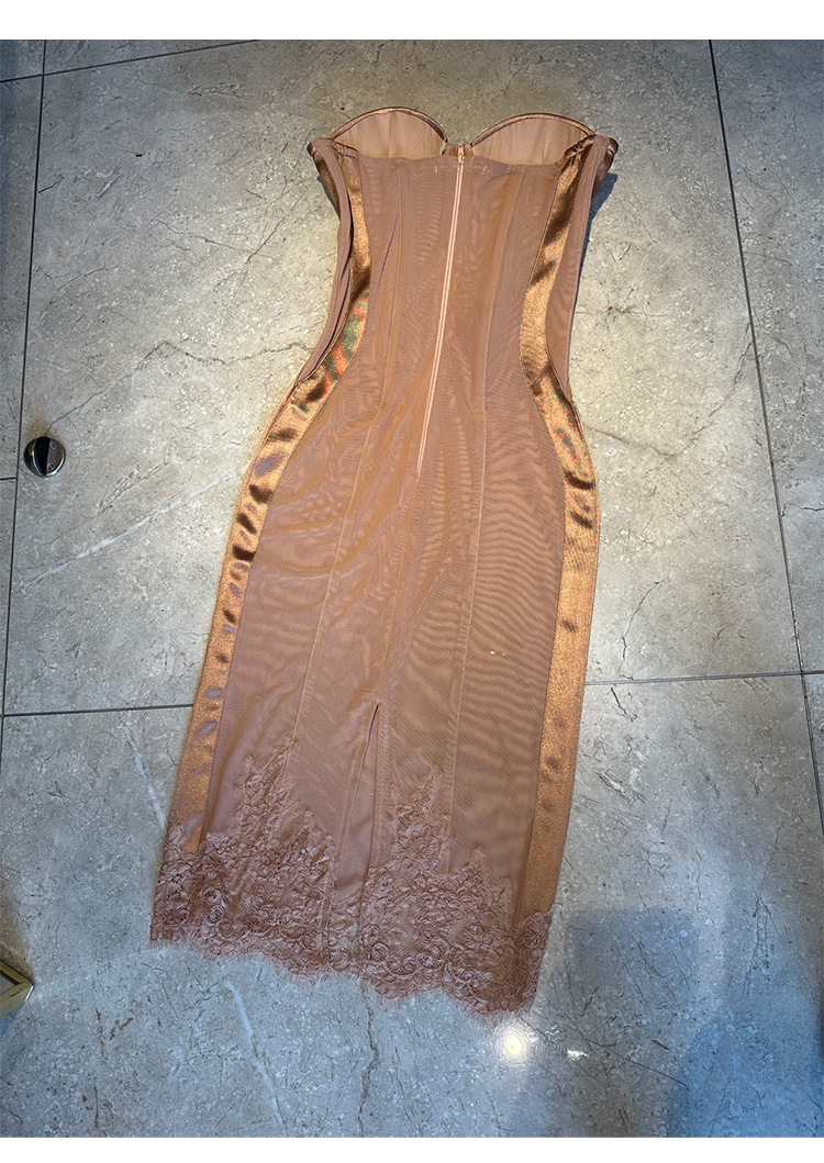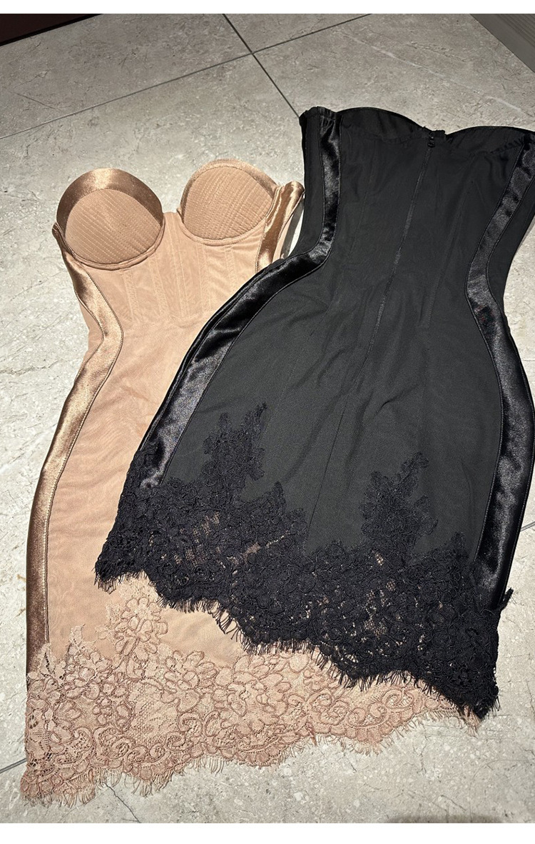 大亨小傳style_綢緞拼接 繃帶魚骨顯瘦小禮服(裸粉/黑)