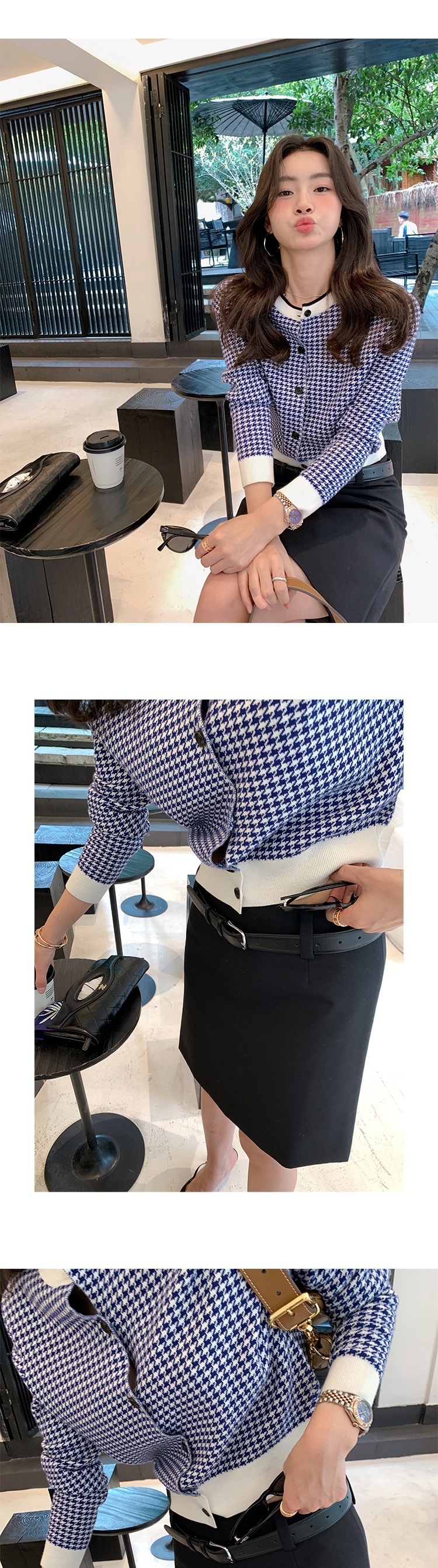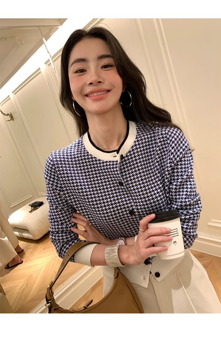 優雅中帶有些許街頭感,這款千鳥格紋外套是休閒時尚的好選擇。清新簡約的藍白色調,適合多種場合搭配,展現出自然舒適的優雅氣質。輕薄彈性的針織面料,穿著舒適又顯瘦,彰顯您的優雅女性魅力。精緻的排釦設計增添了細膩的優雅感,讓您隨時都能展現出時尚品味。無論是外出約會或是日常休閒,這件百搭款都能成為您的最佳選擇。