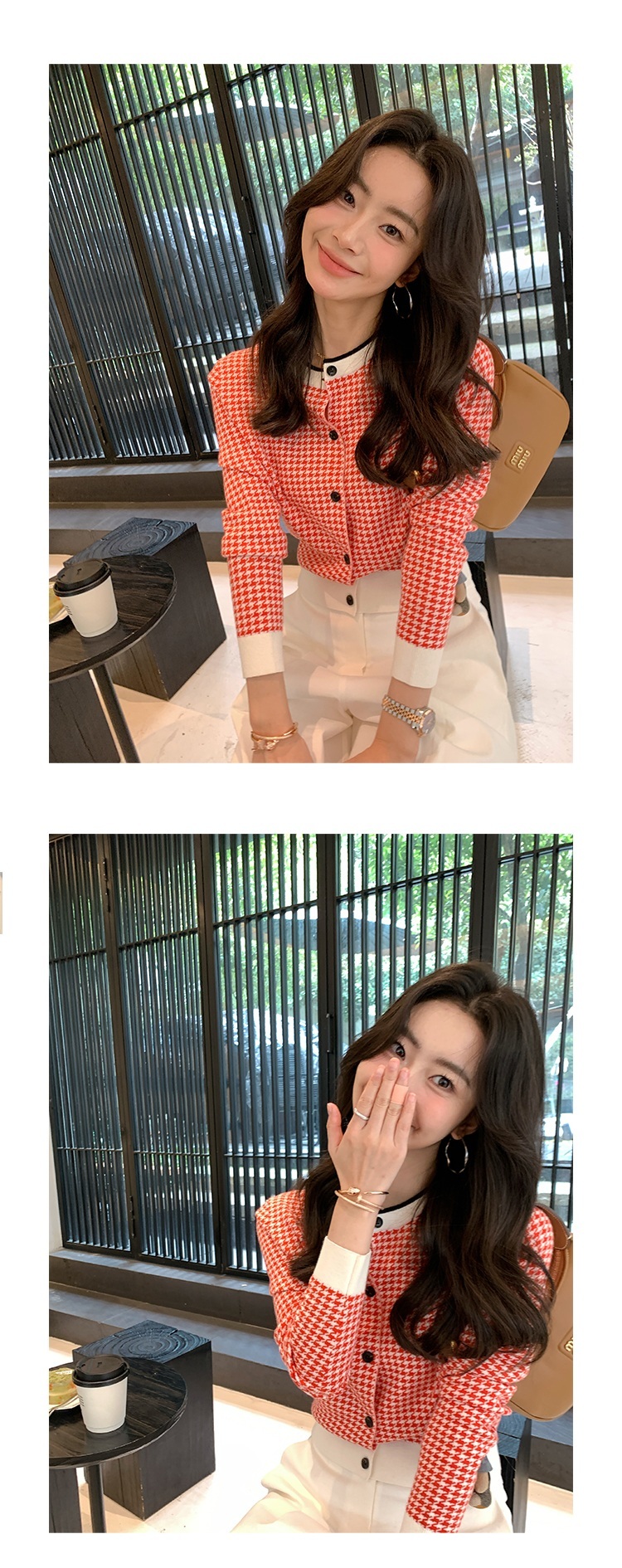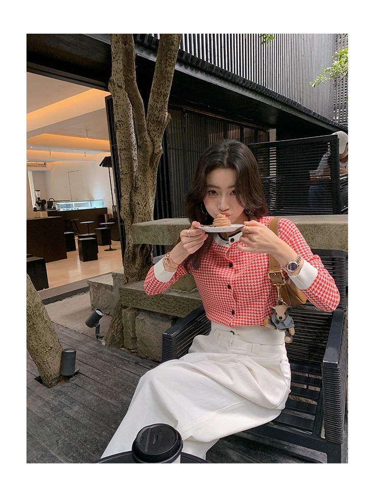 千鳥格紋 薄針織外套(紅/藍)