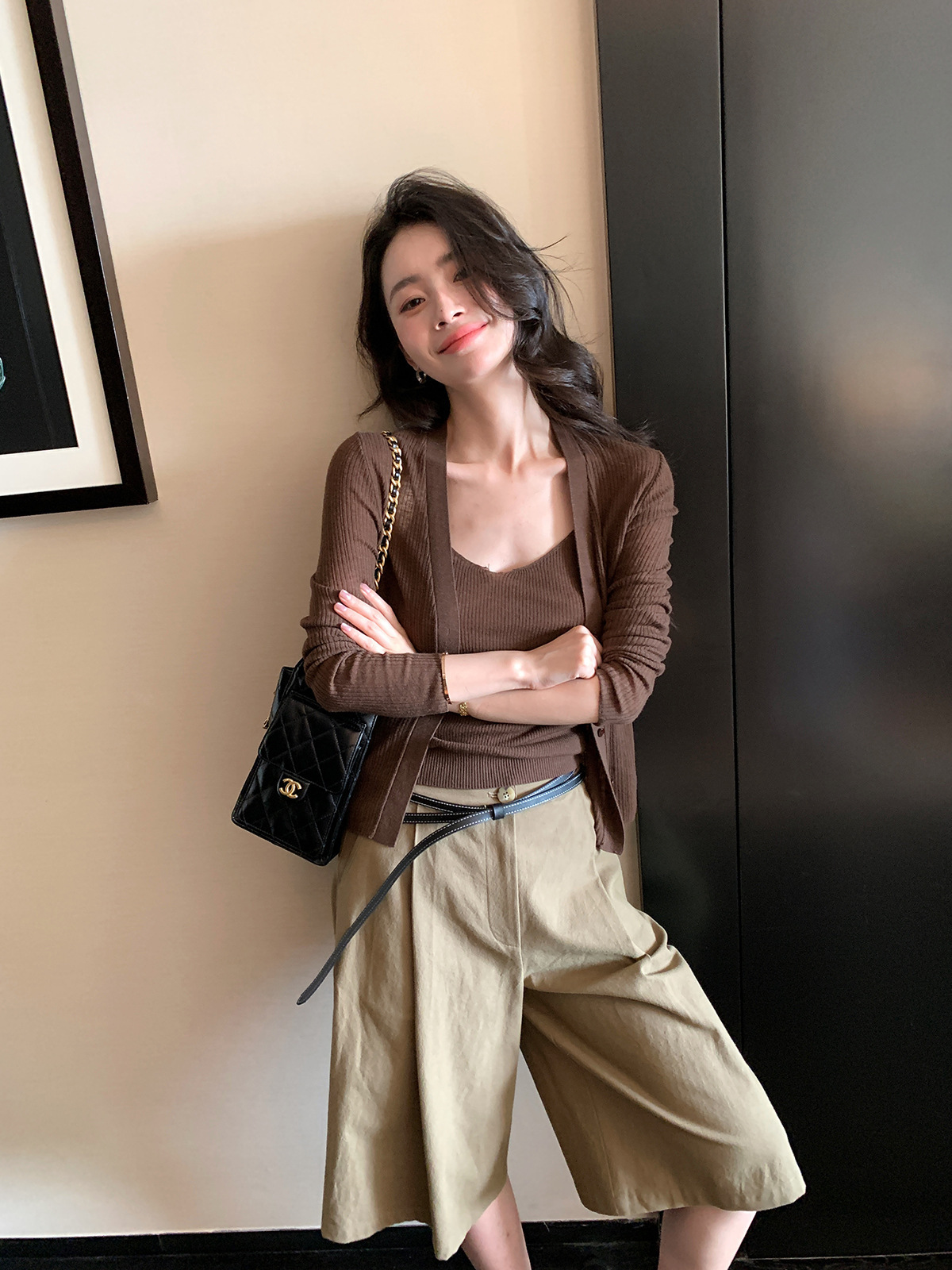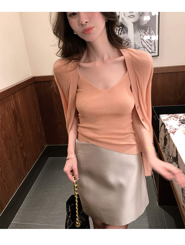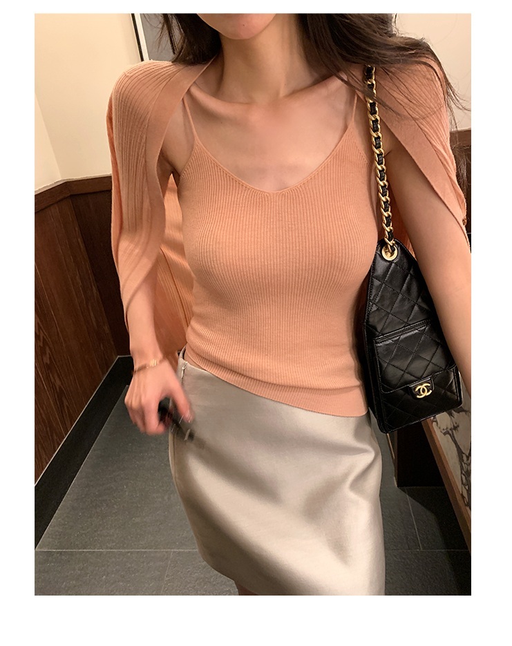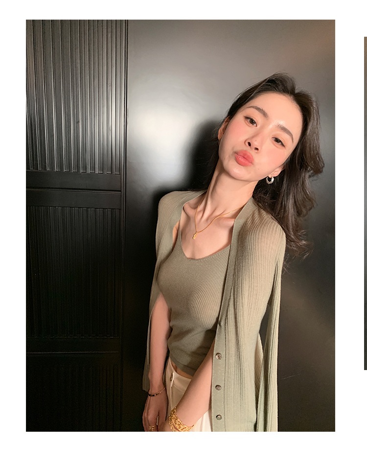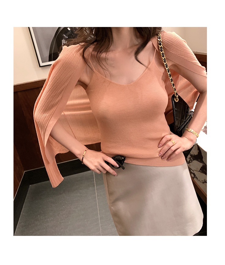 涼感針織 細肩帶背心+外套(綠/粉/咖)