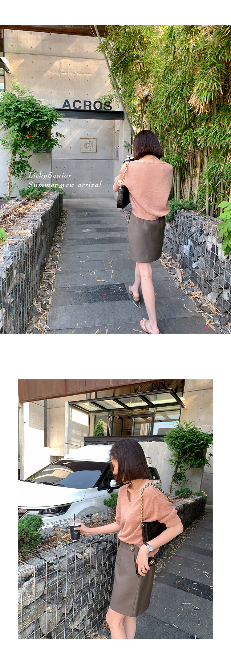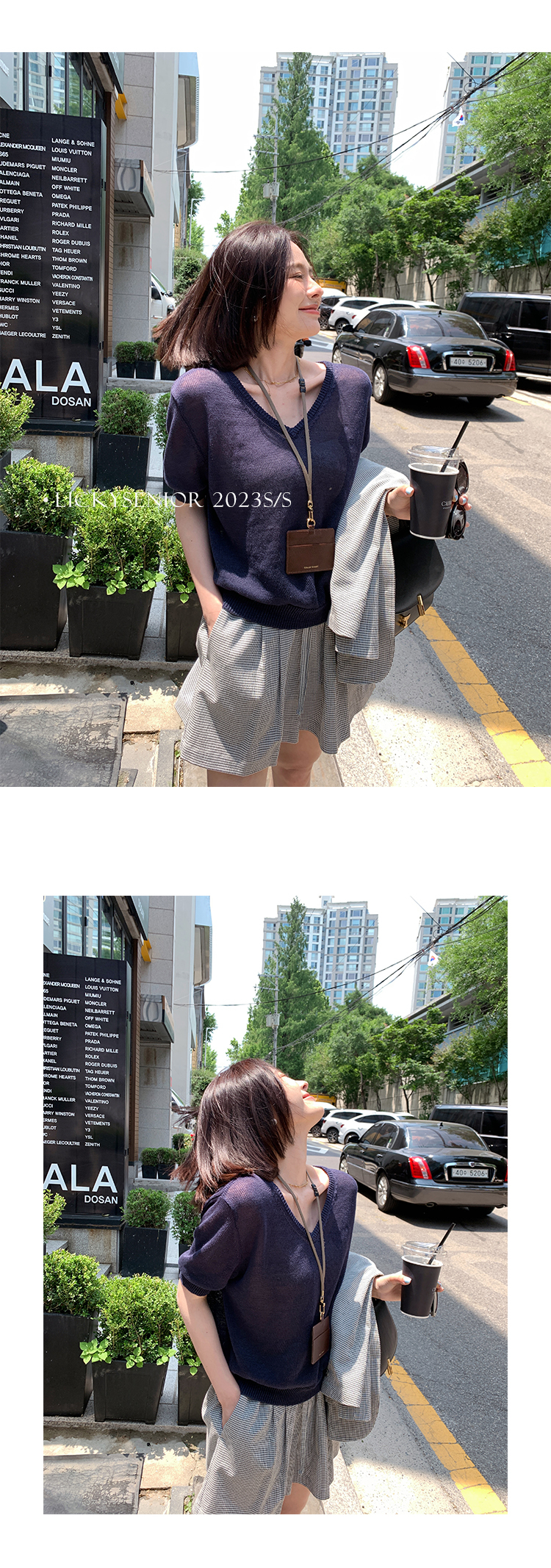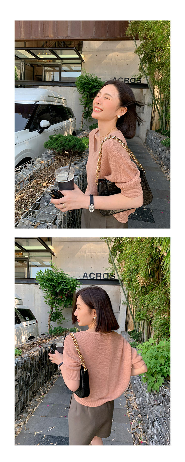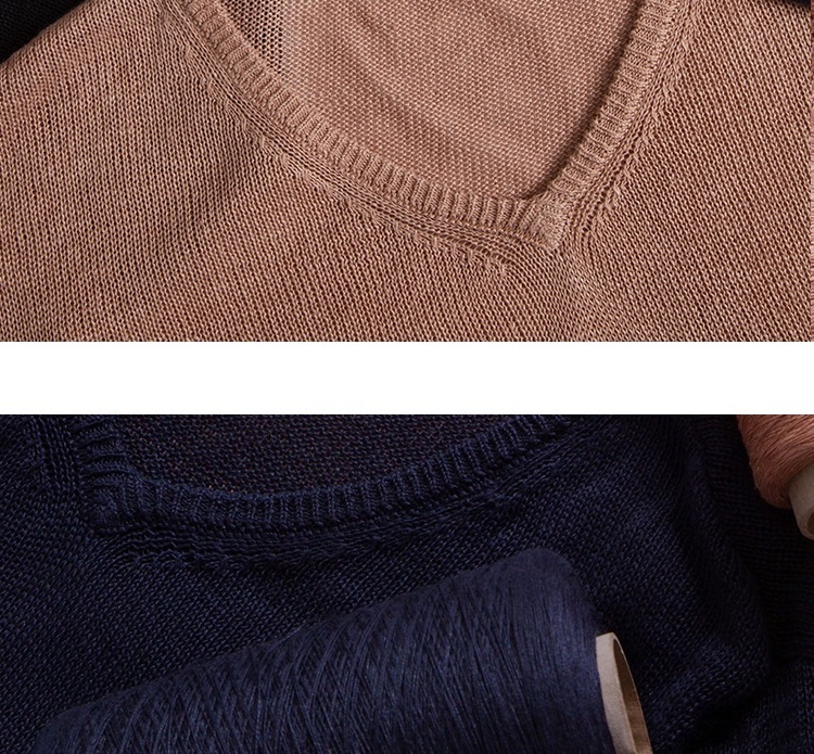 麻料薄針織 V領質感上衣(黑/皮粉/深藍)