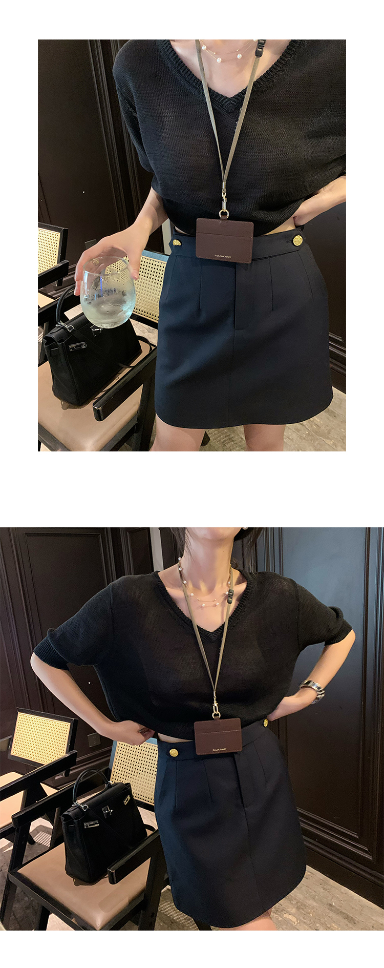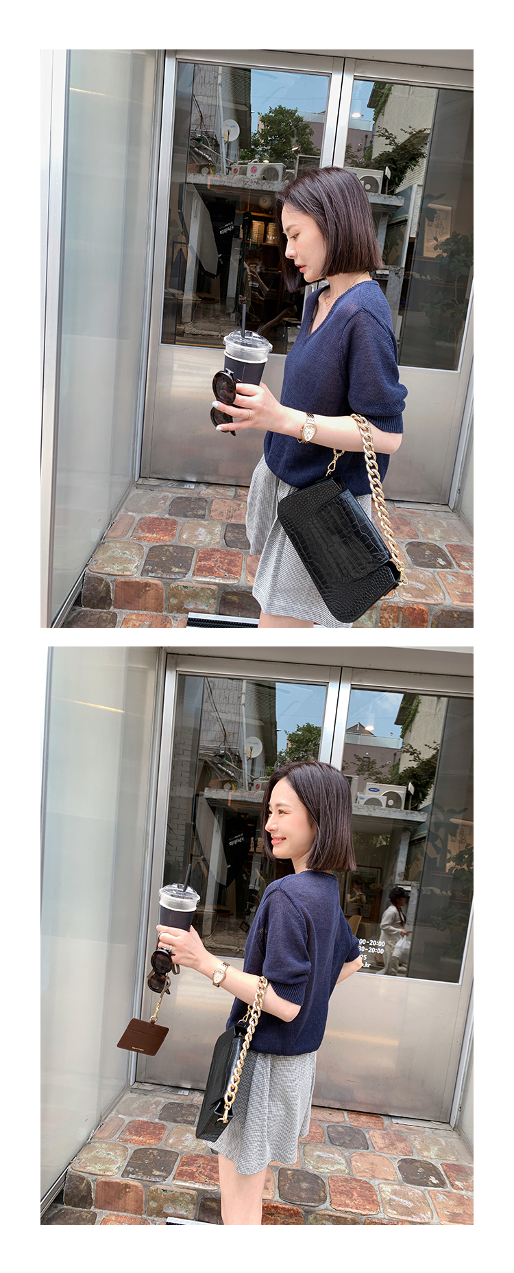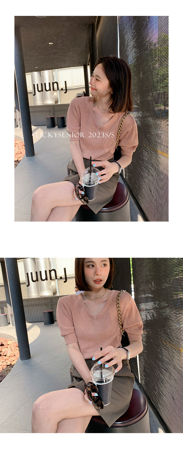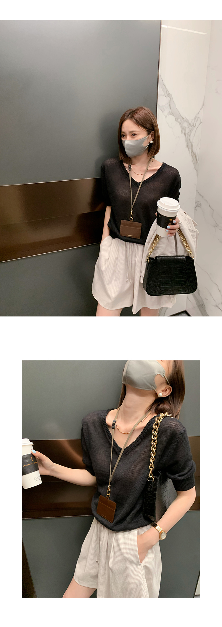 麻料薄針織 V領質感上衣(黑/皮粉/深藍)