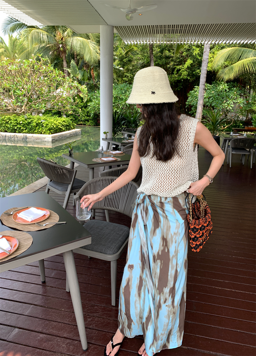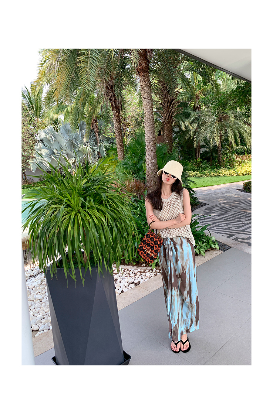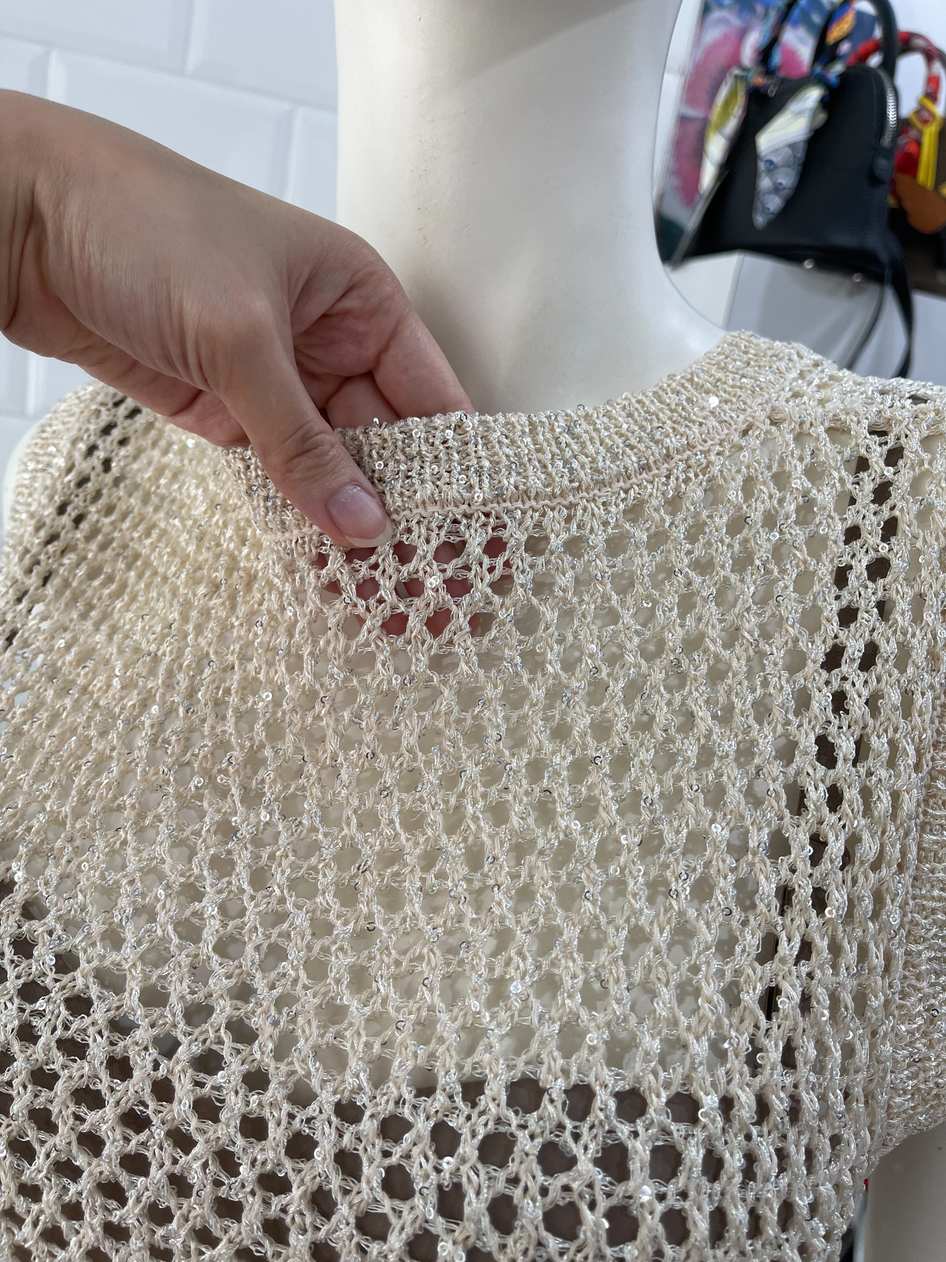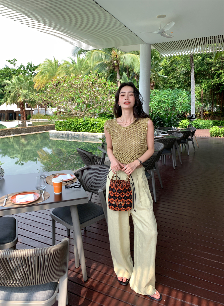 搖滾個性風 流金麻簍空背心(花灰/米白)