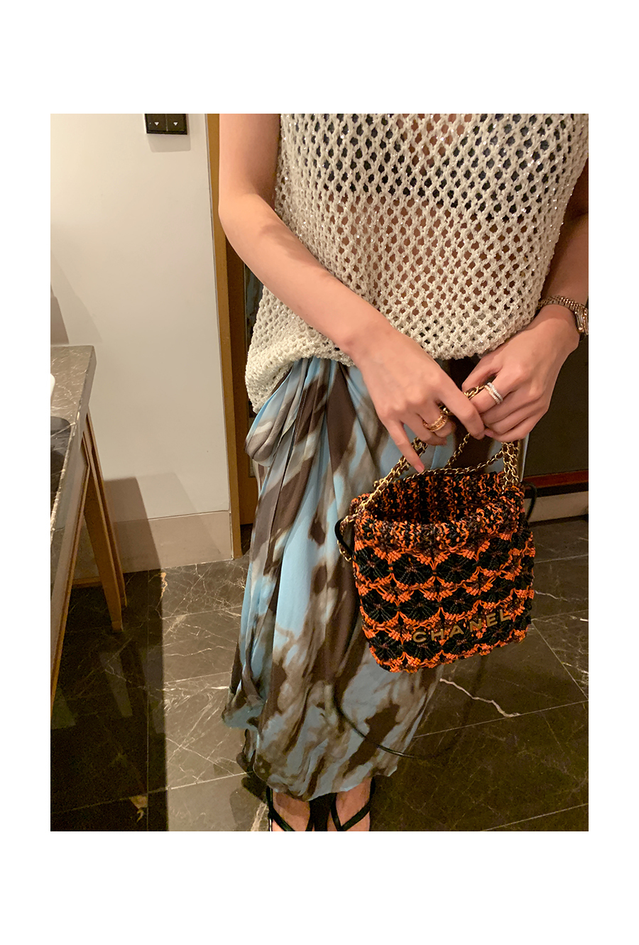 流金色澤的襯料簇簇織成霧面質感,輕盈又富有層次。