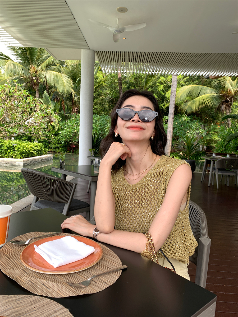 簍空剪裁彰顯性感氣質,展露鎖骨線條優雅動人。