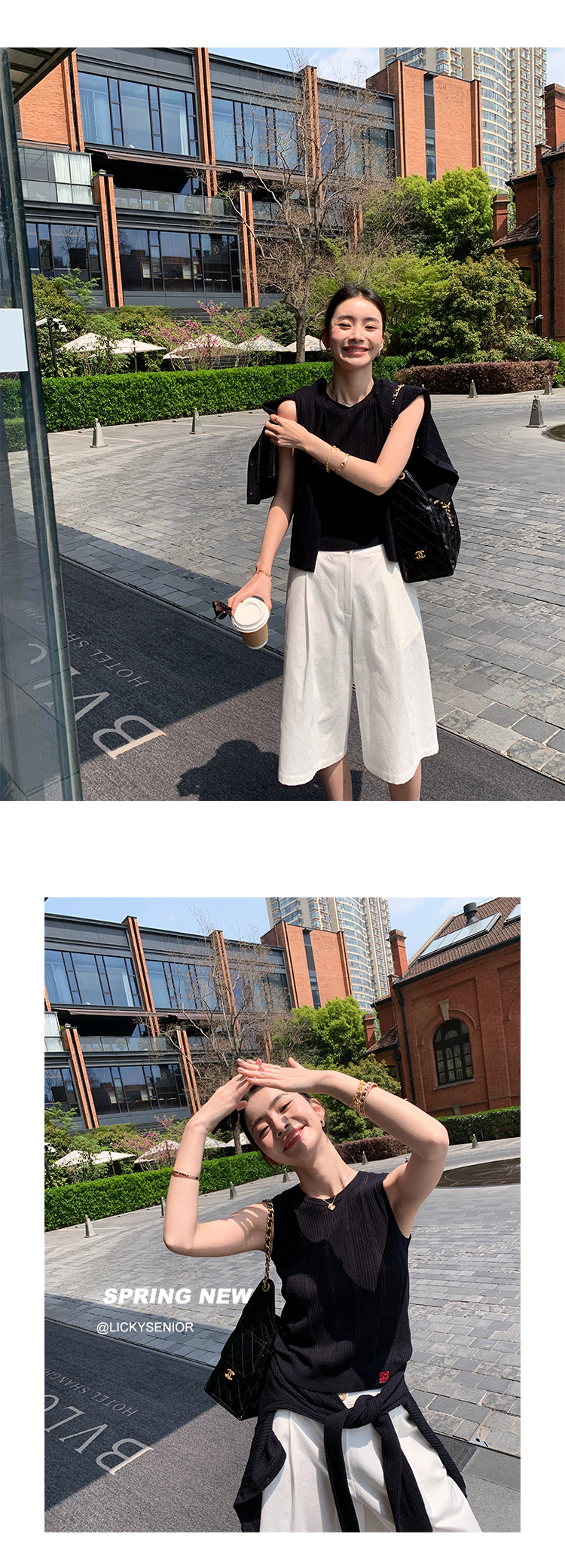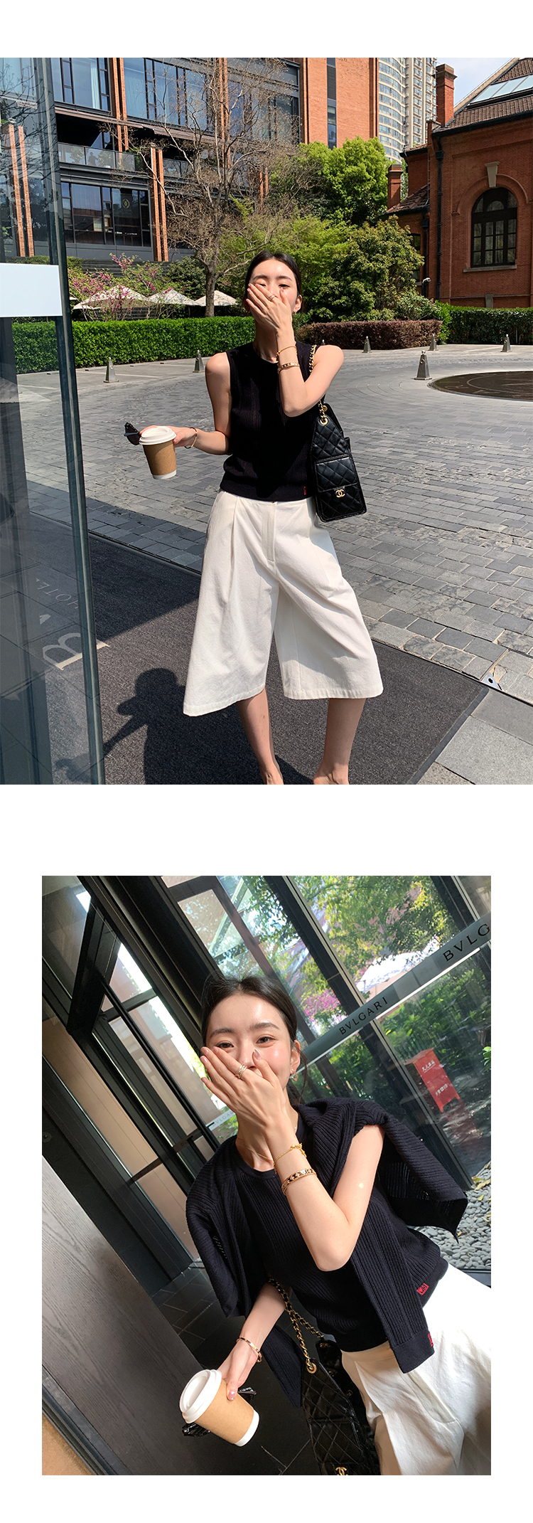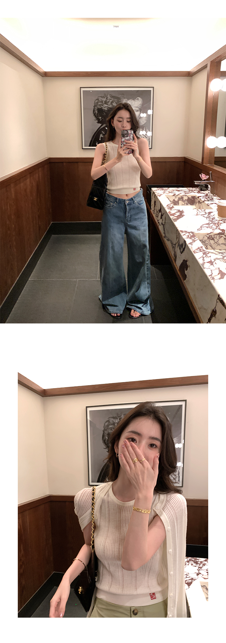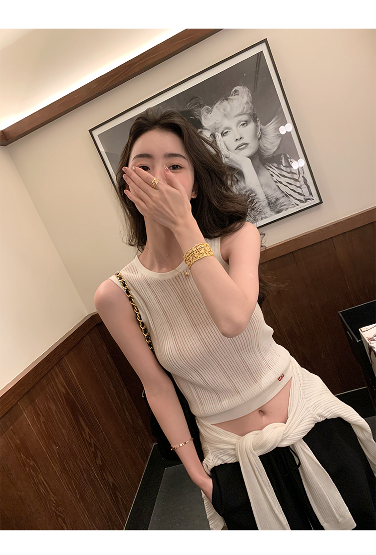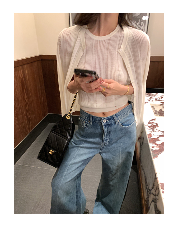 冰絲針織 涼感無袖上衣+外套 (白/深藍)