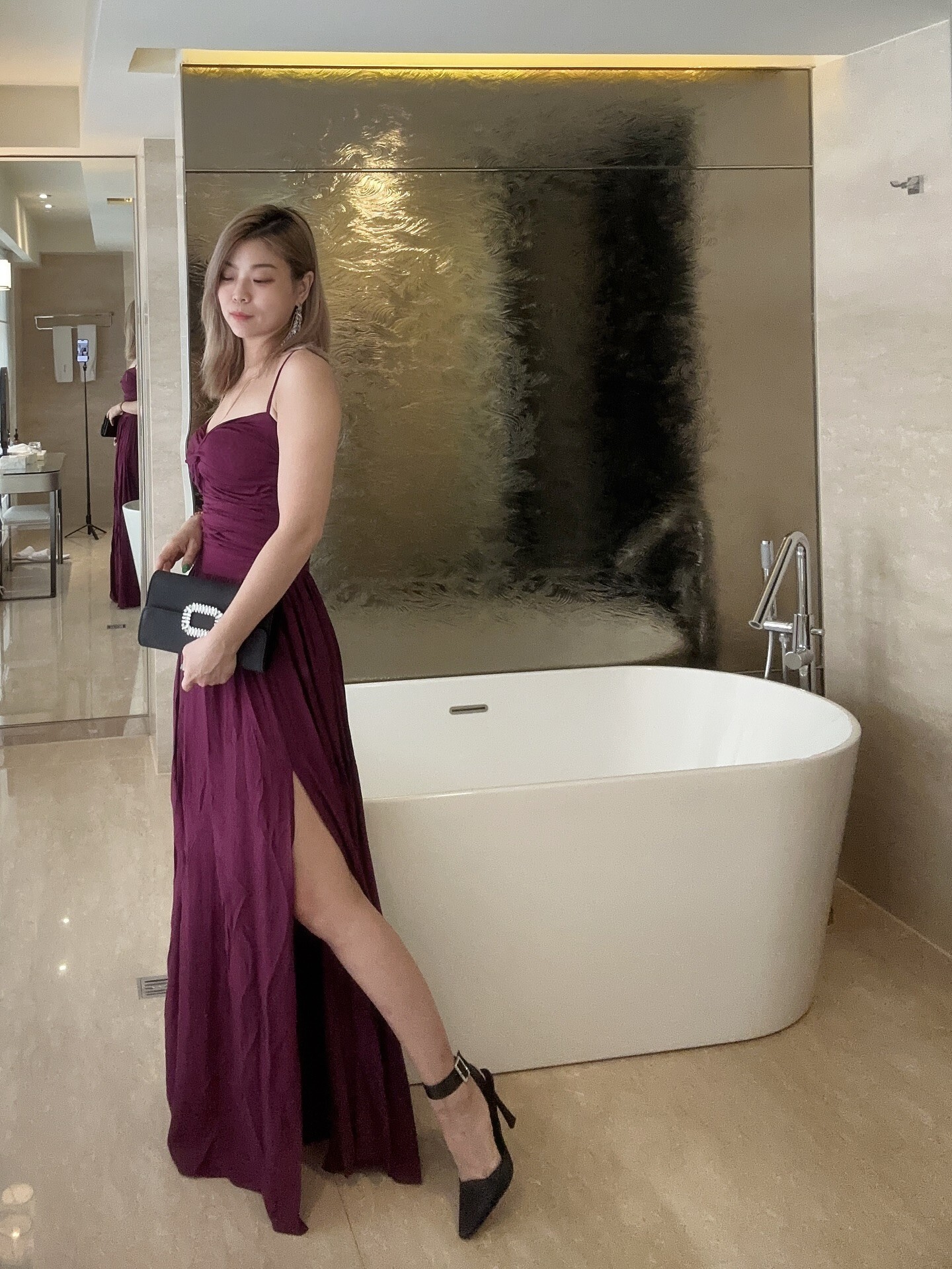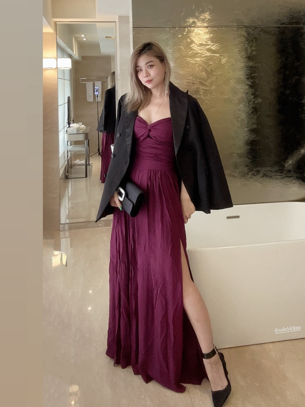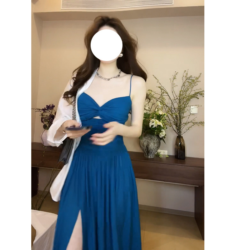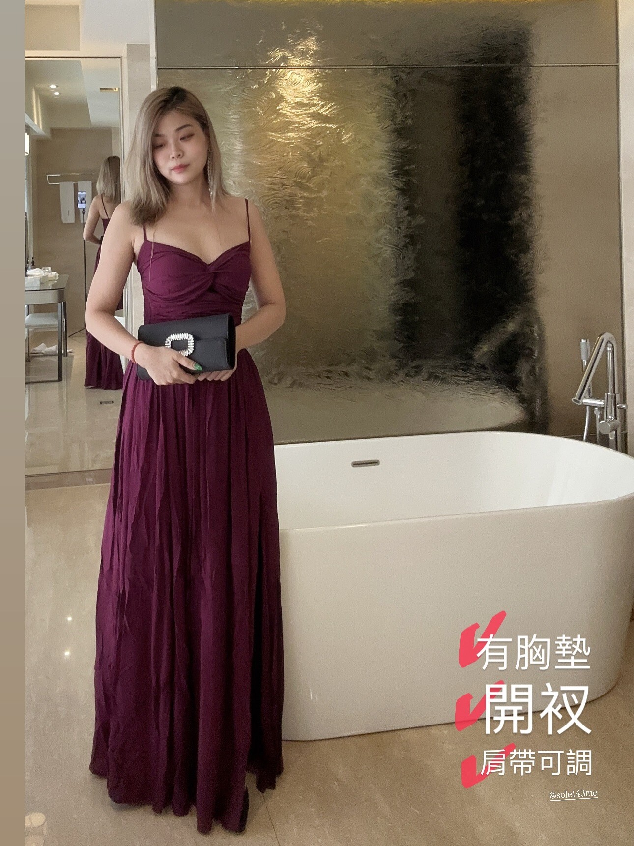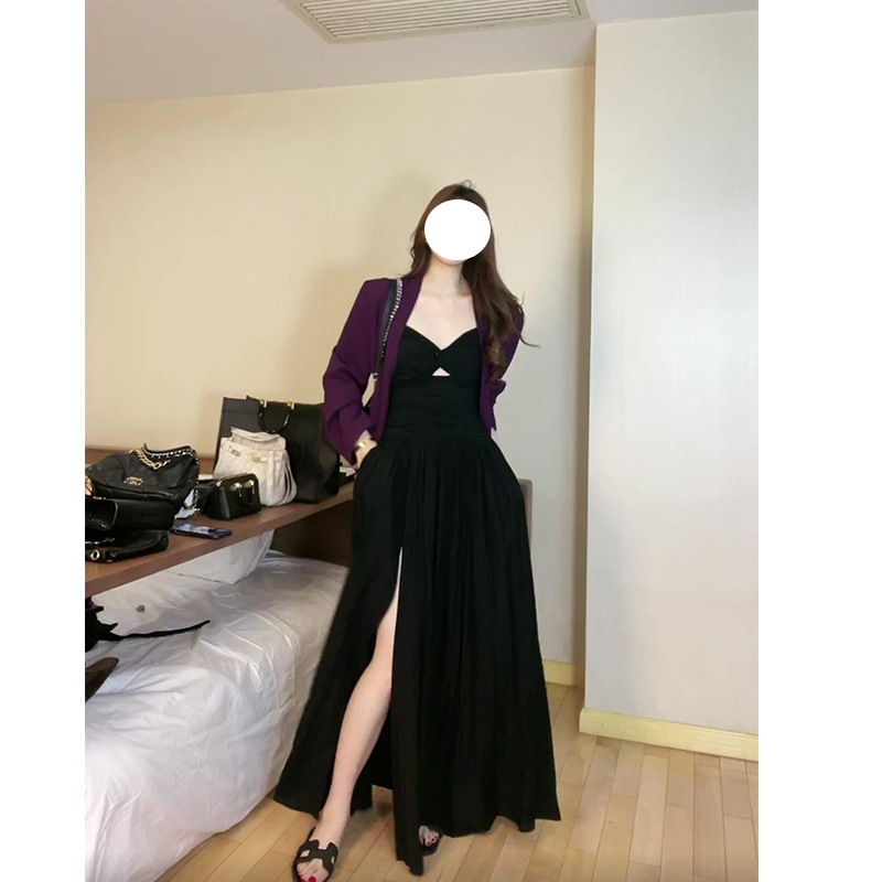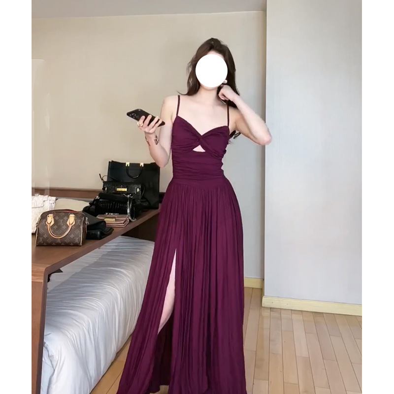顯瘦收腰 露背開衩長洋裝(紫/黑/孔雀藍)