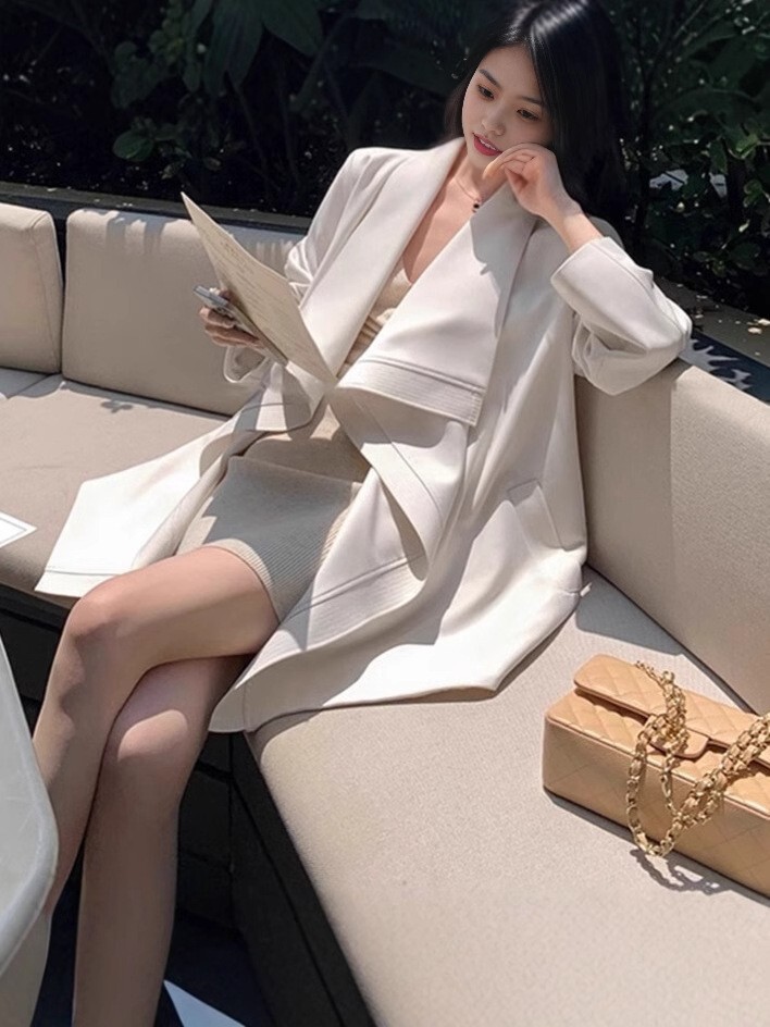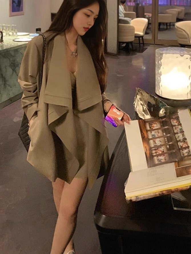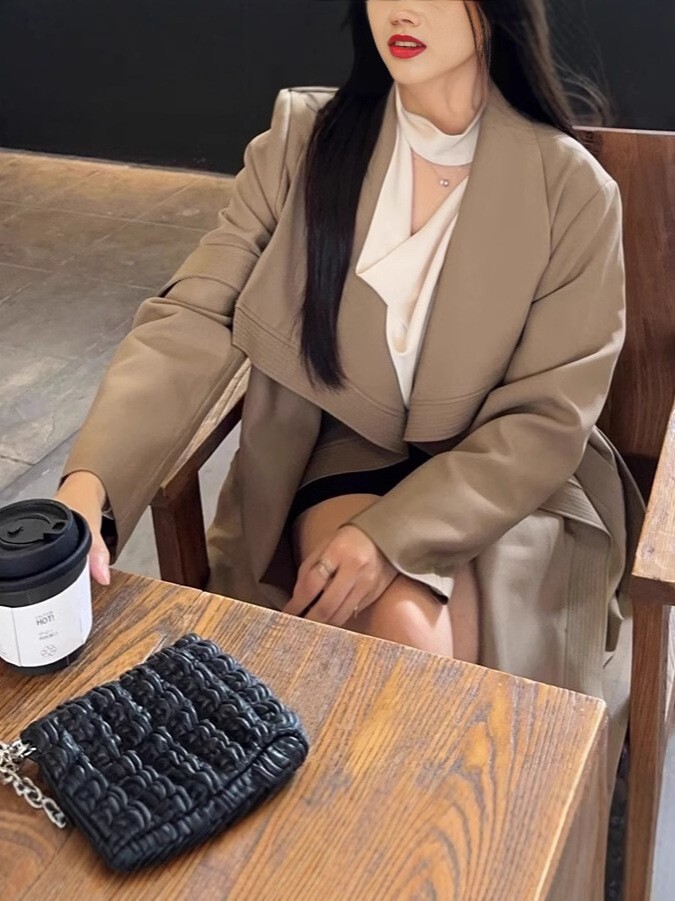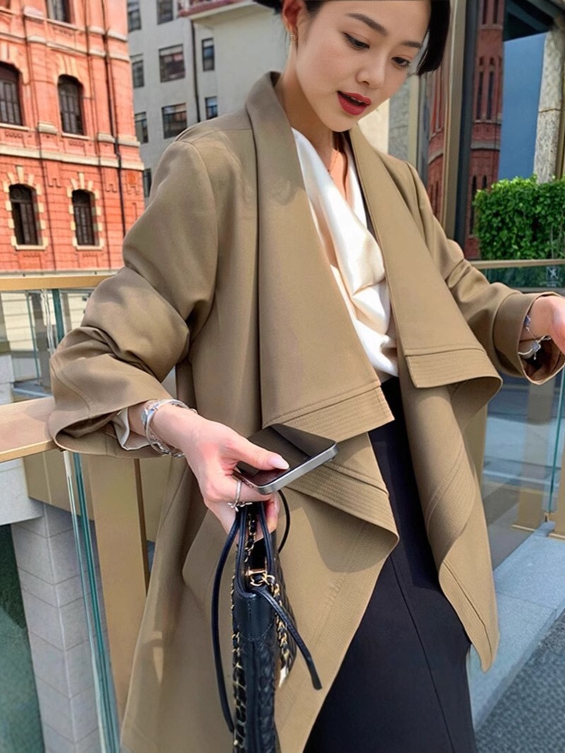 波浪大翻領風衣外套
