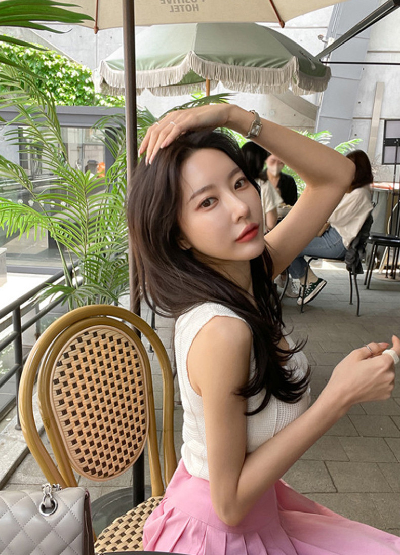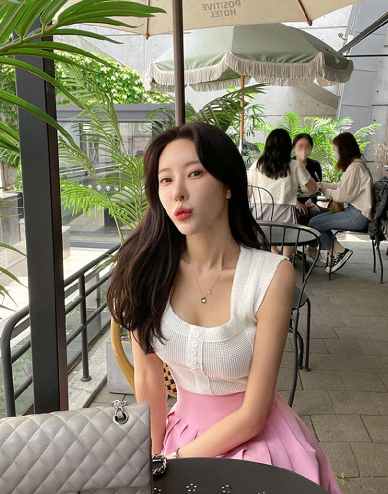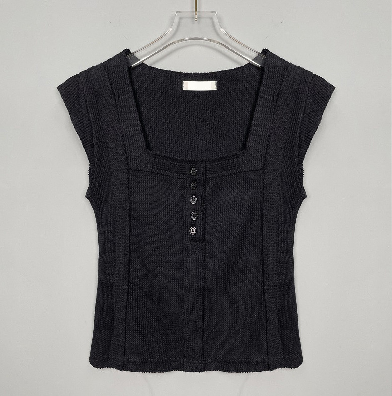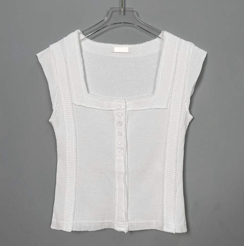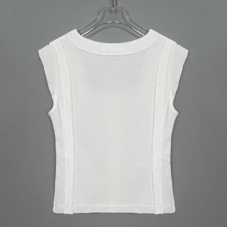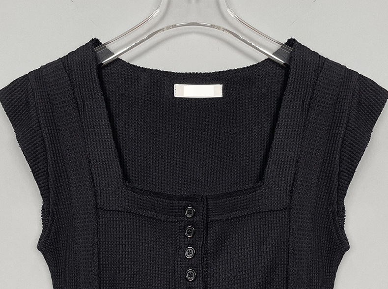 不修邊方領彈性背心(黑/白)