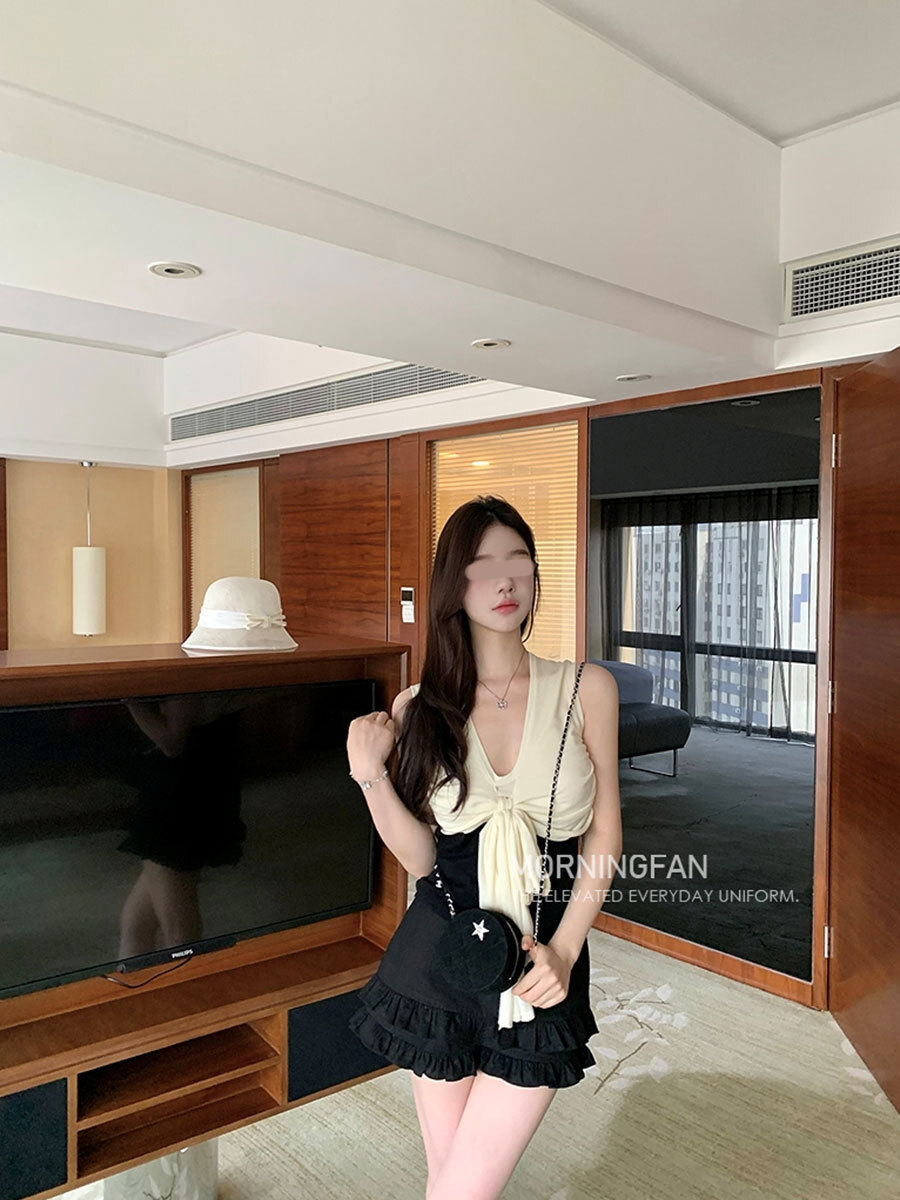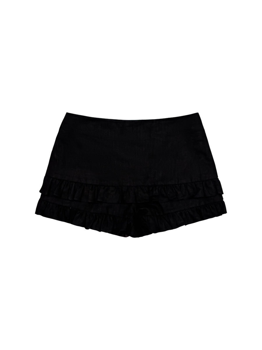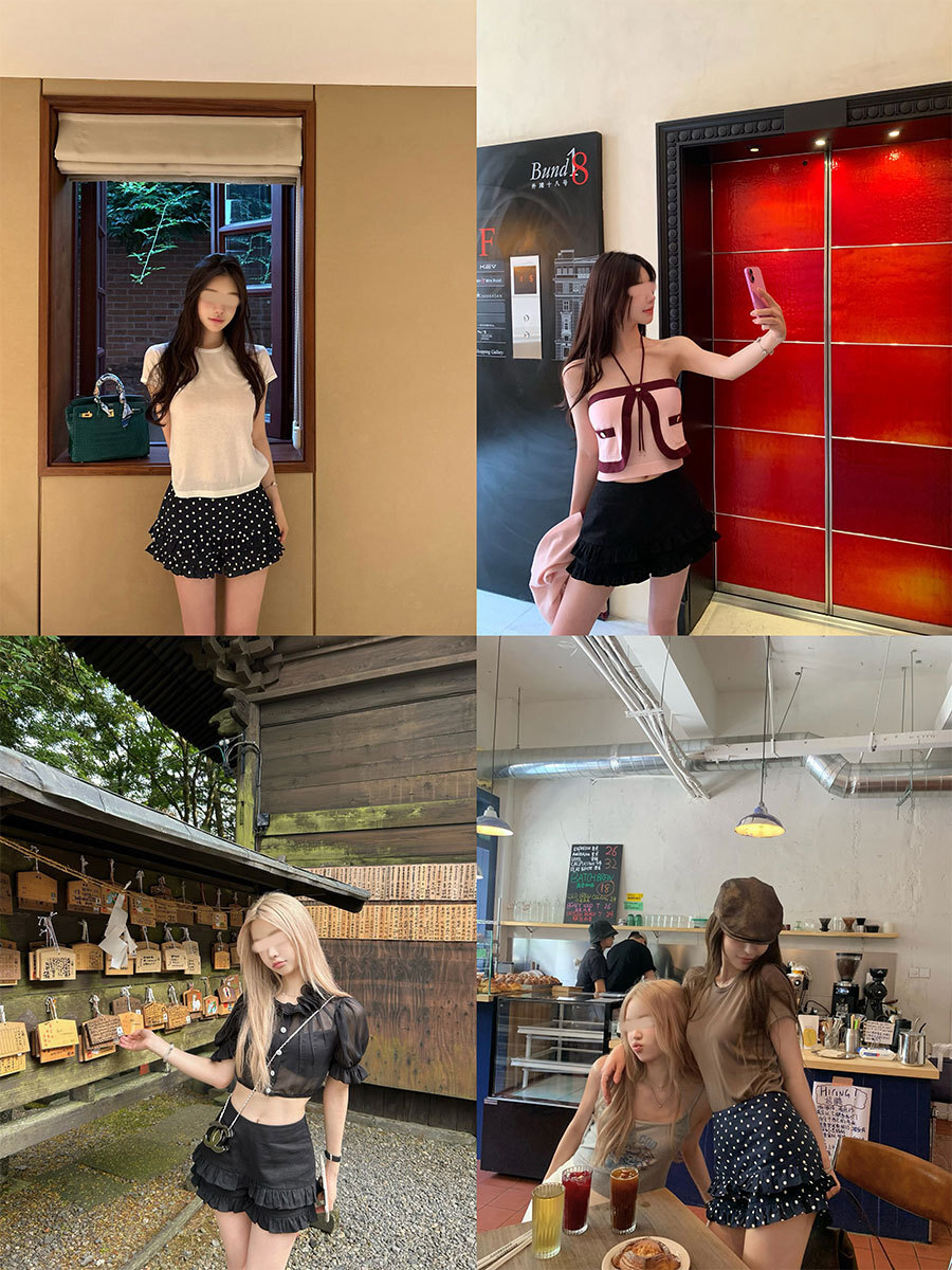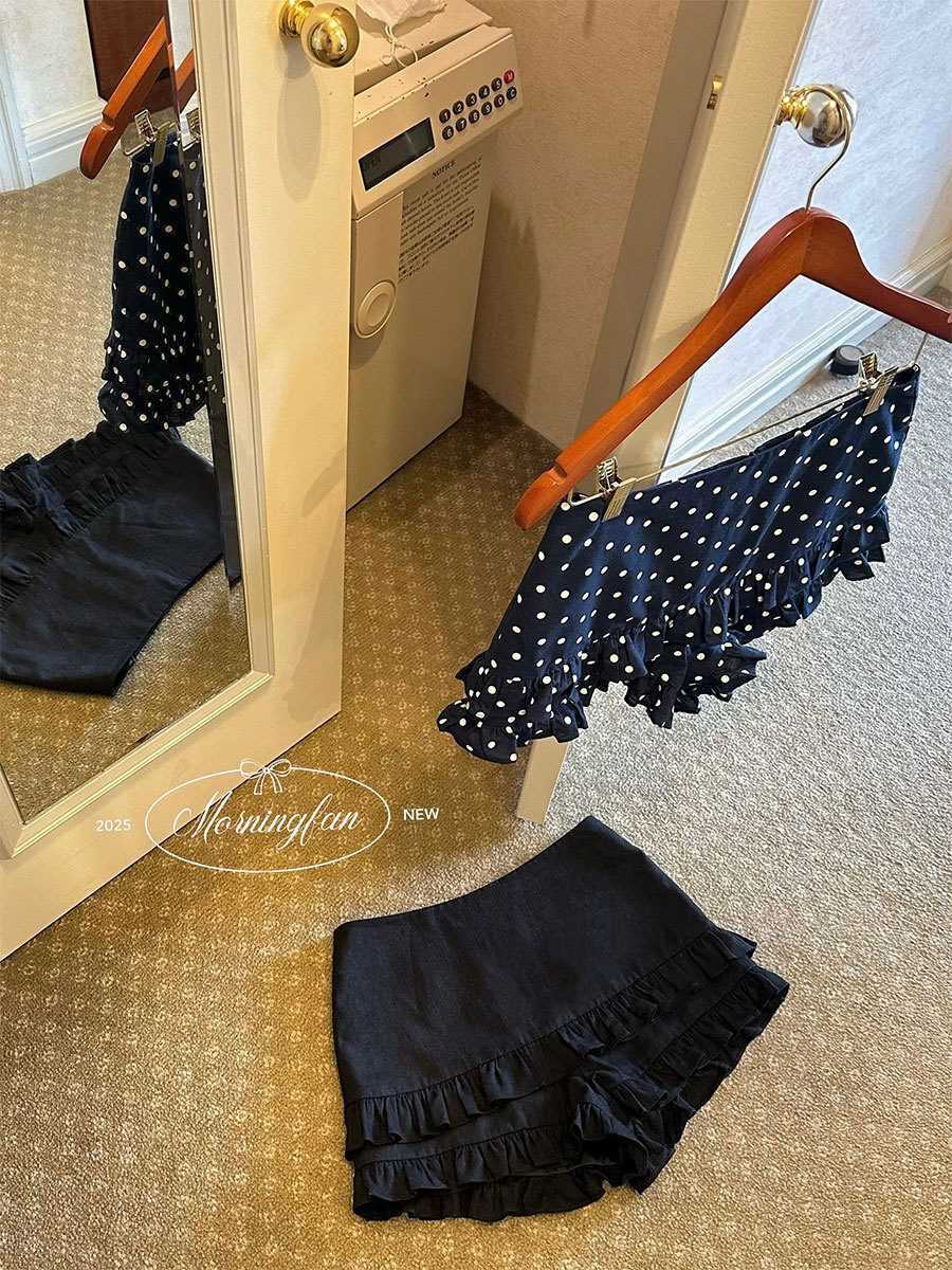 夏日小甜心 木耳邊高腰短褲(黑/波點)