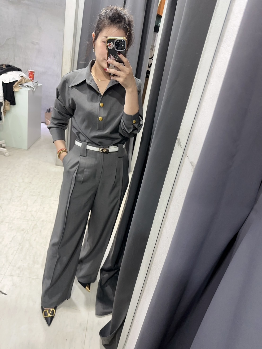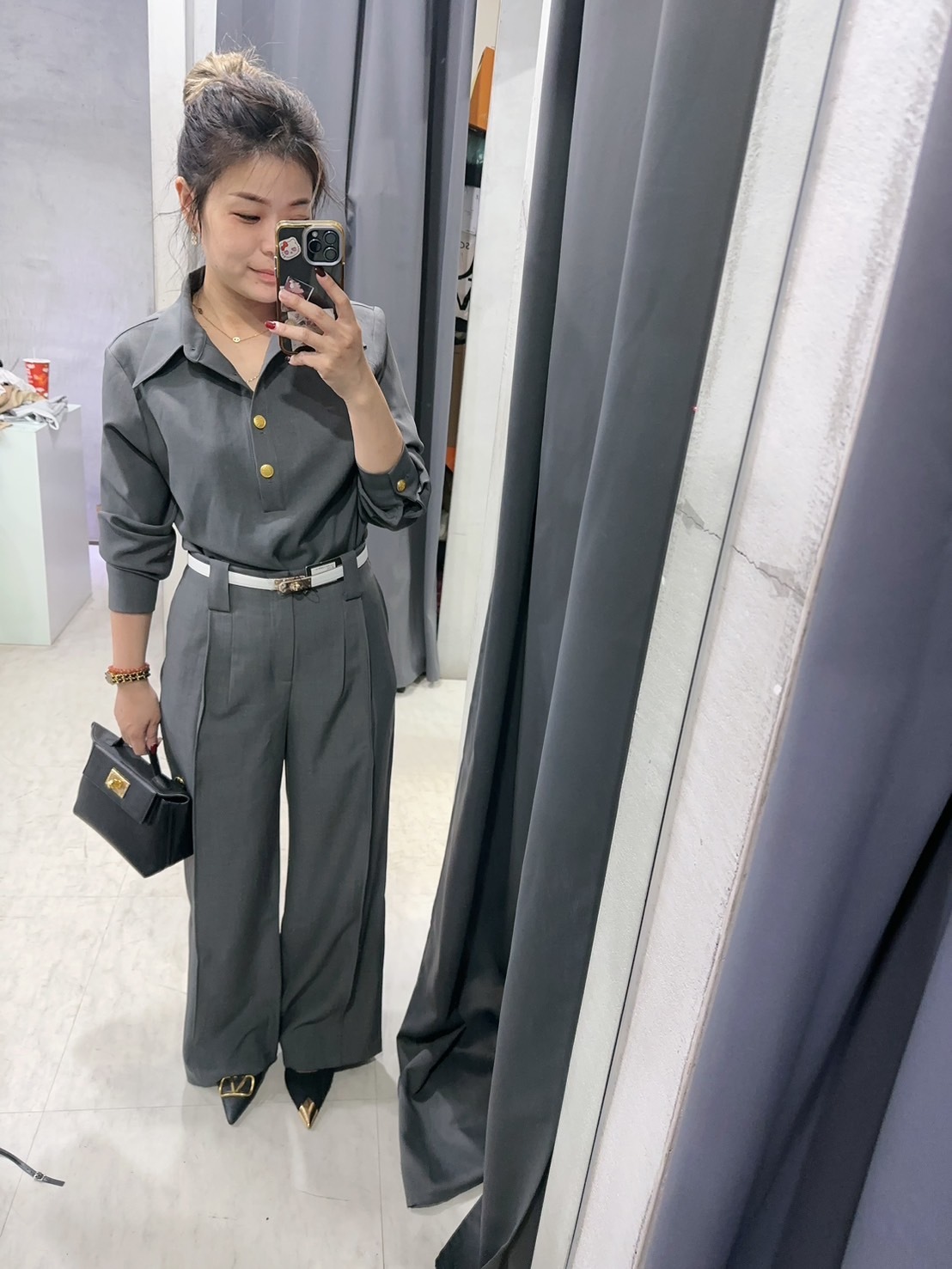 高腰版型修飾身形,打造俐落俐落的造型。