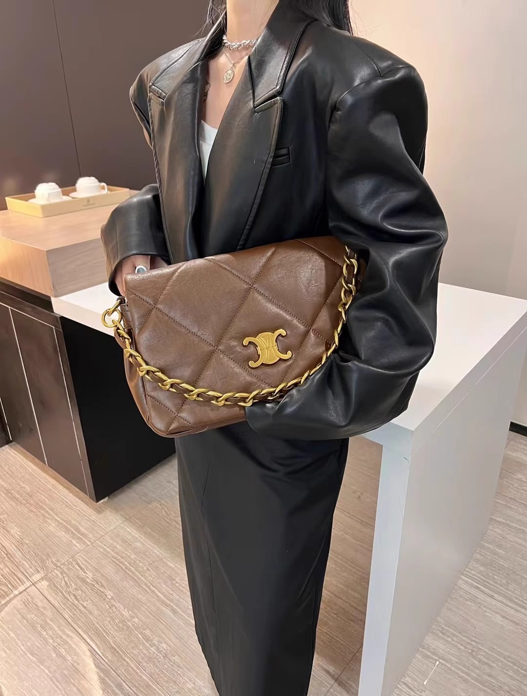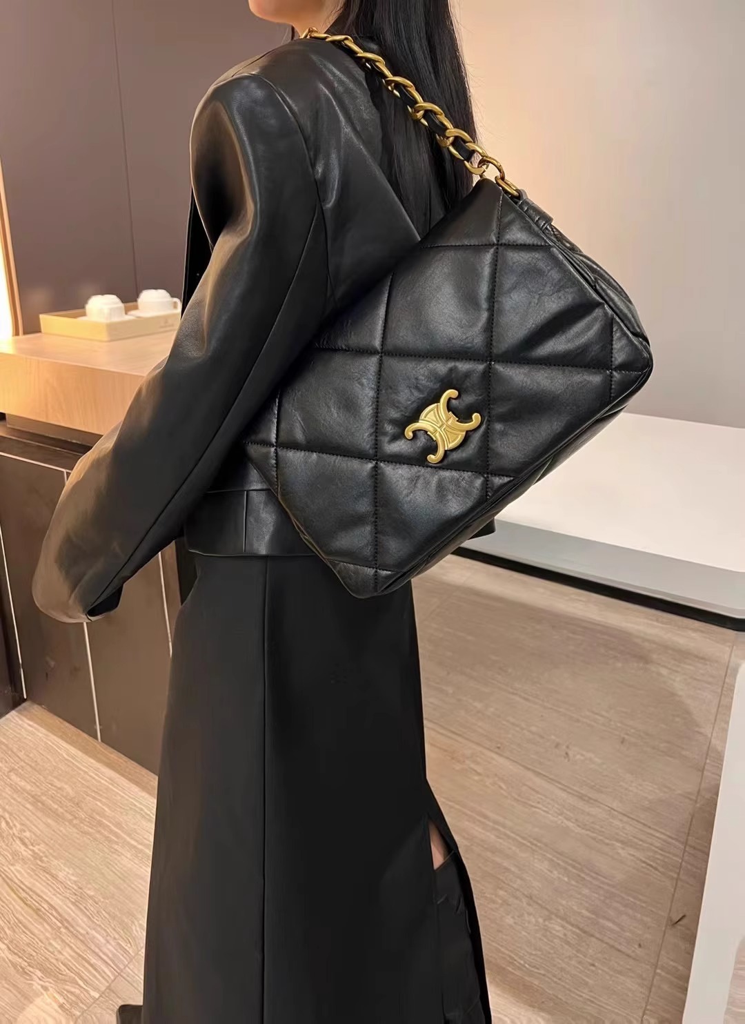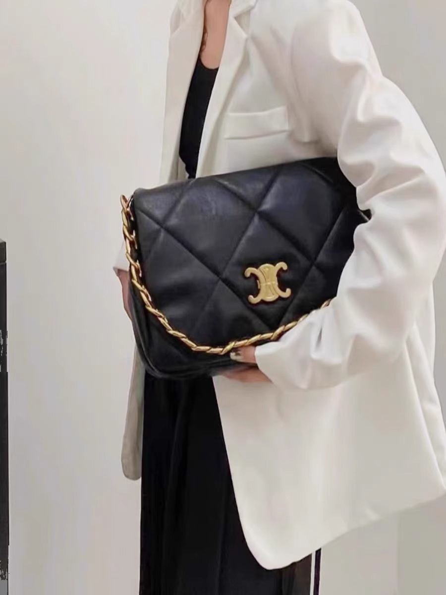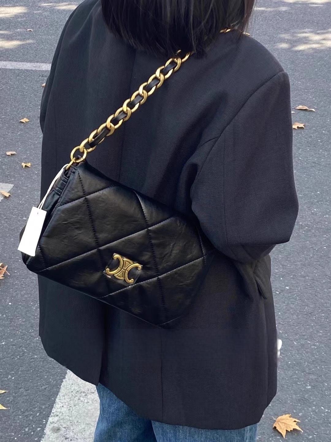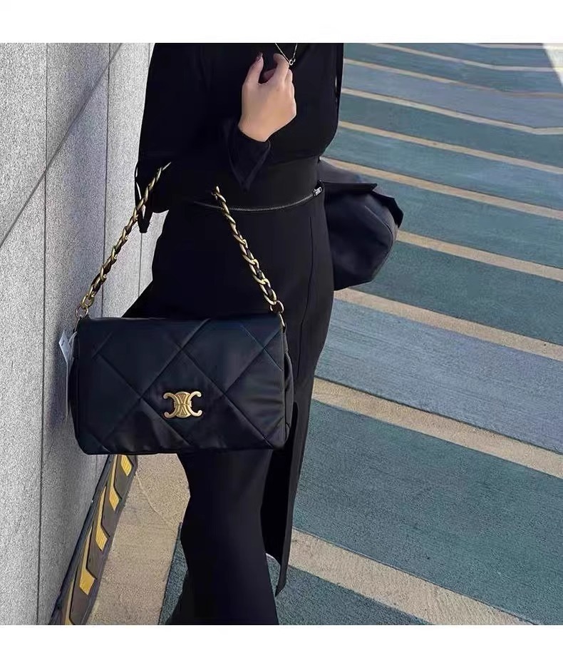 凱旋門 雙背帶羊皮方包(黑/白)