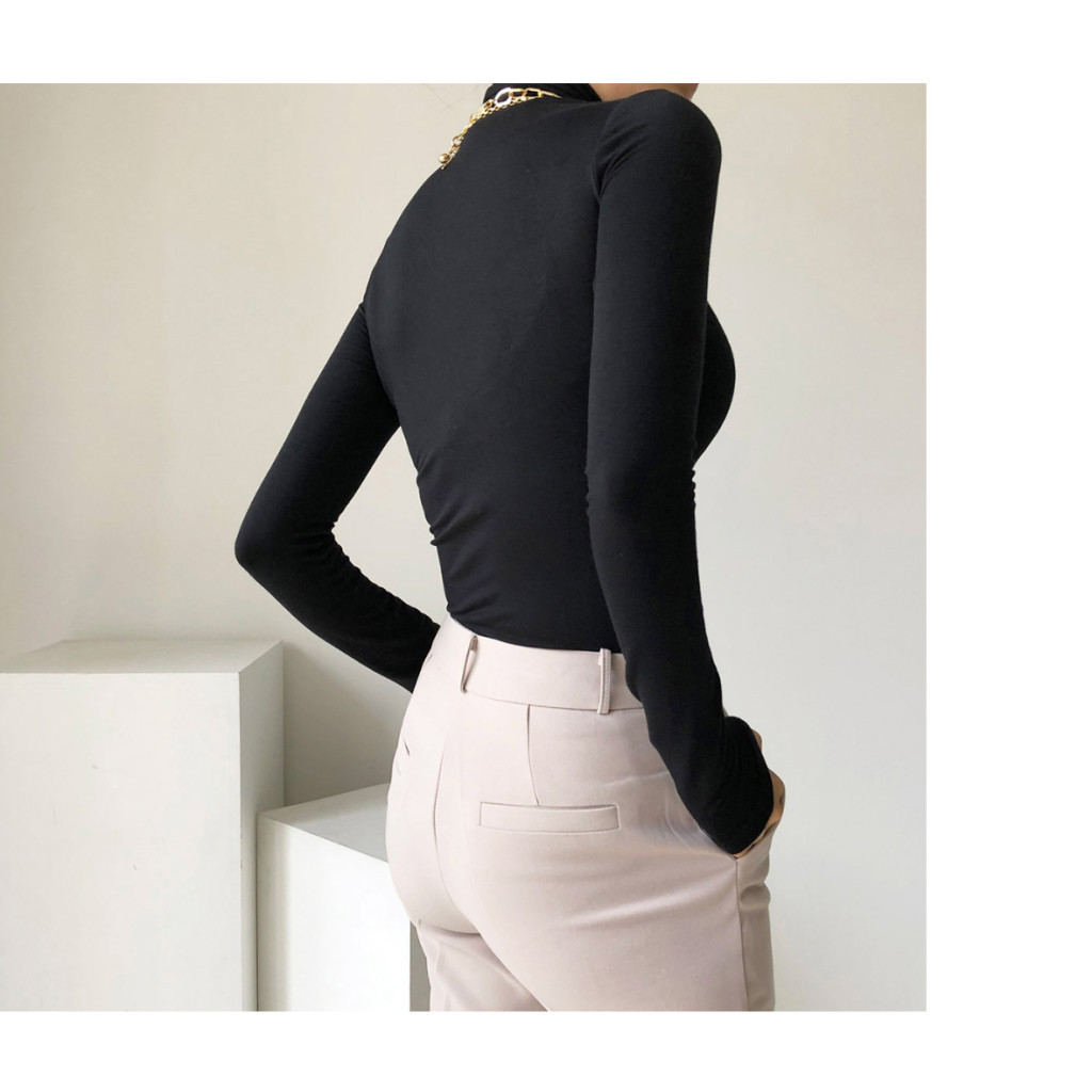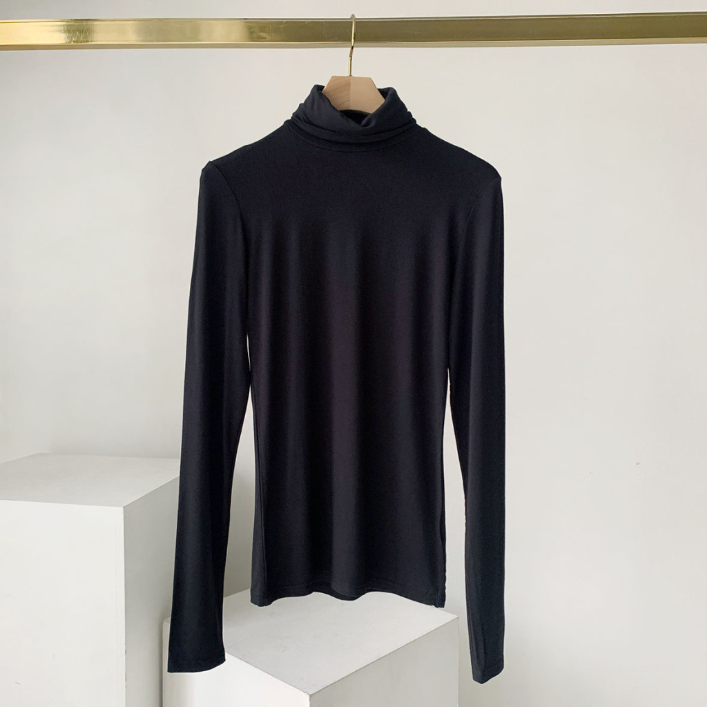 高領貼身棉質上衣 (黑/白/藍)