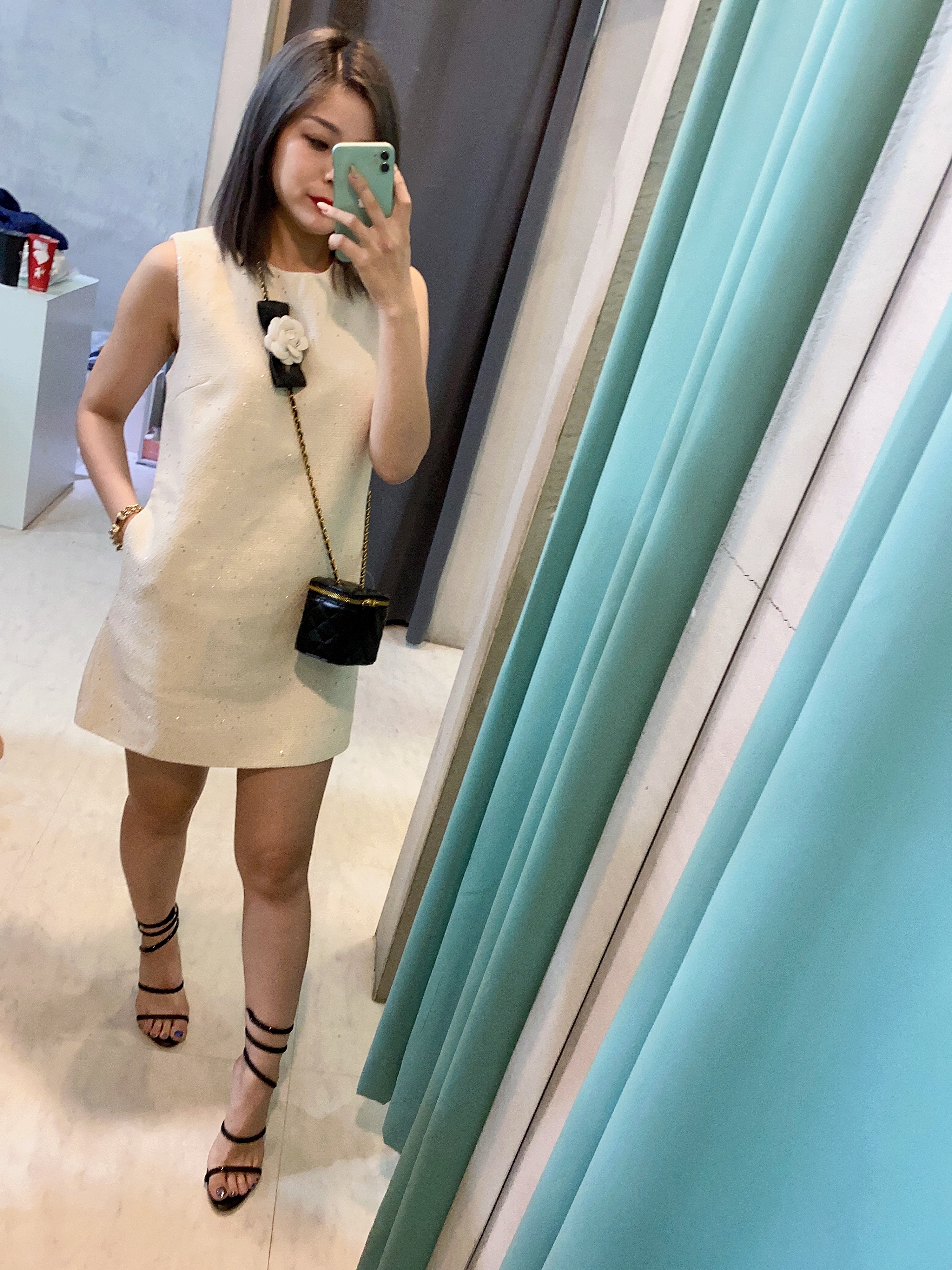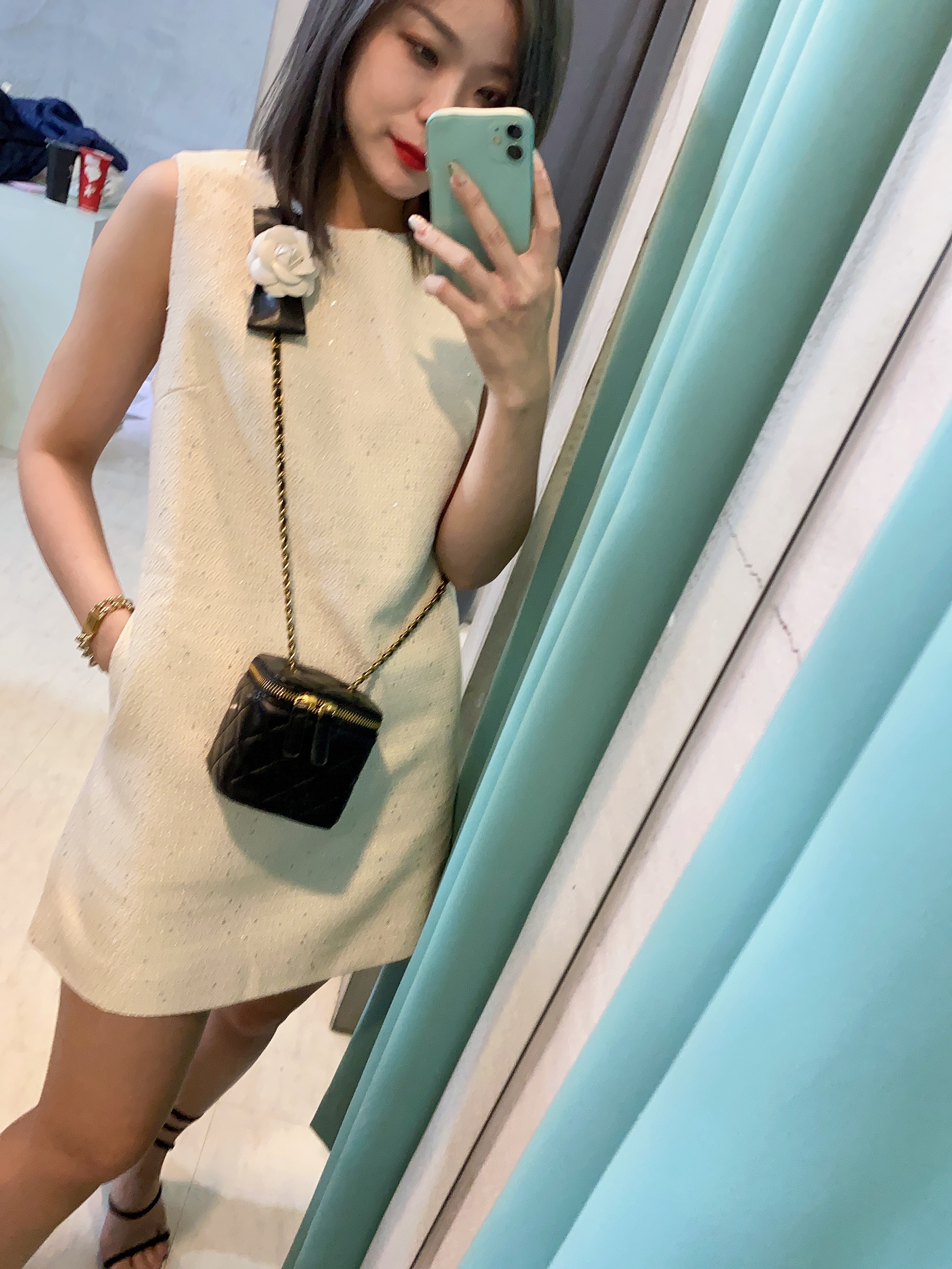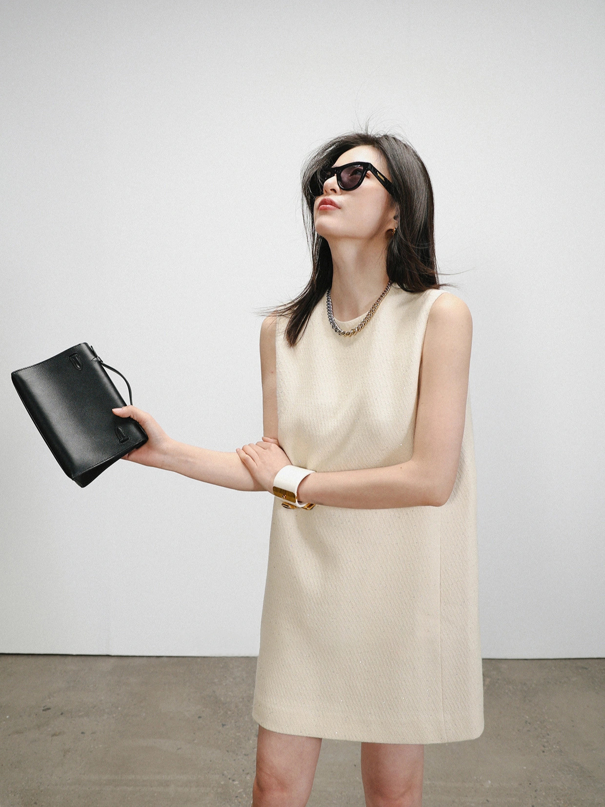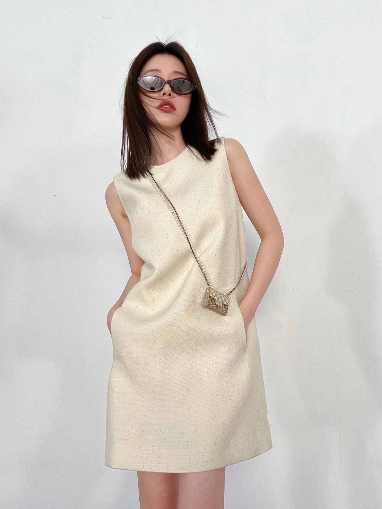 素雅的米白色調搭配點點亮片點綴,展現時尚優雅的氣質。
