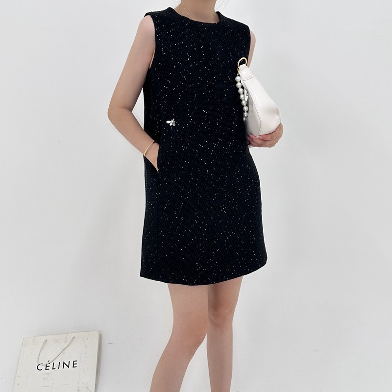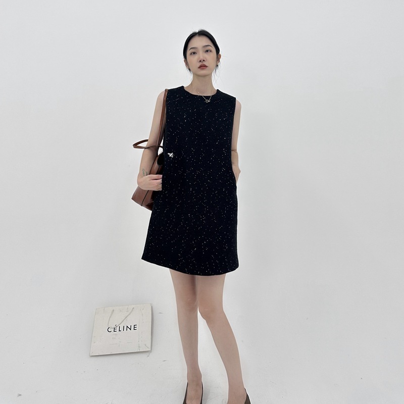 高級簡約毛尼無袖洋裝