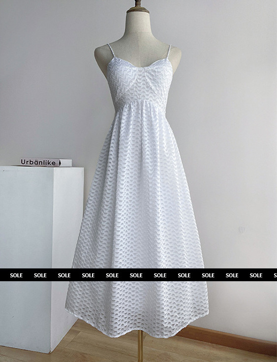 獨特的波紋質地賦予這件洋裝細緻優雅的質感。V領設計展現女性優雅的鎖骨線條。搭配短版外搭,營造魅力十足的穿搭效果,適合在各種場合穿著。