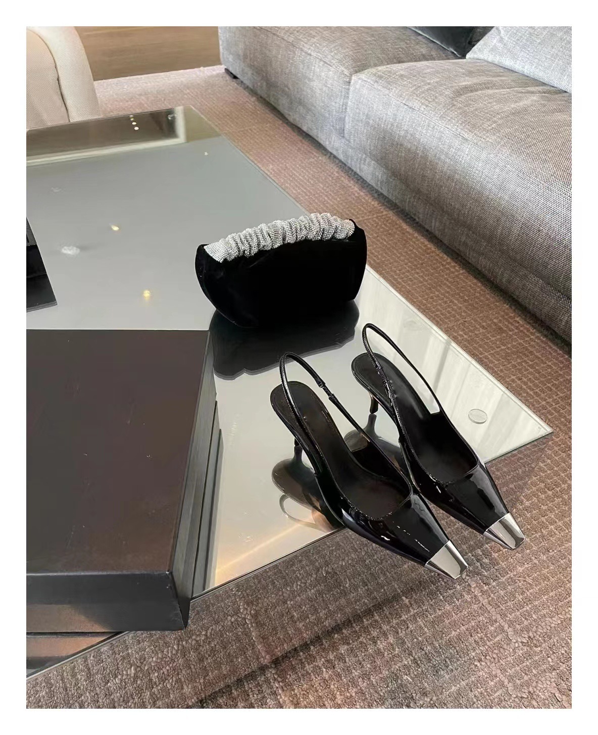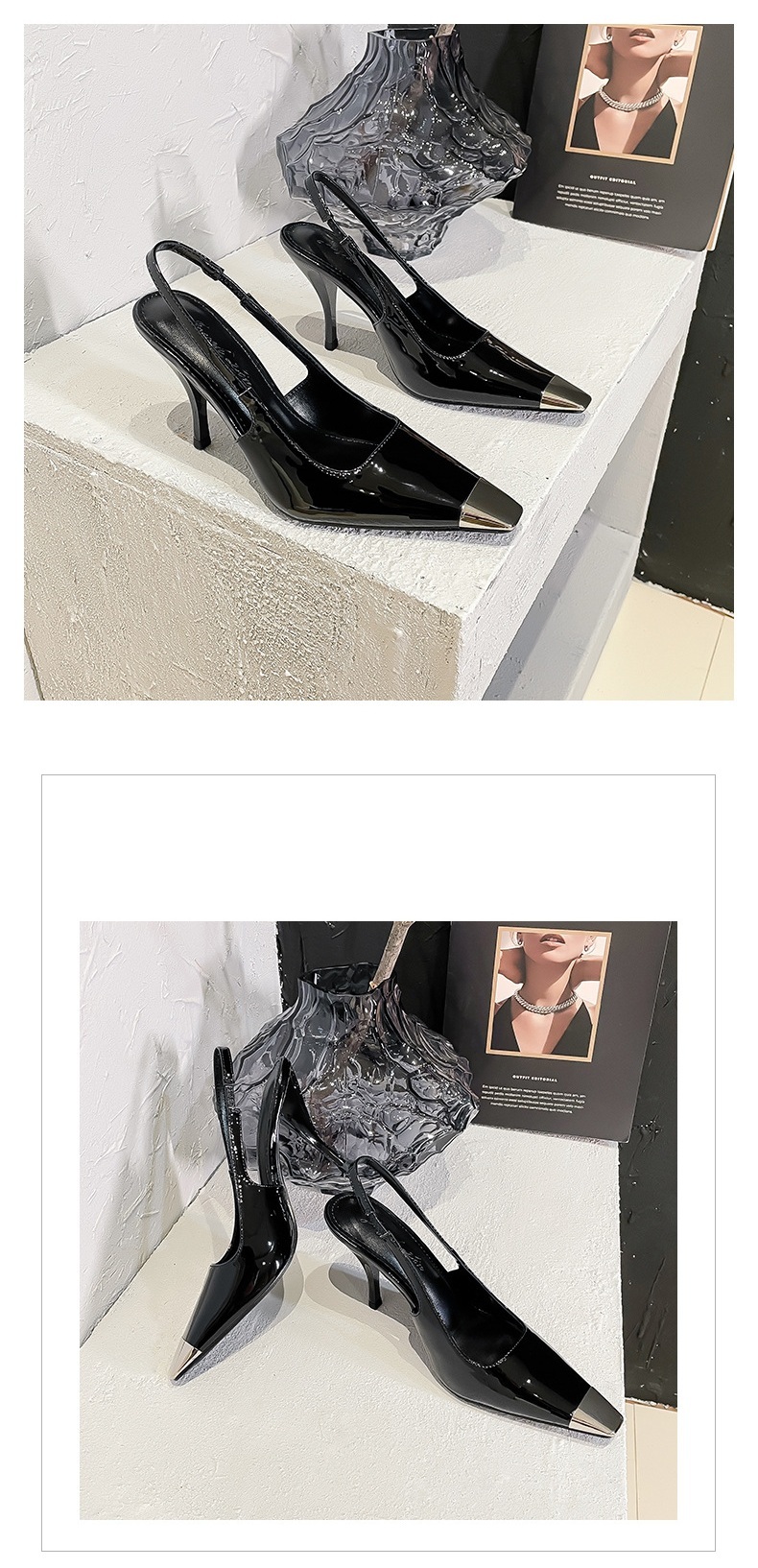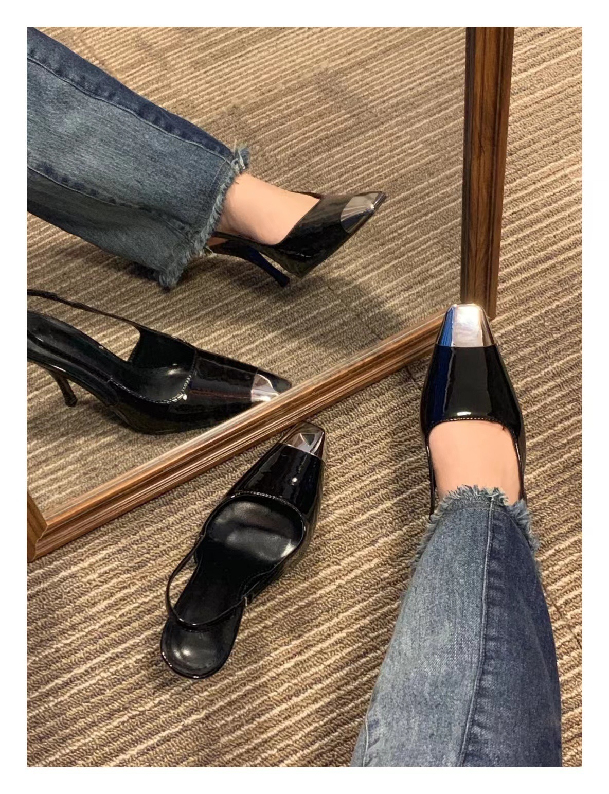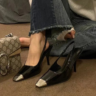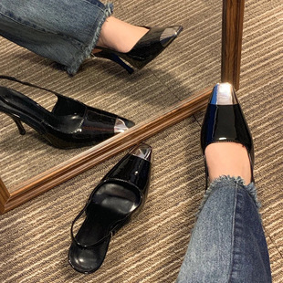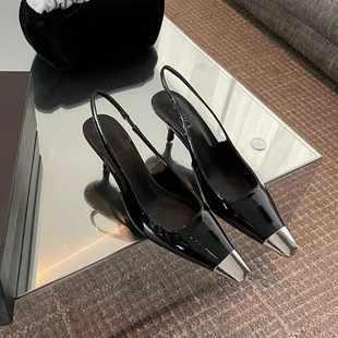 朴彩英同款 金屬方頭漆皮跟鞋(34-40)