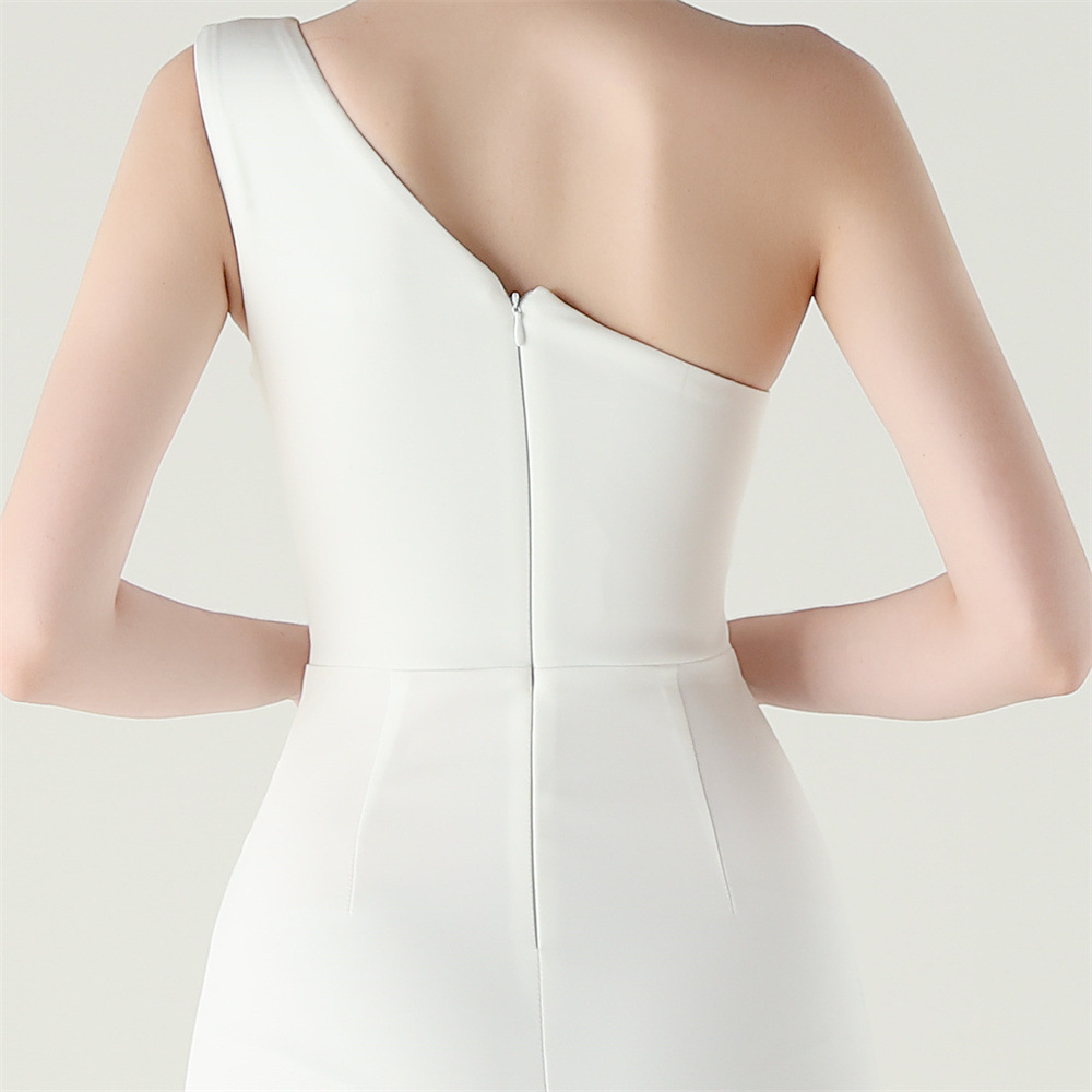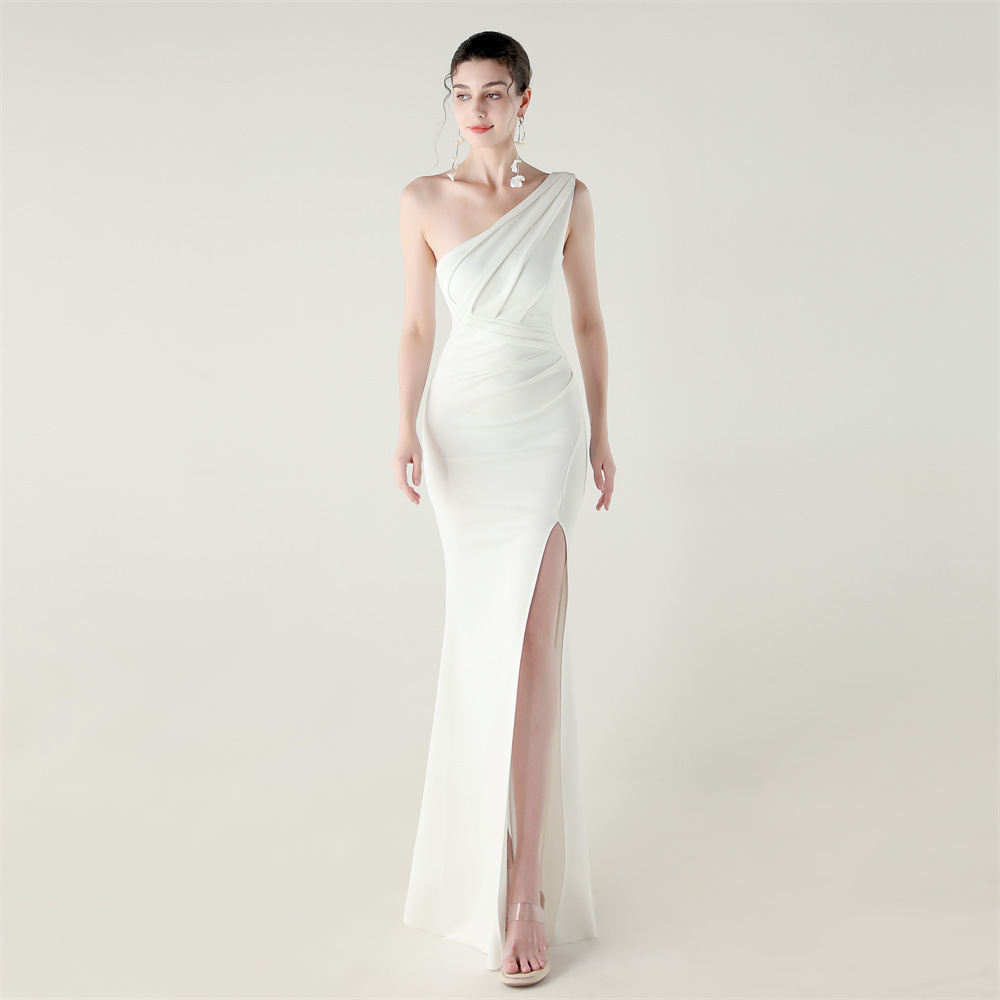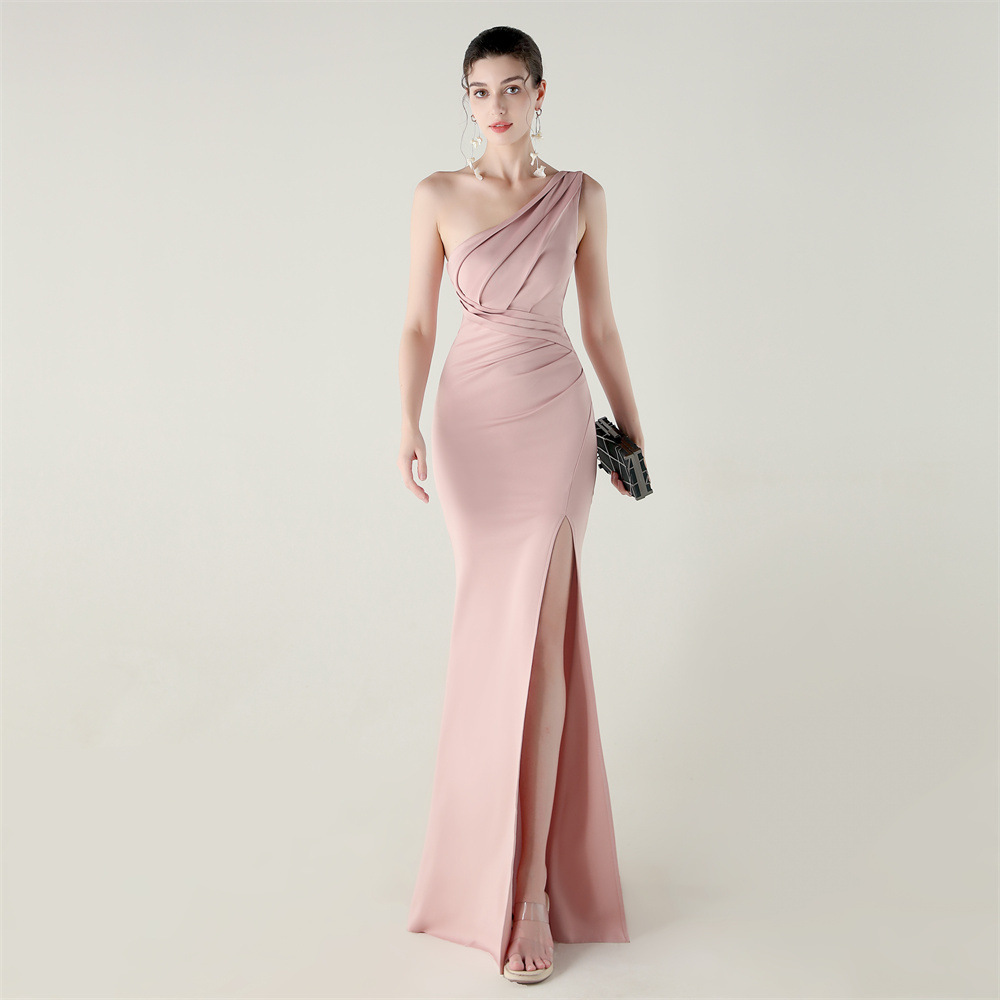 單肩壓褶 開衩魚尾小禮服(多色)