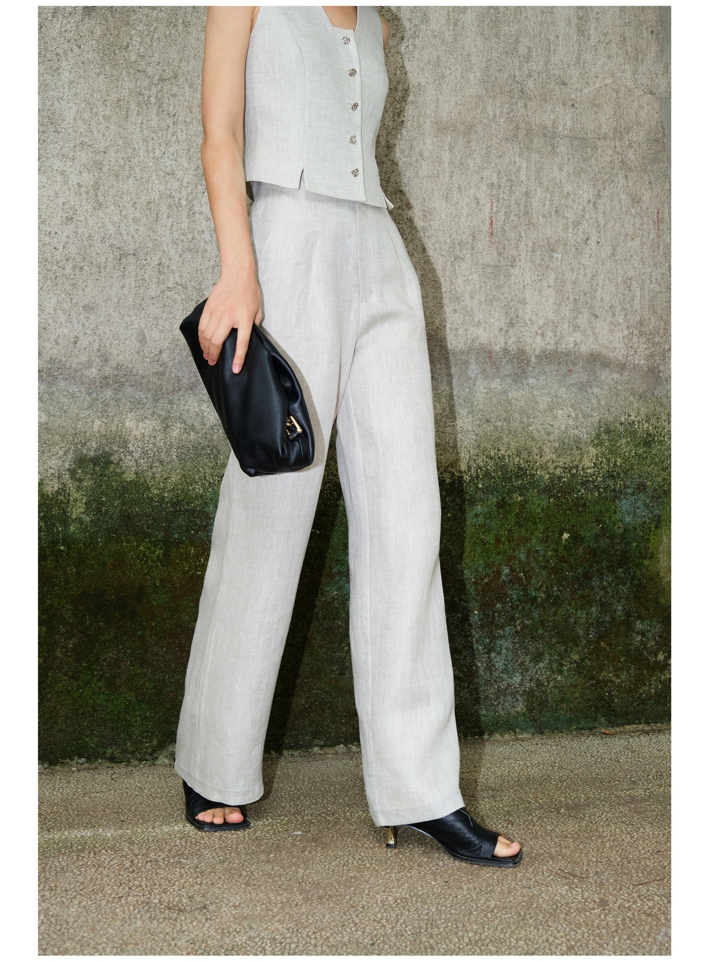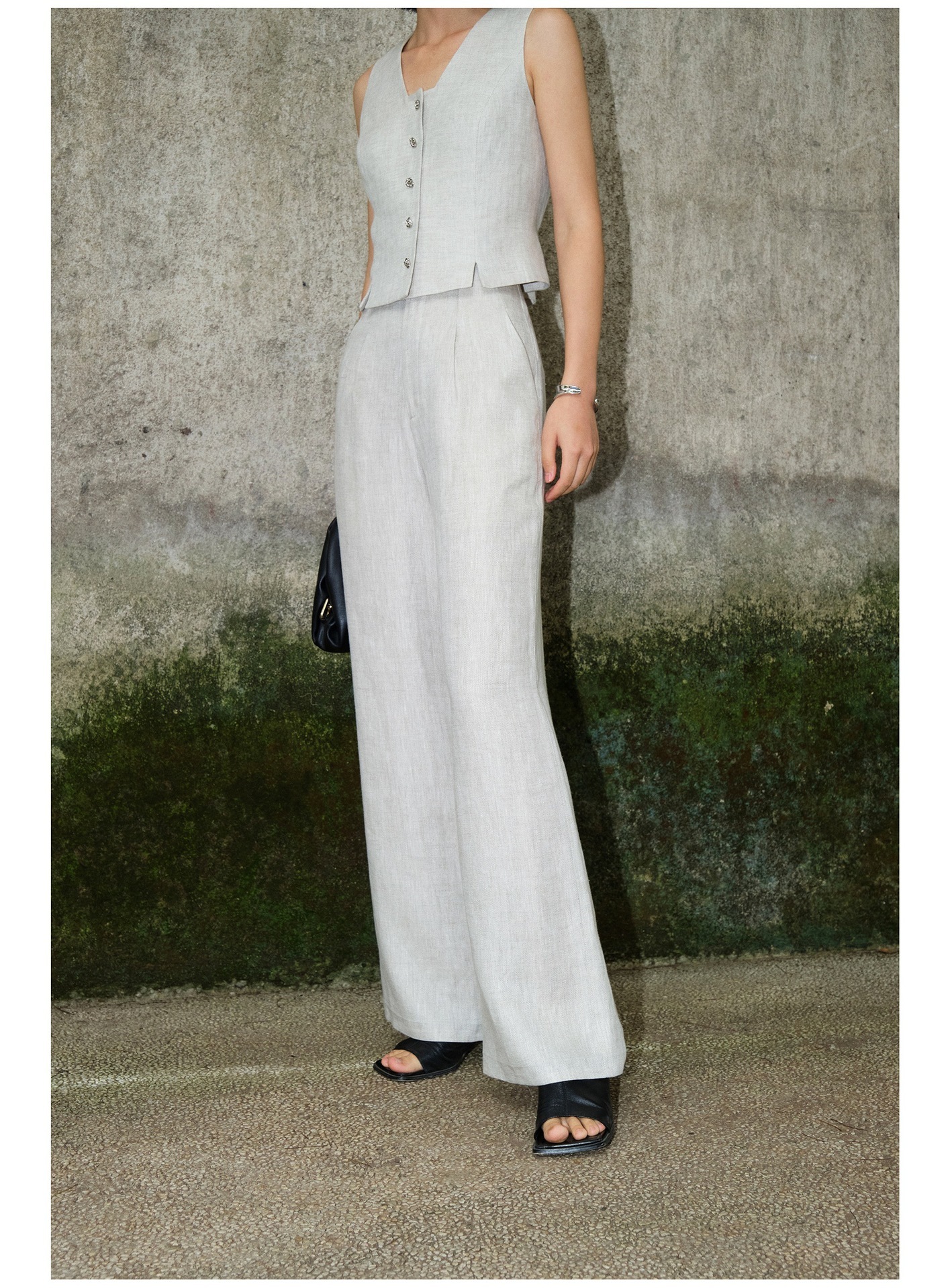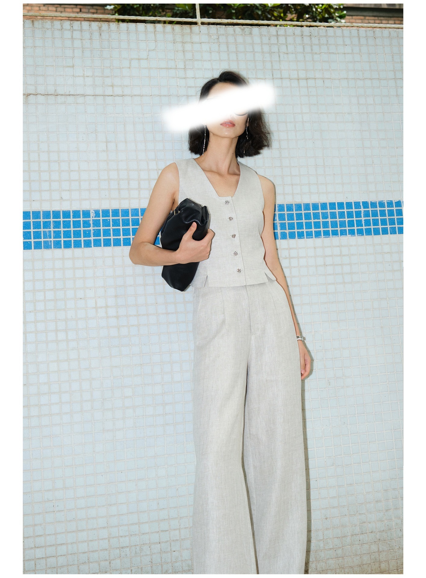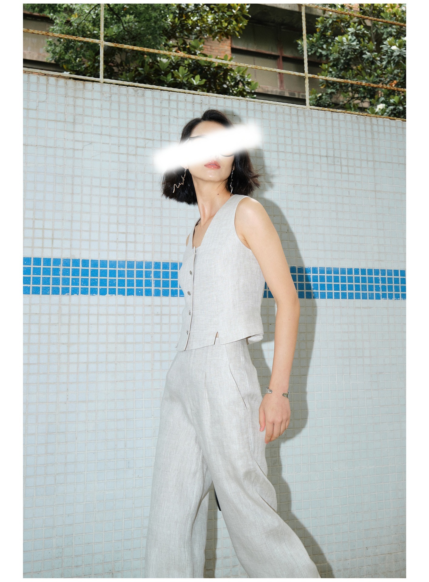夏天的時髦 亞麻背心+高腰褲(2件組)