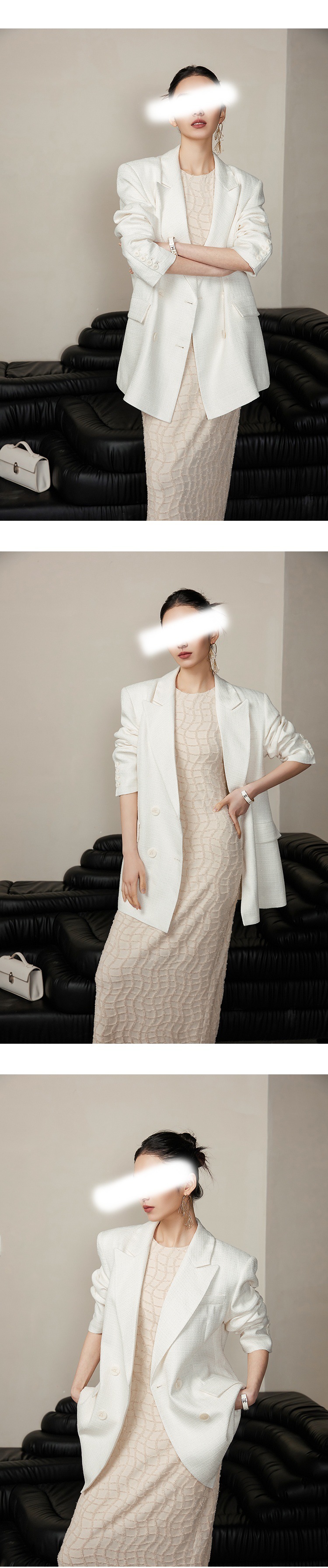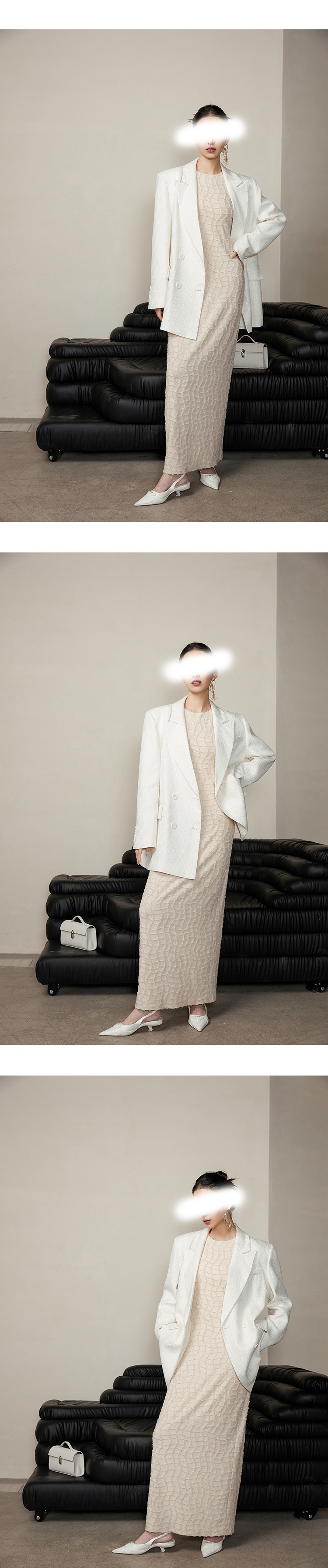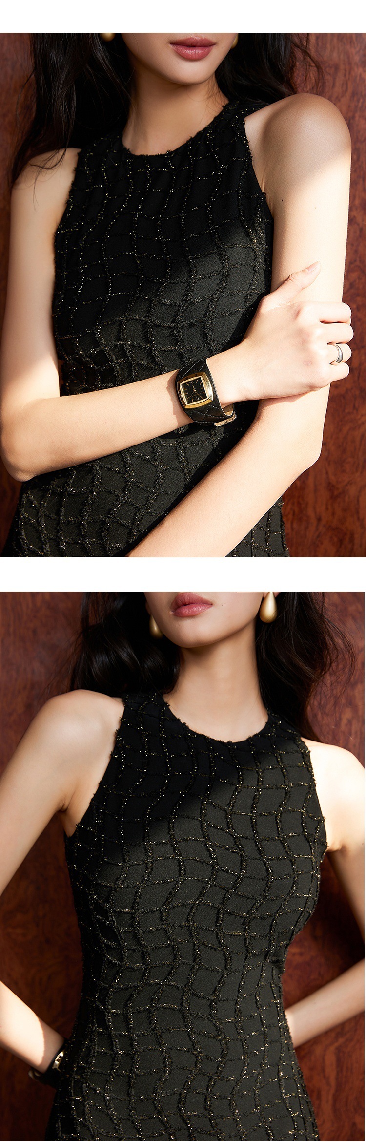 亮絲流蘇 彈性貼身長洋裝(黑/白)
