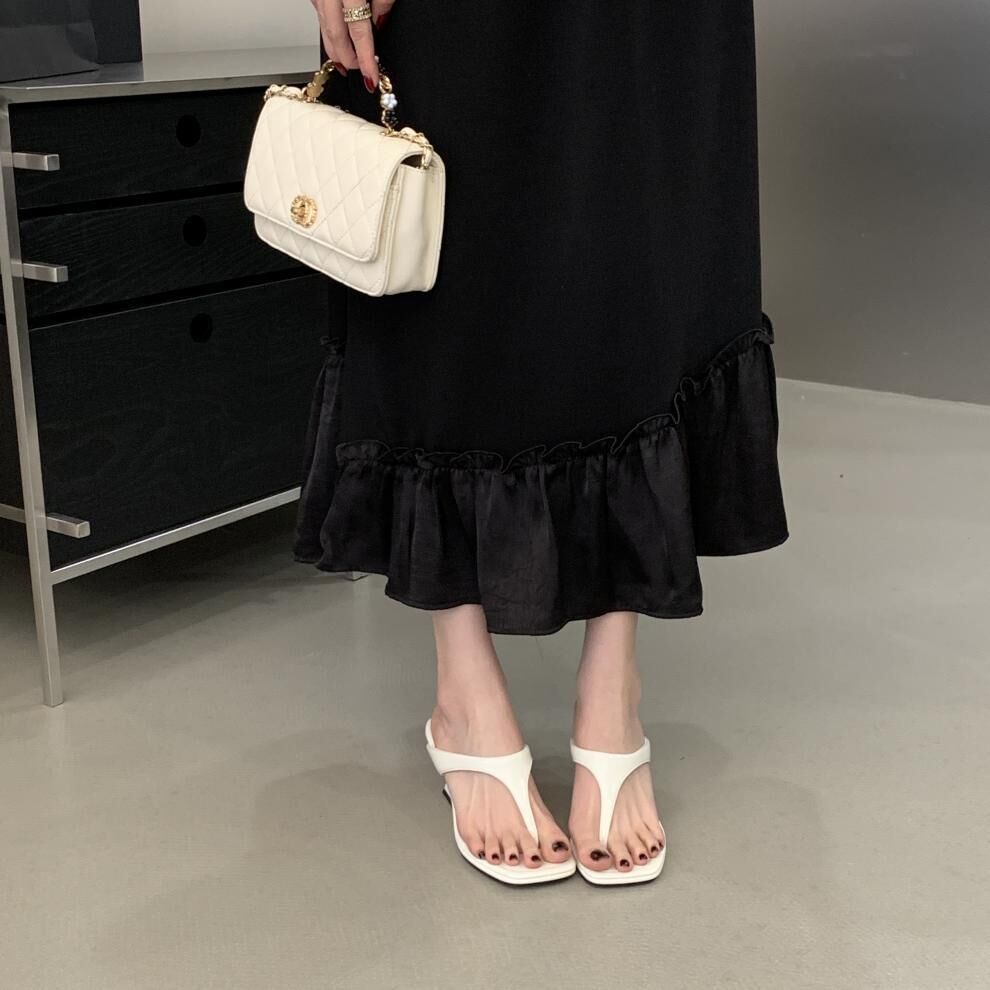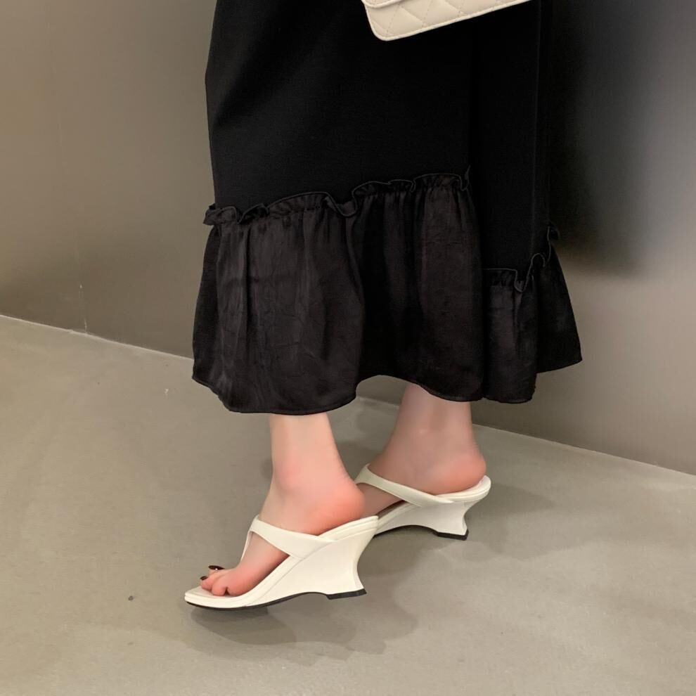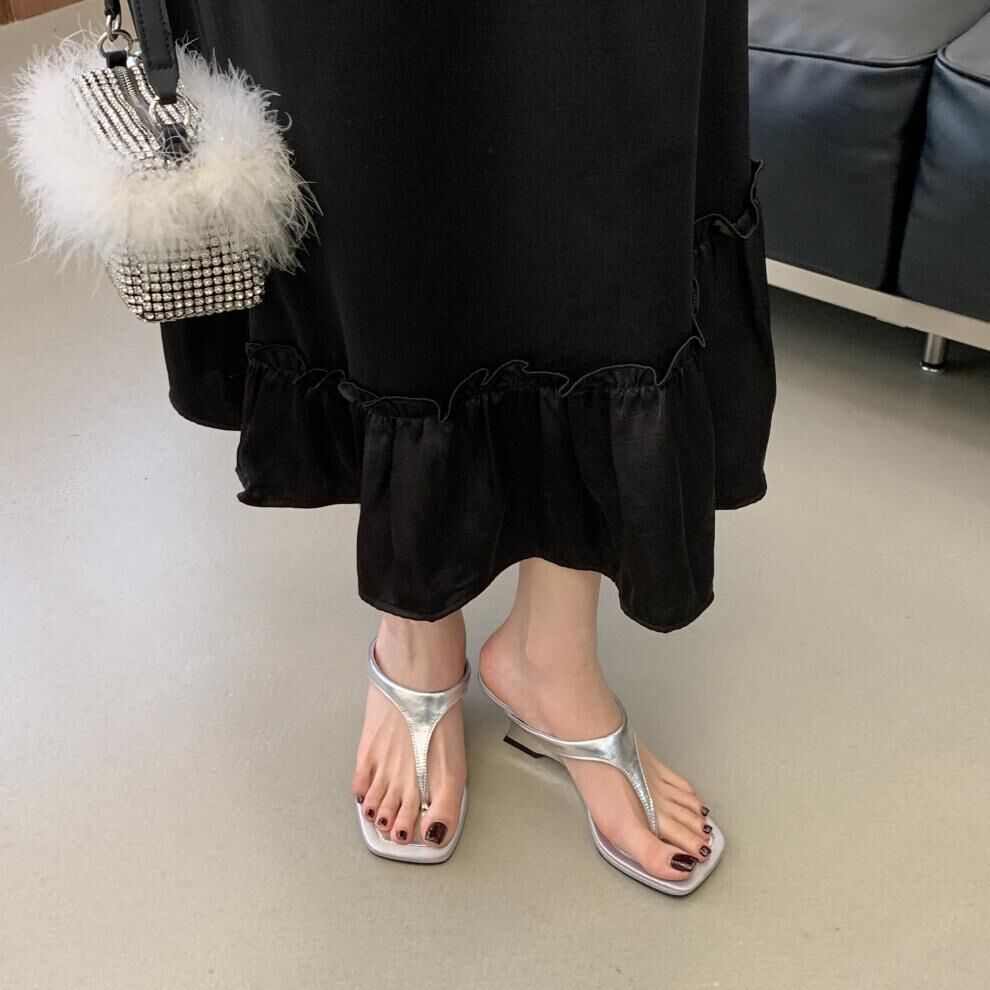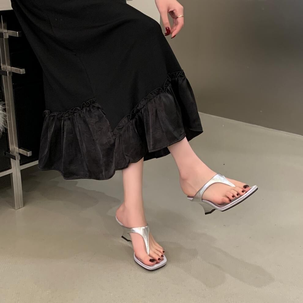夾腳方頭 坡跟拖鞋(35-39)(黑/銀/白)