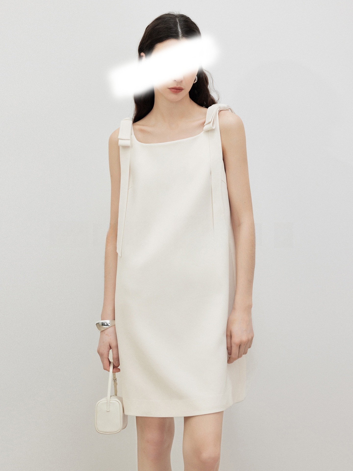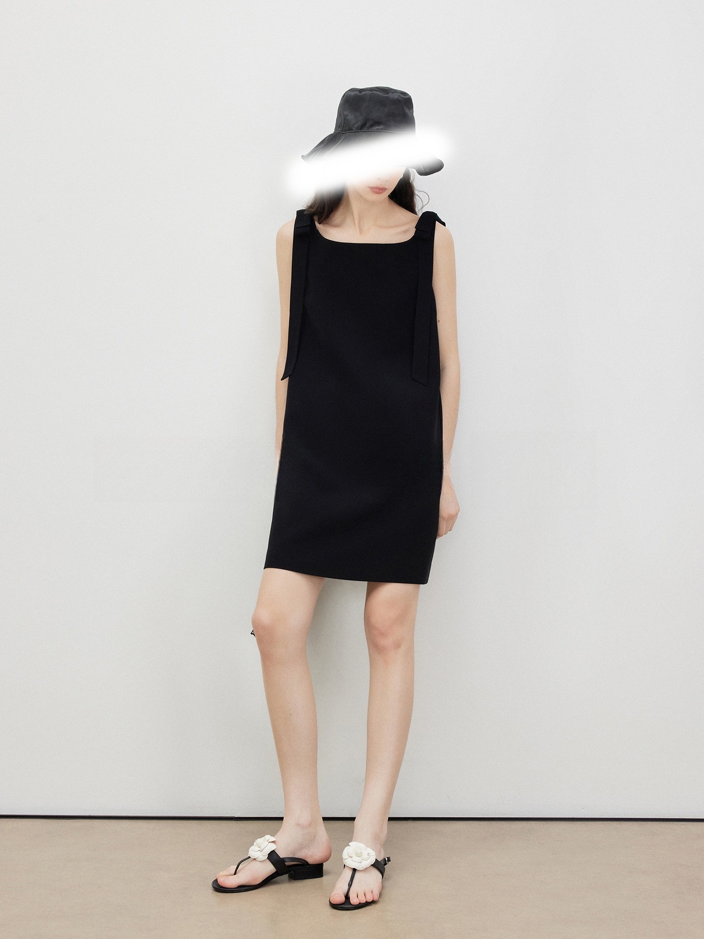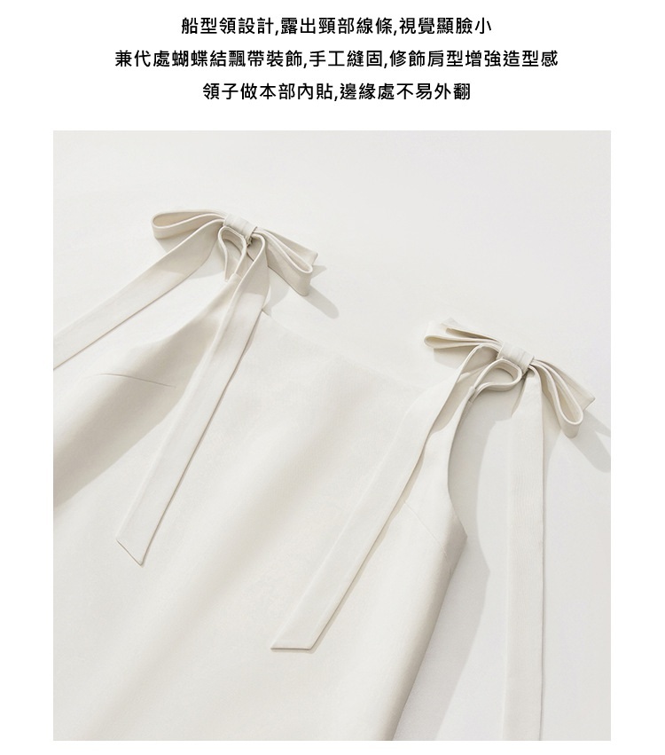 蝴蝶結偽肩帶 直筒小洋裝(黑/白)