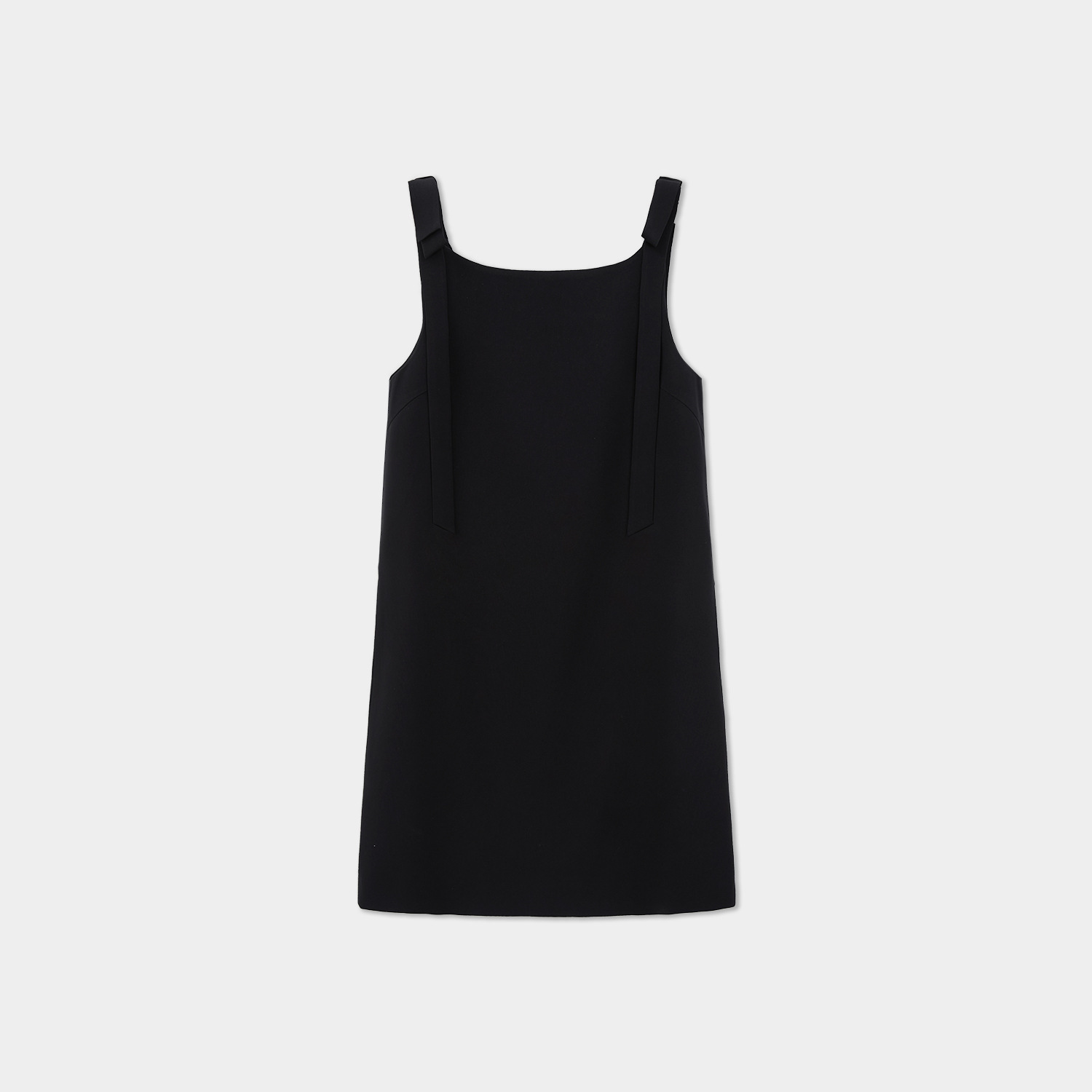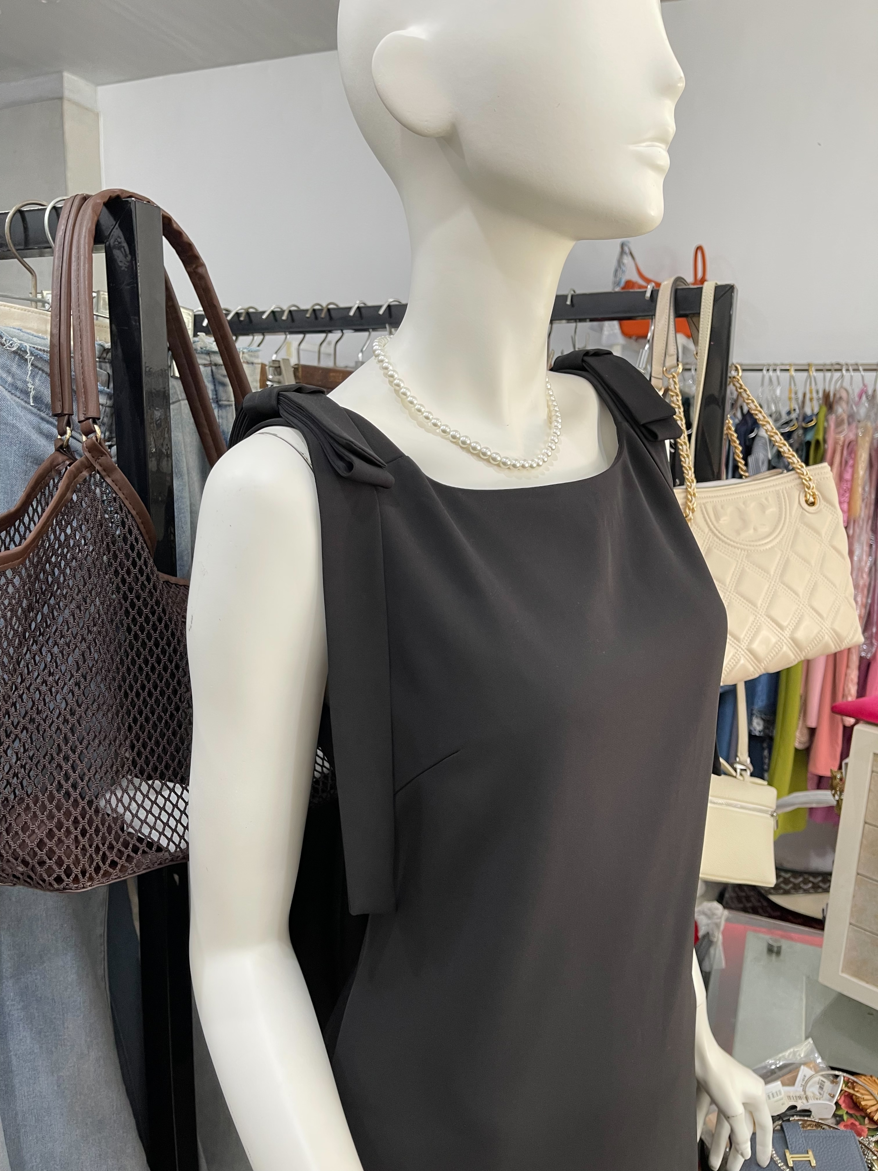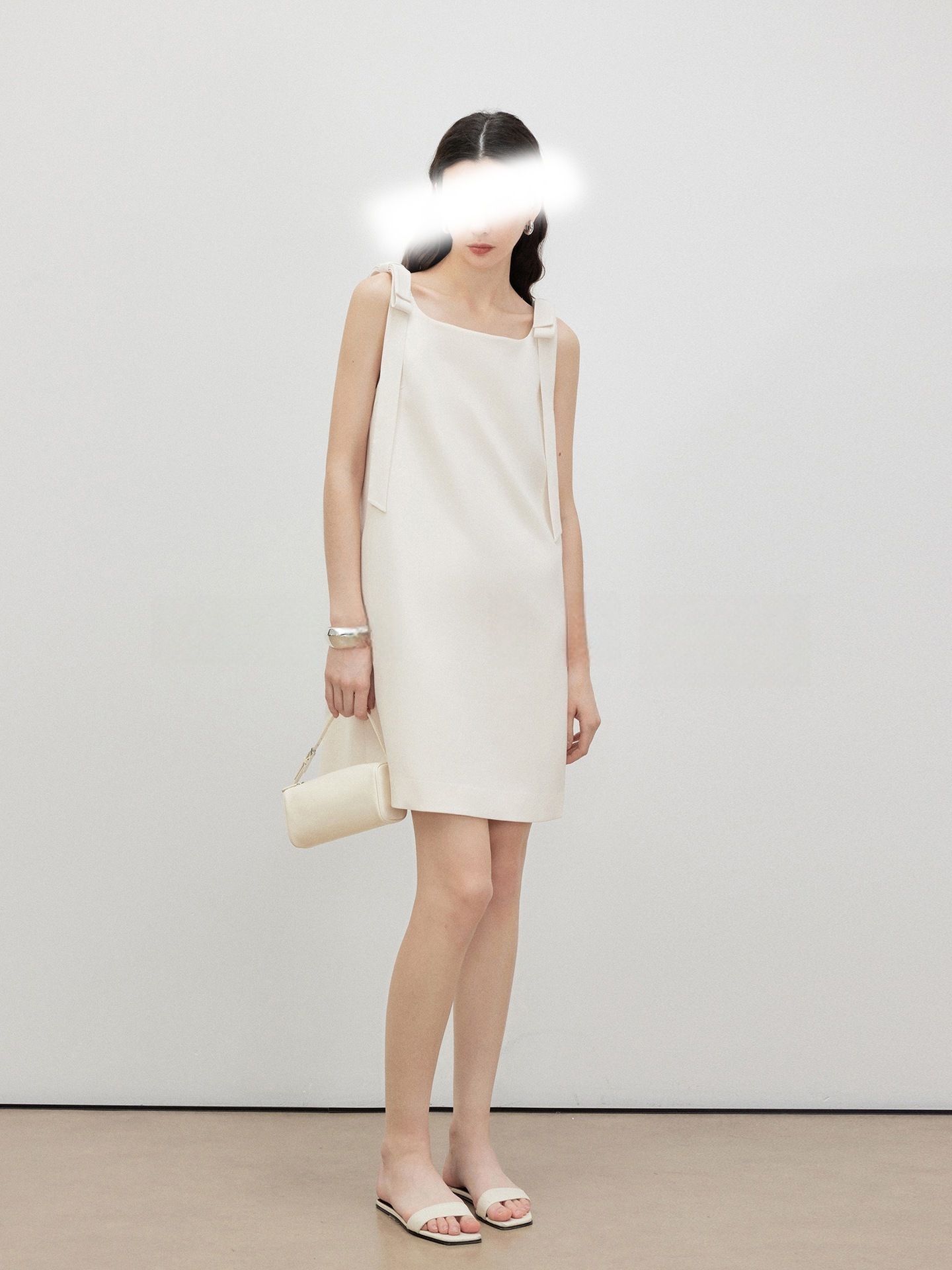 蝴蝶結偽肩帶 直筒小洋裝(黑/白)