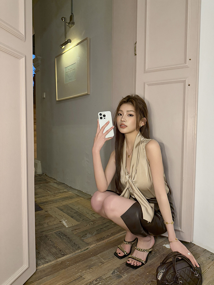 V領飄帶 綢緞上衣