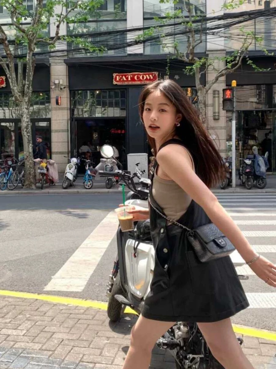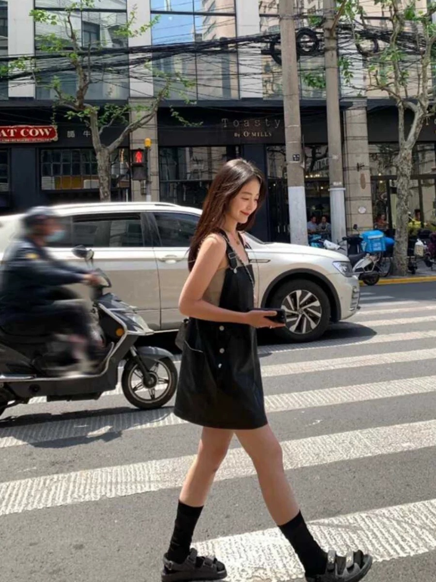 屬於獨特的妳 皮革吊帶裙