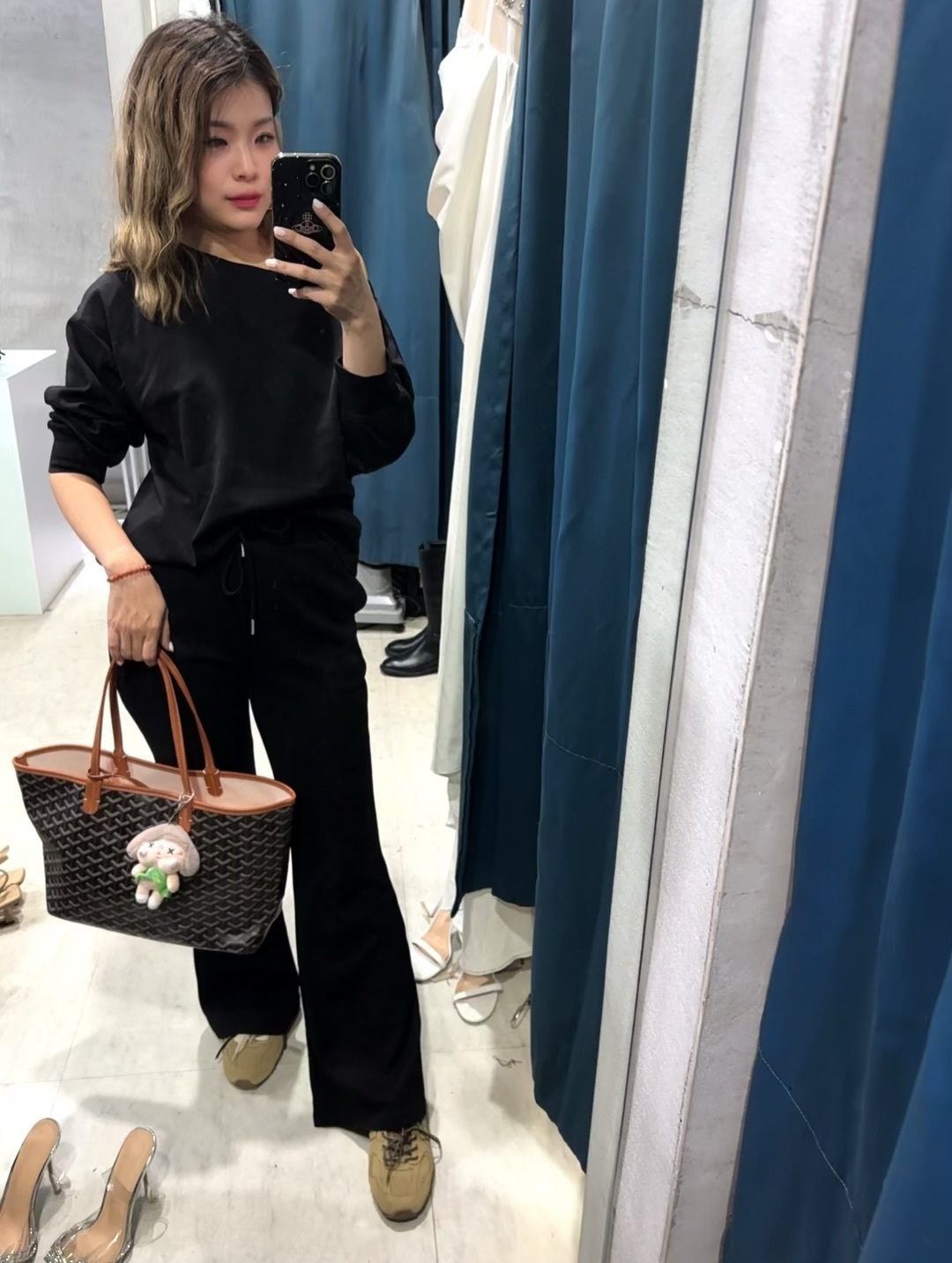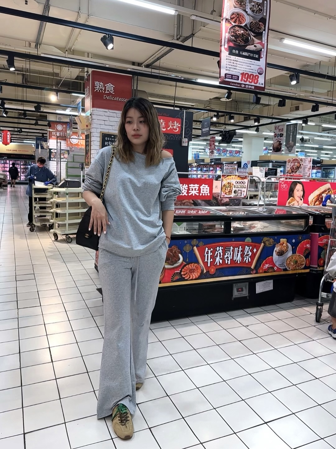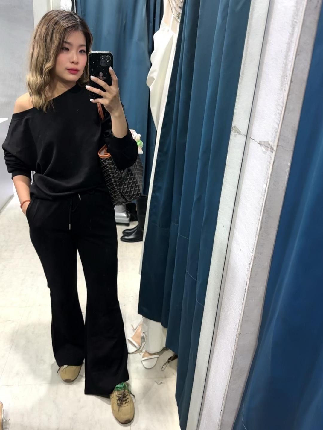 慵懶露肩 棉質休閒套裝(灰/黑)
