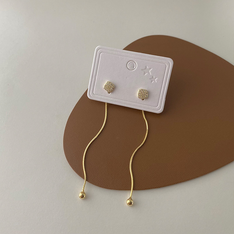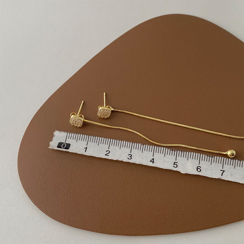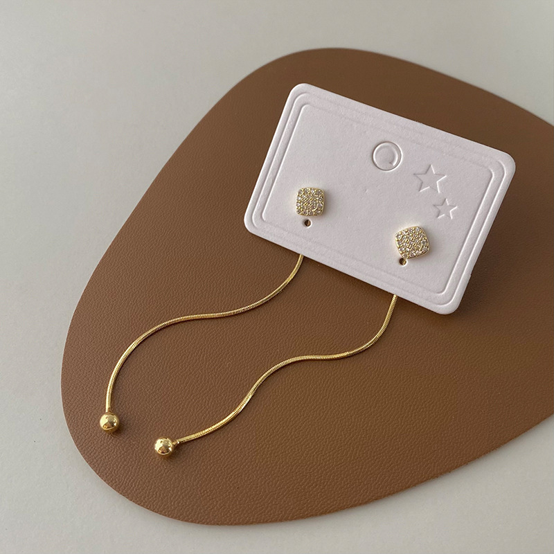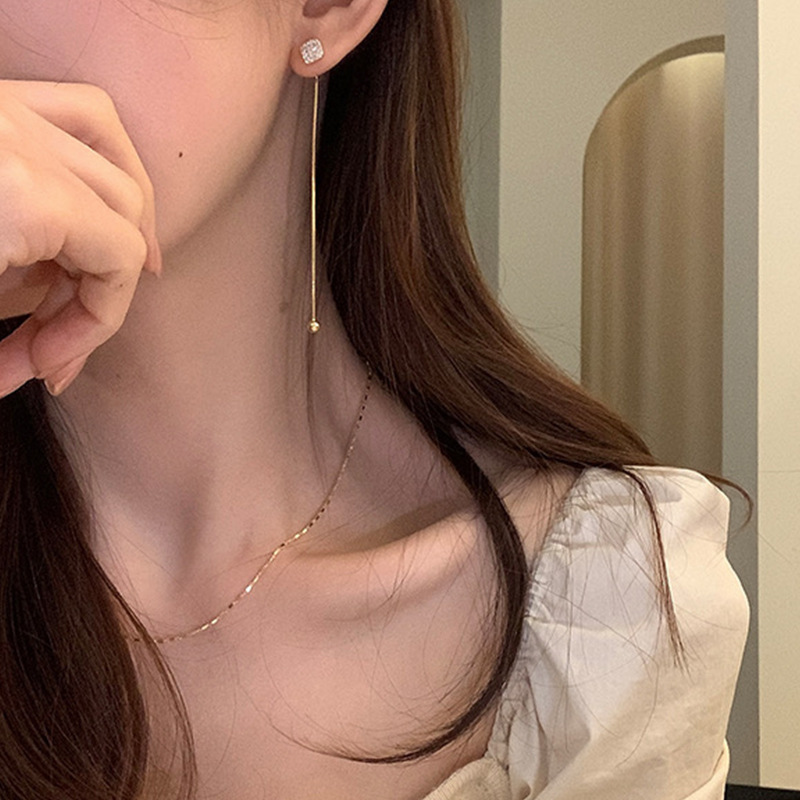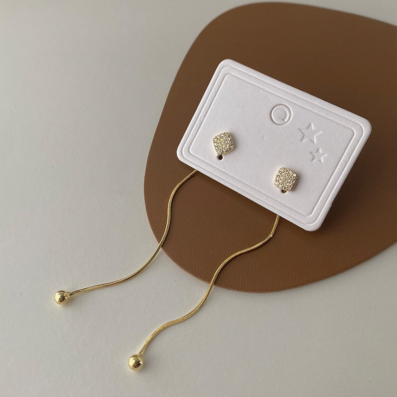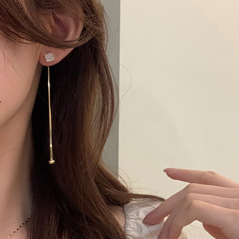 方形鑲鑽 流蘇耳飾 (925銀針)