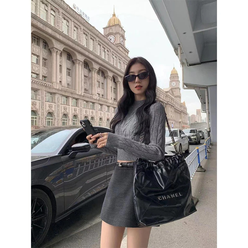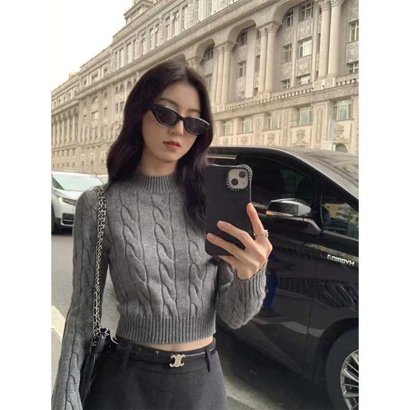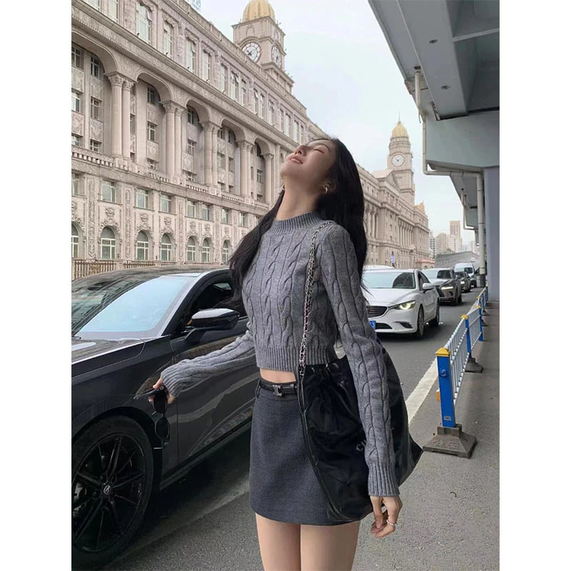 麻花編織毛衣+短窄裙(2件組)