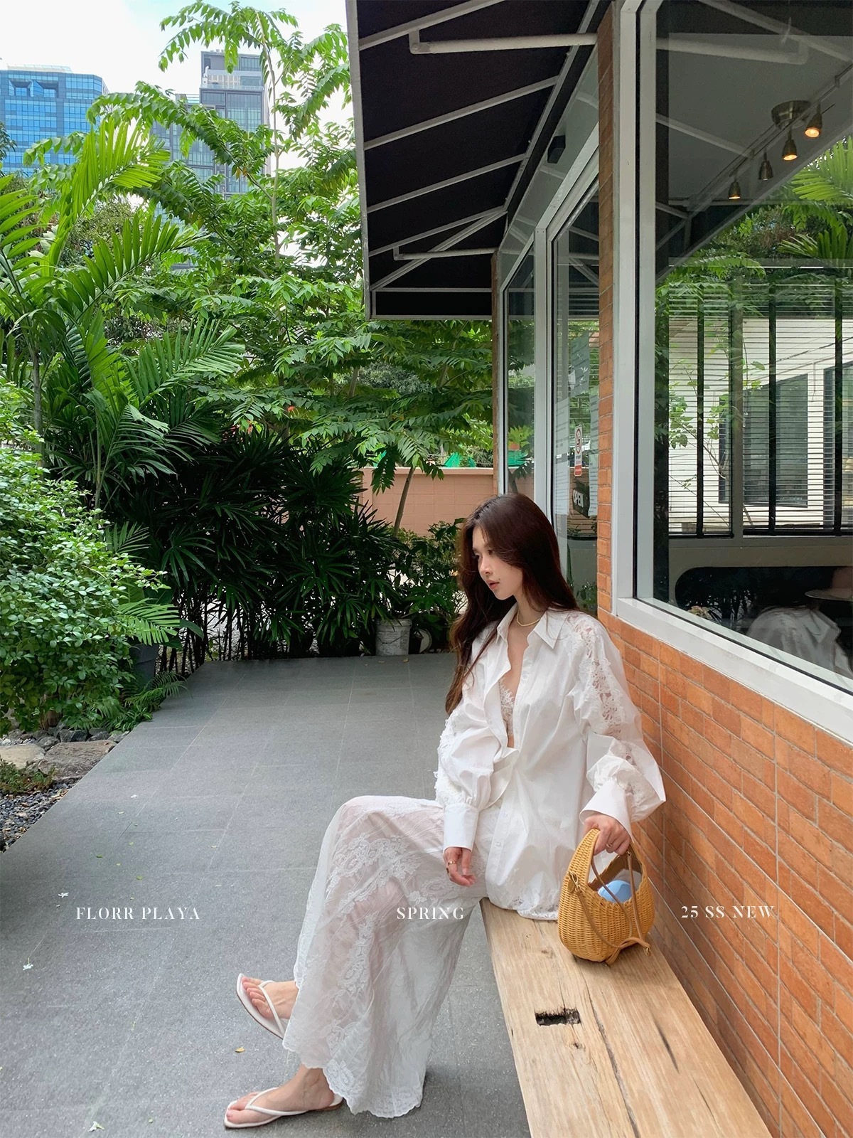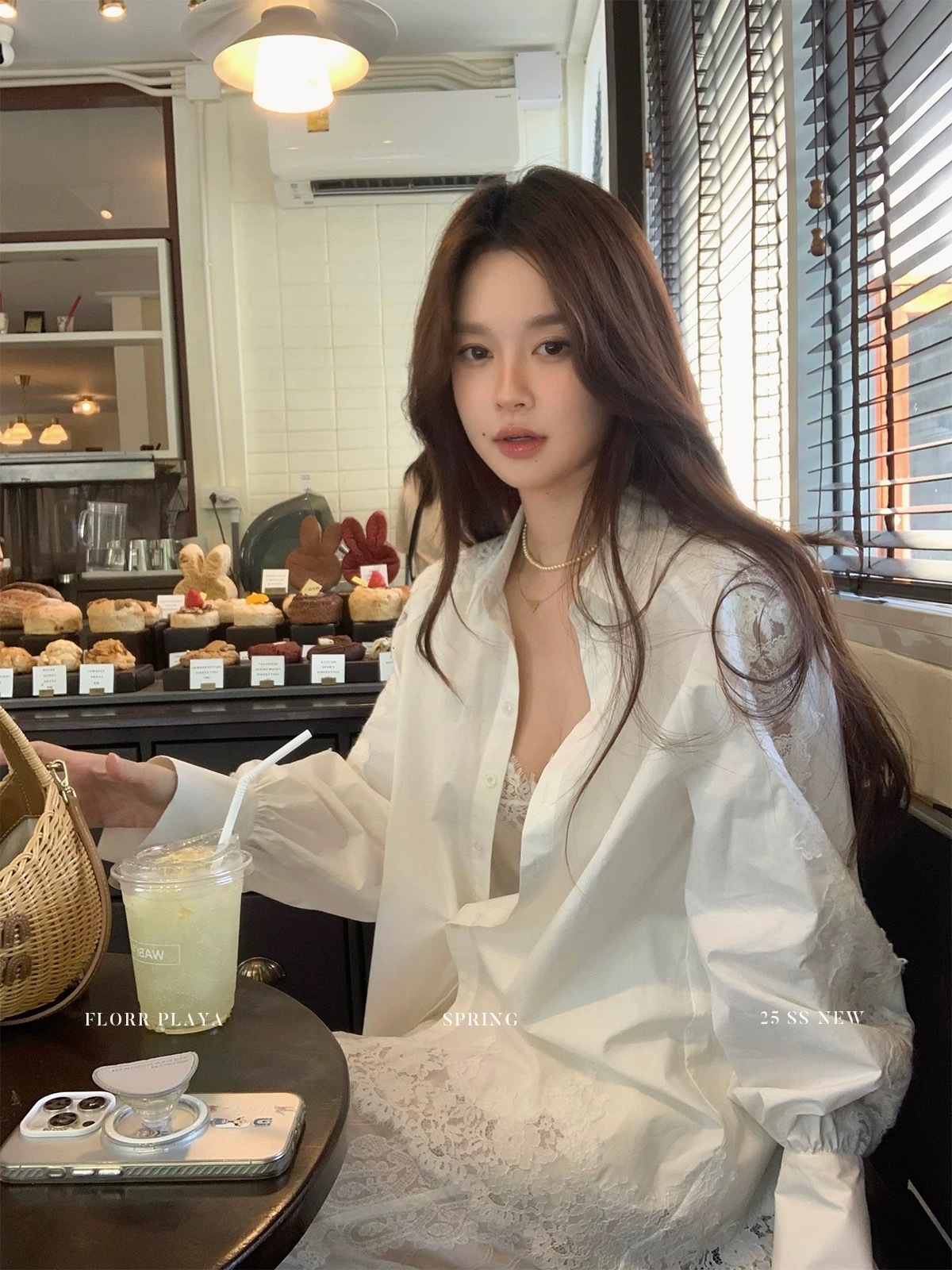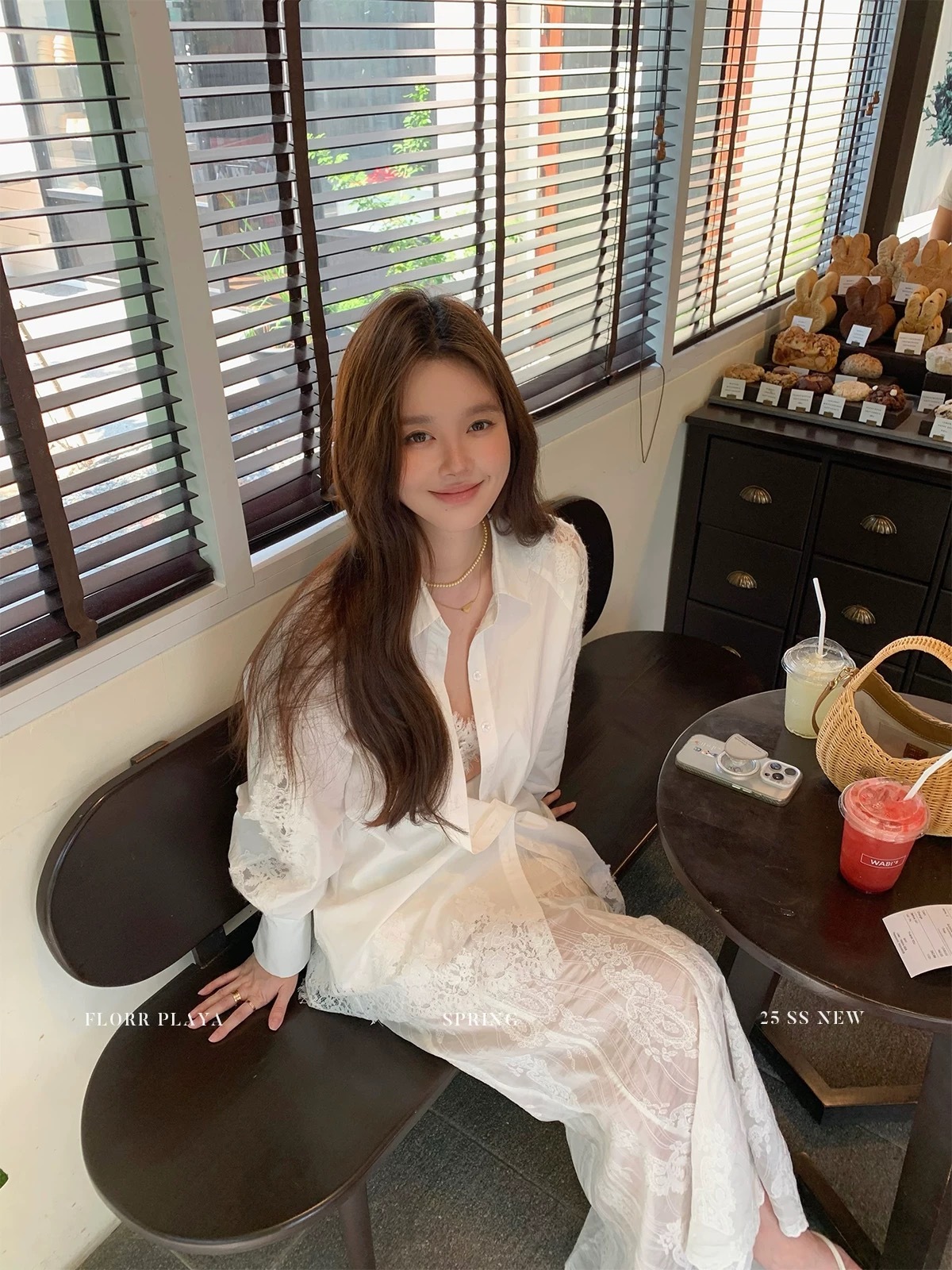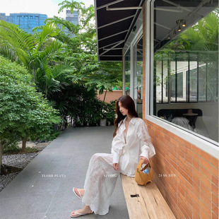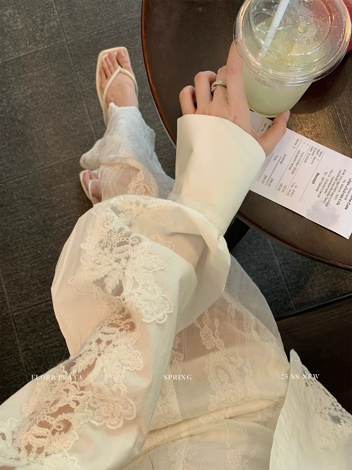 蕾絲拼接長袖襯衫+長裙套裝(2件組)