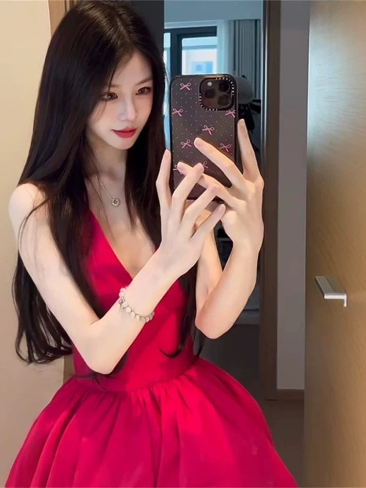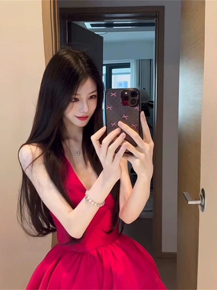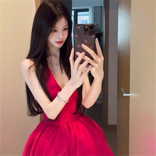 V領收腰 澎裙小洋裝