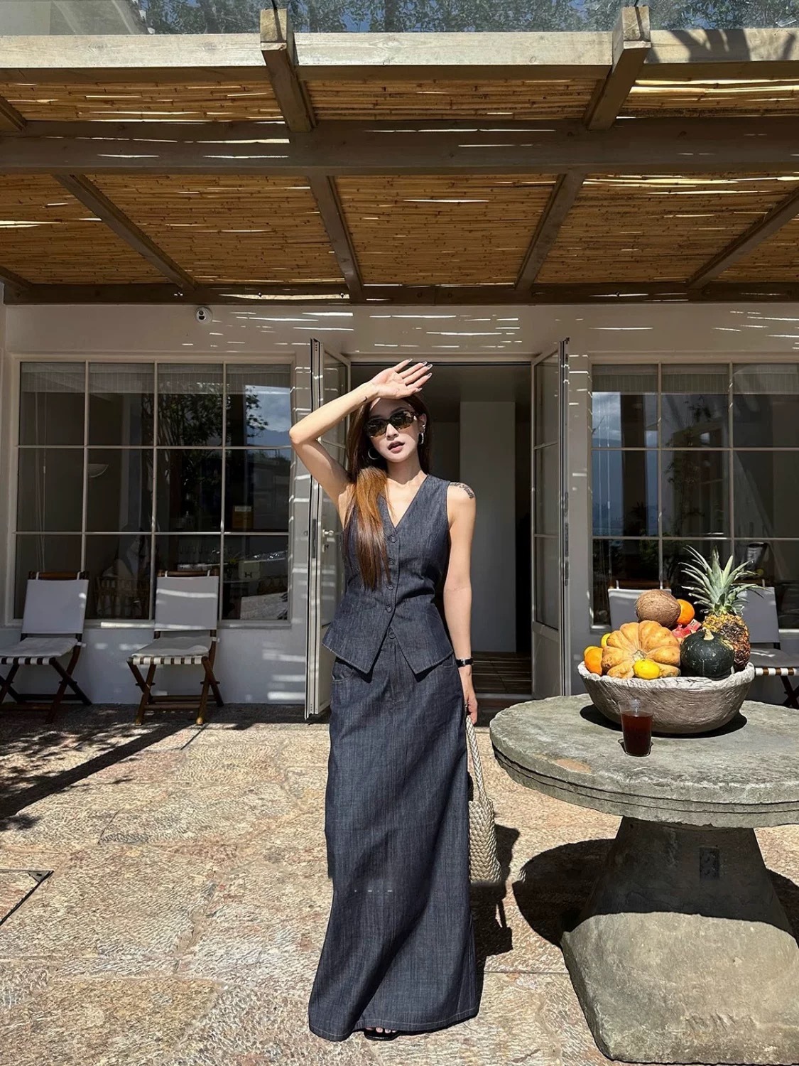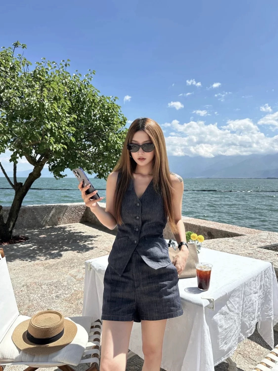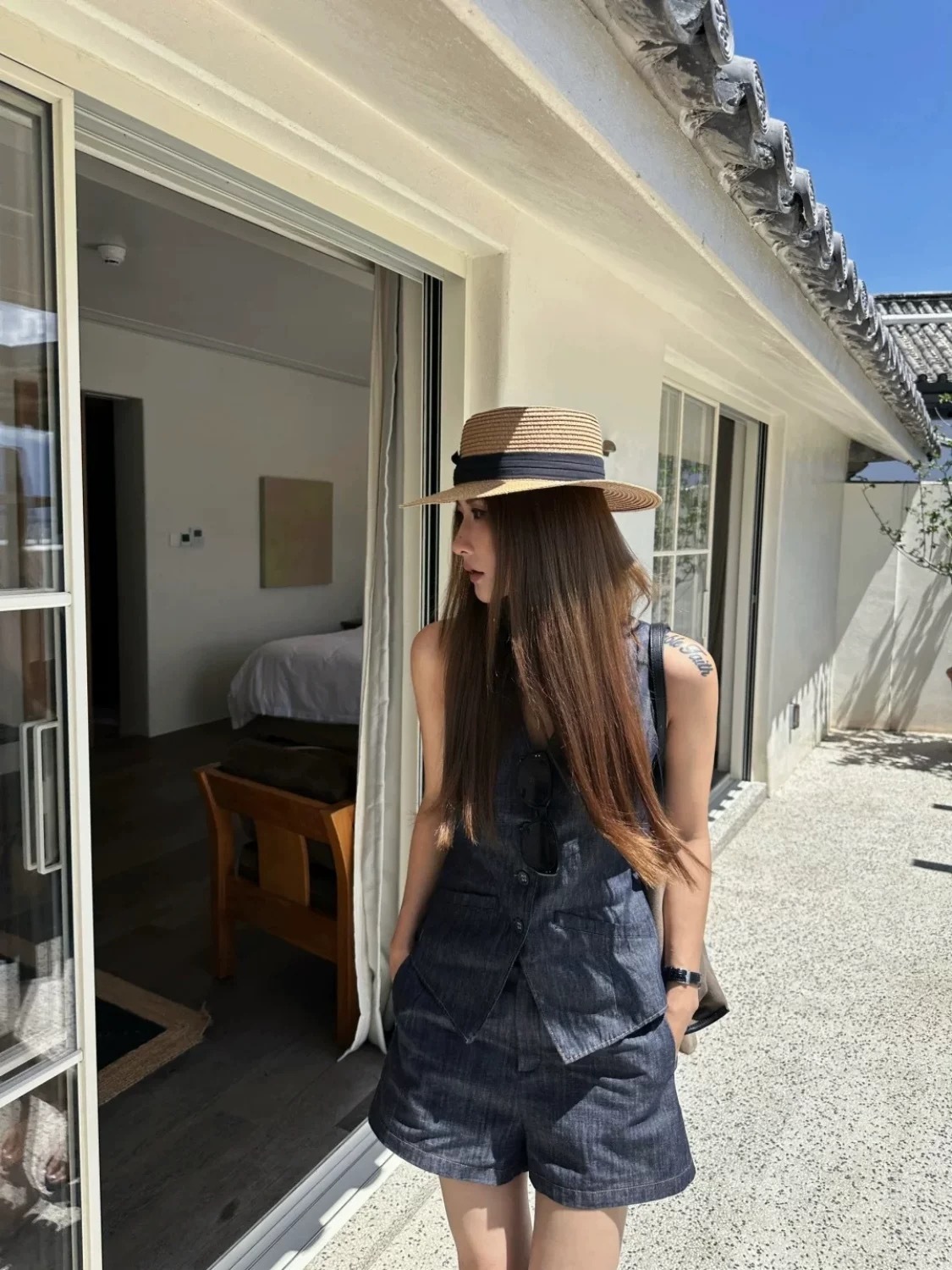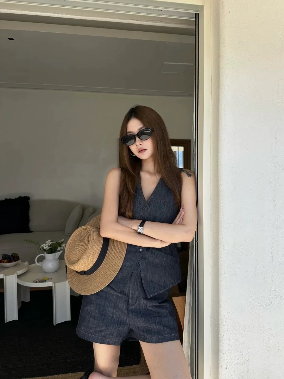 鬆弛感套裝 V領無袖上衣+短褲(2件組)