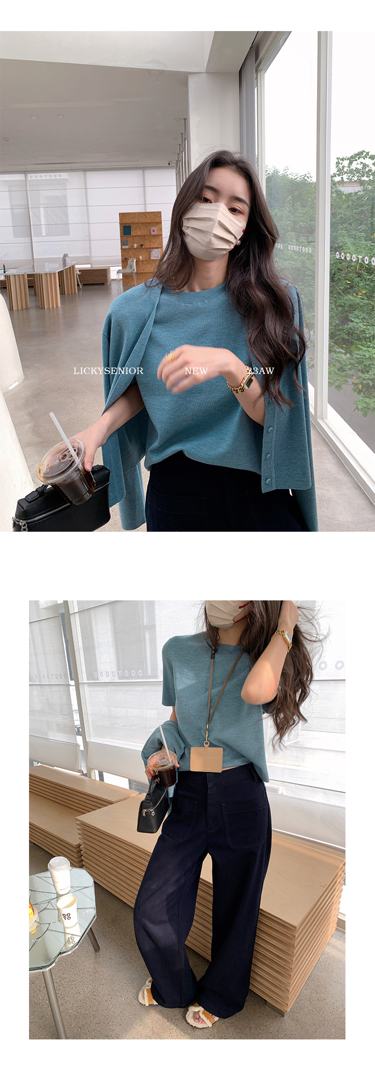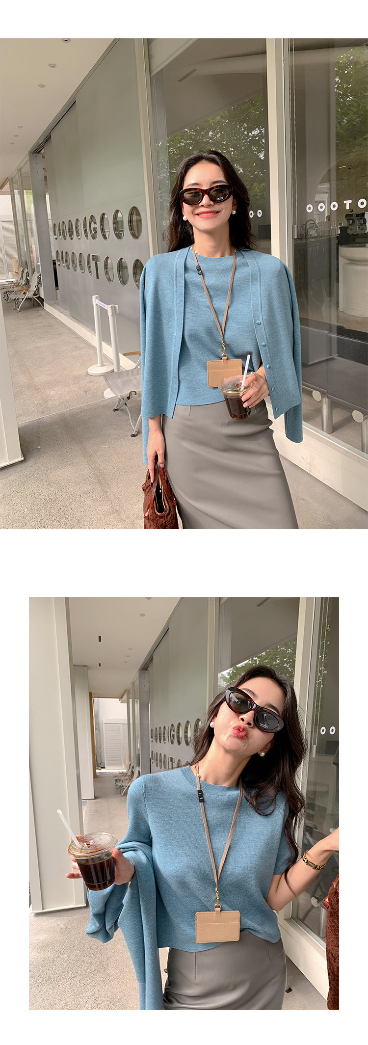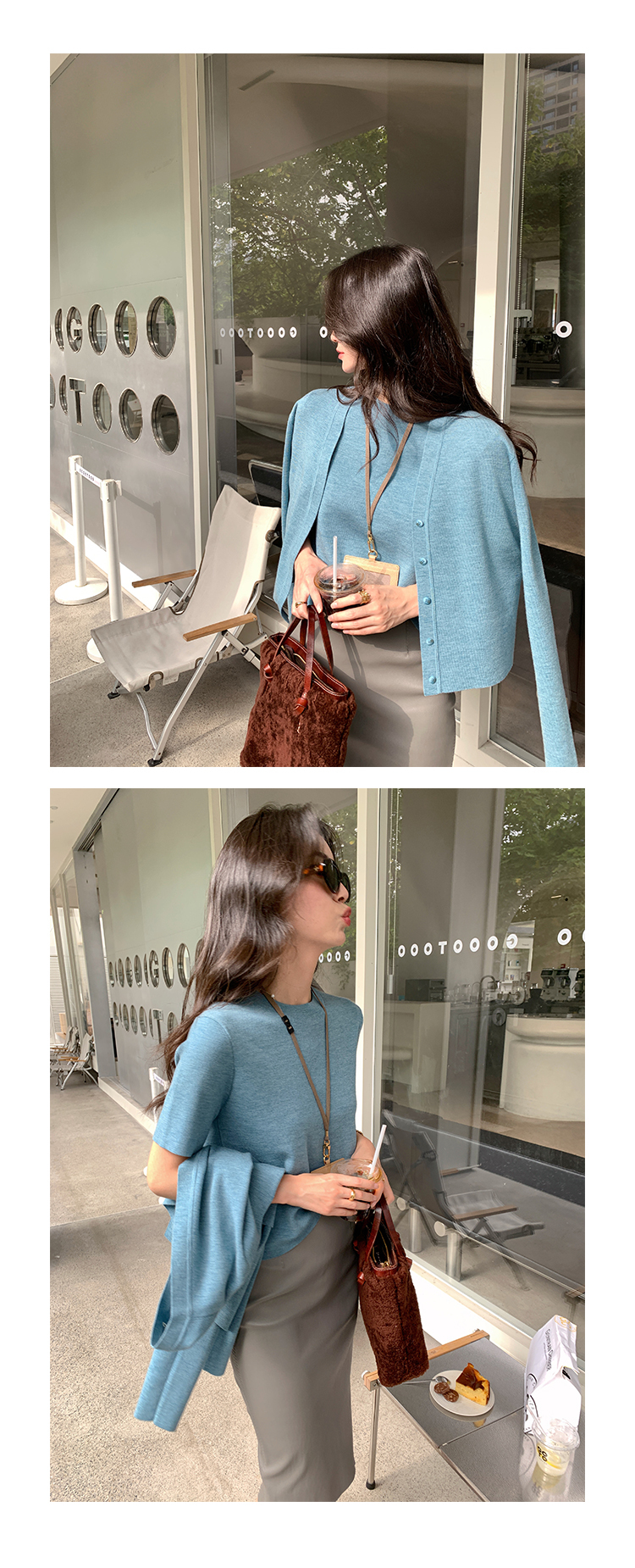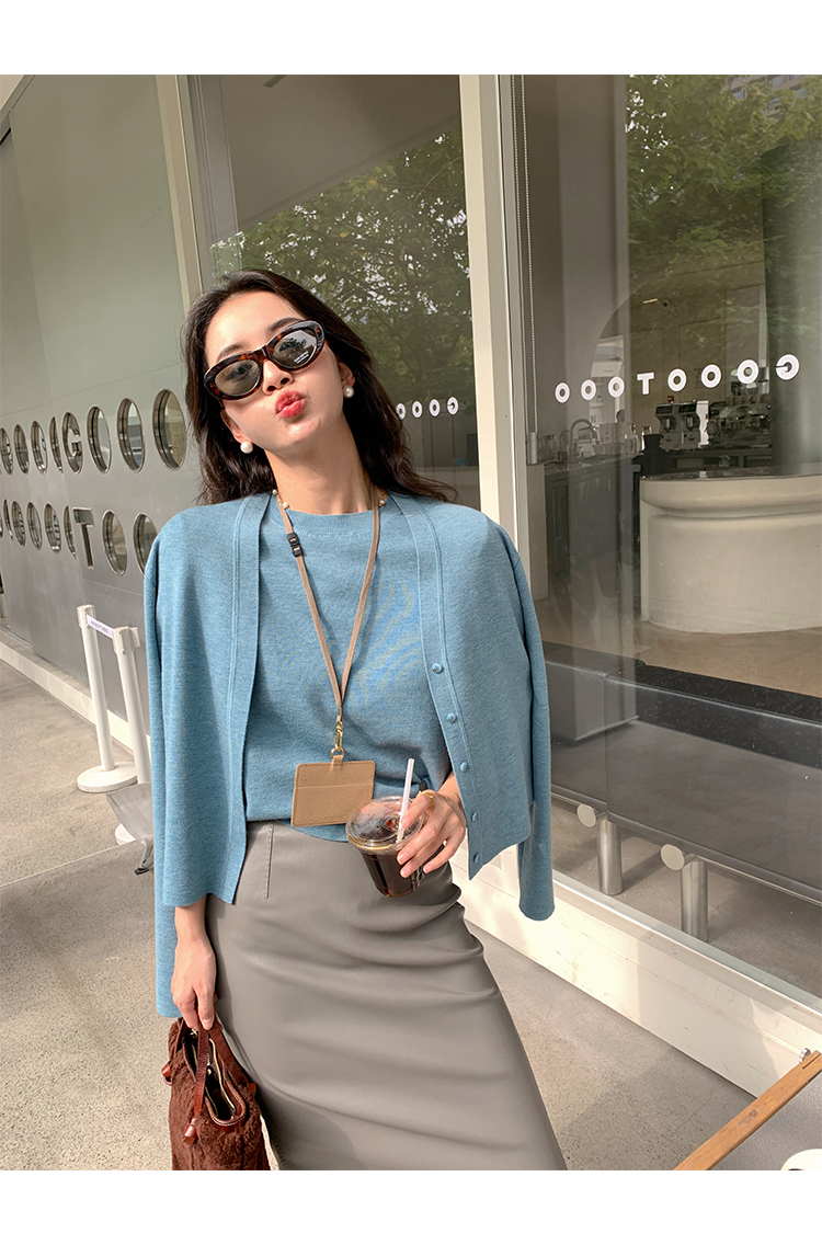 薄針織上衣2件組(灰藍/深藍/梅紅)