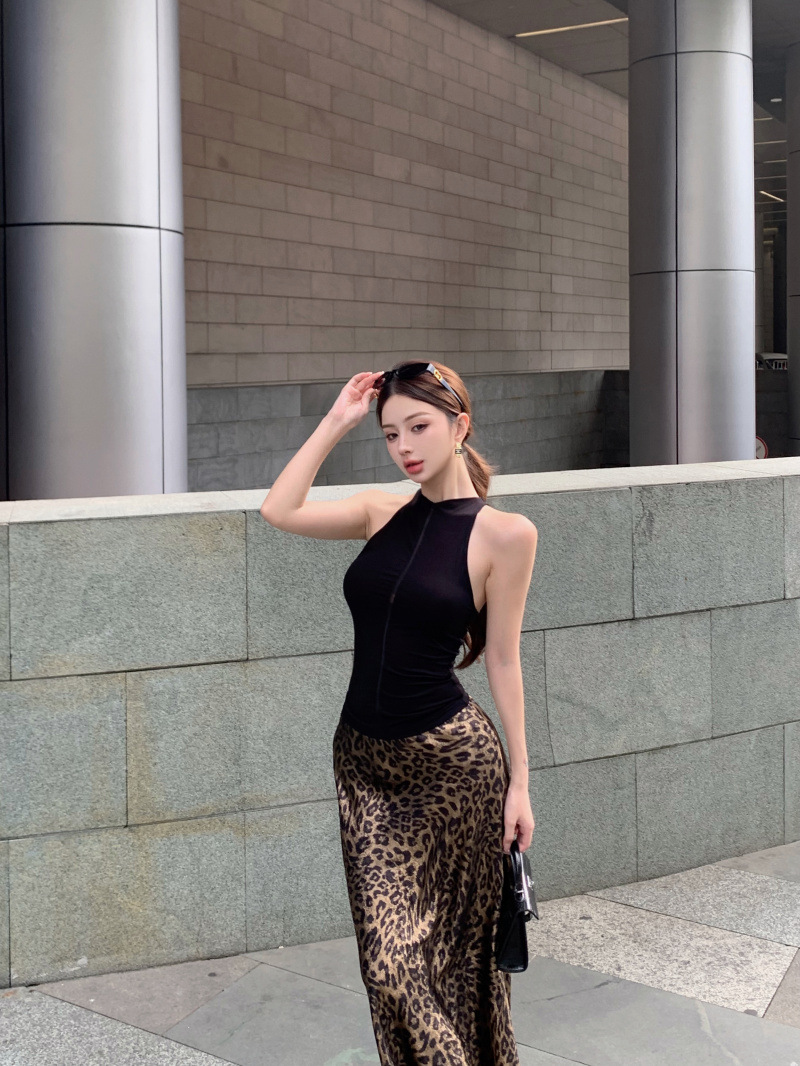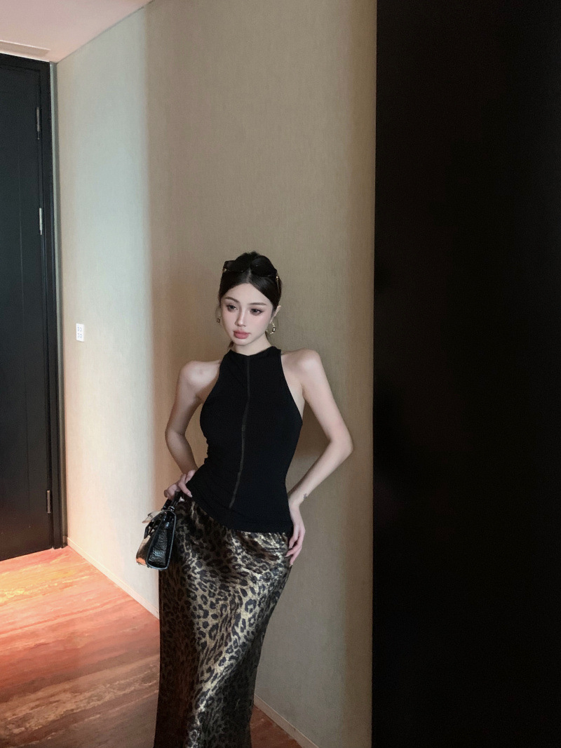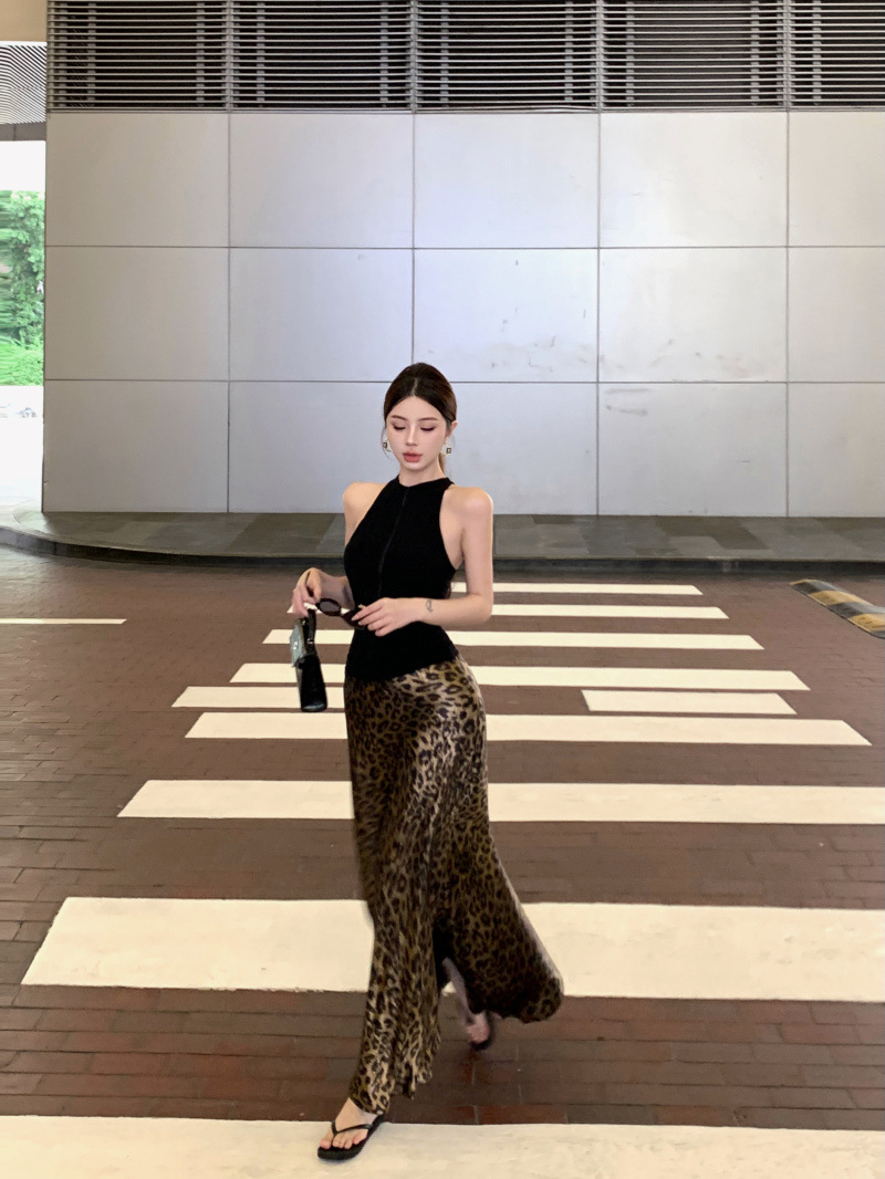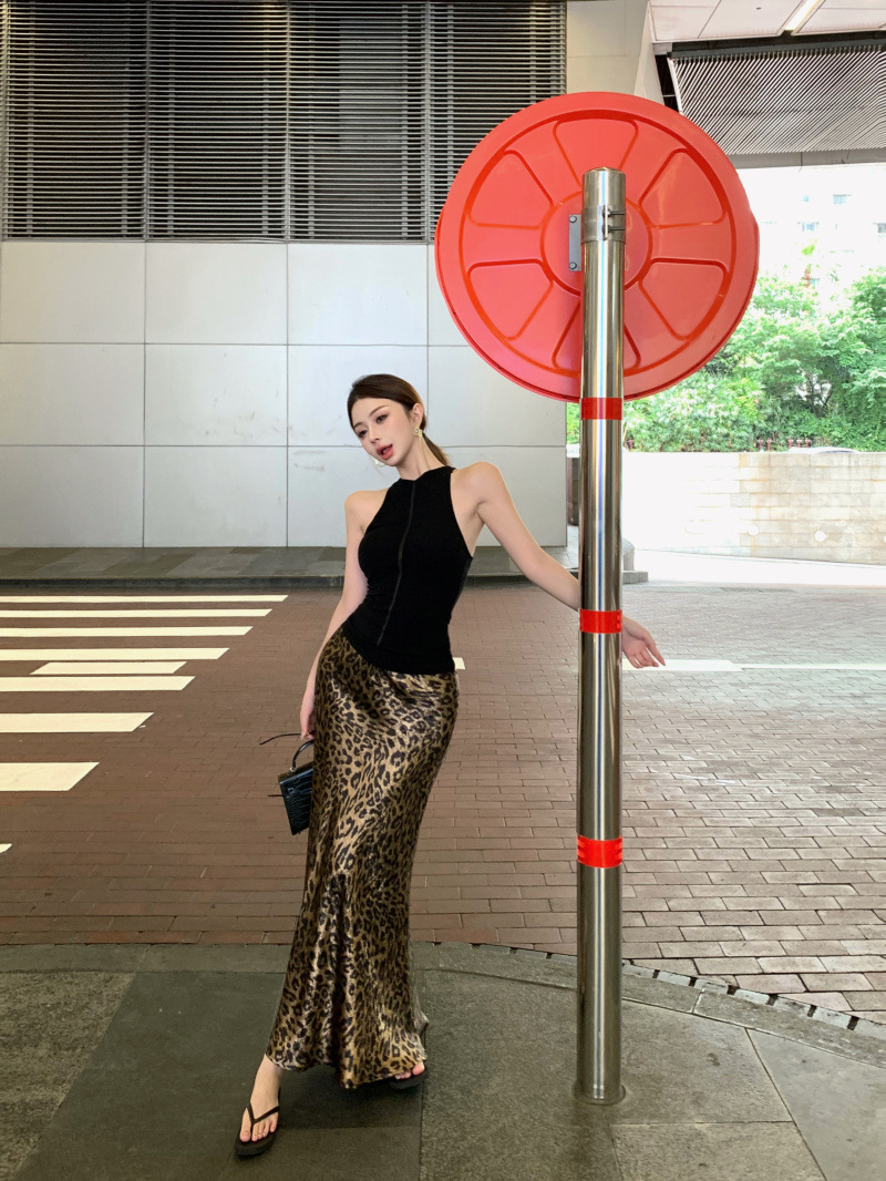 燙金緞面質感 豹紋魚尾裙