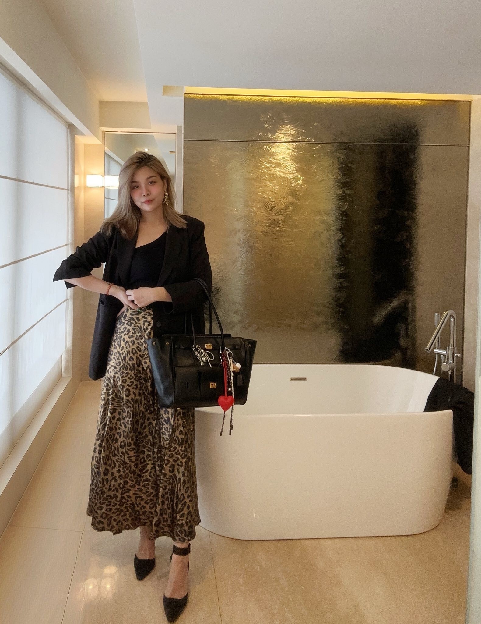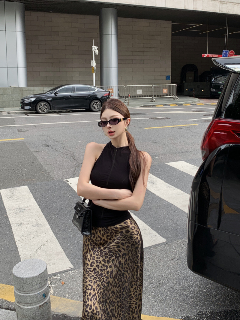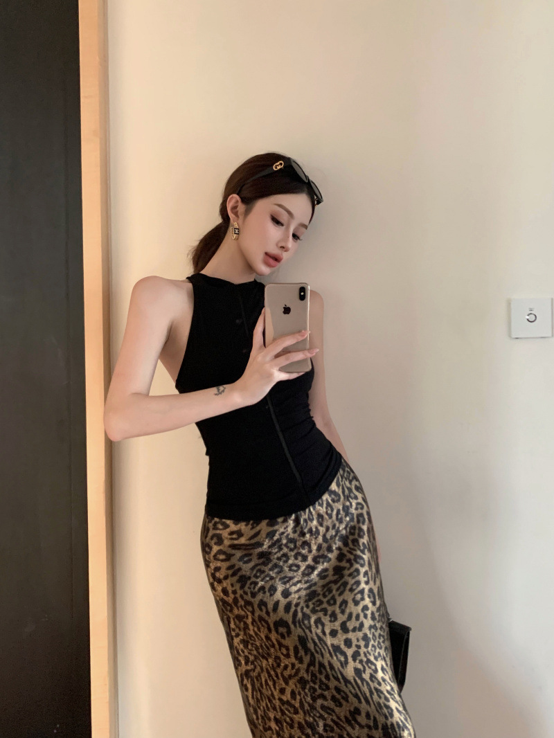 燙金緞面質感 豹紋魚尾裙