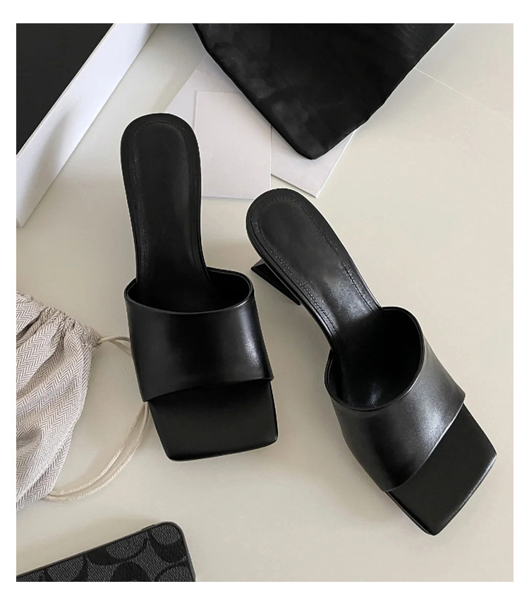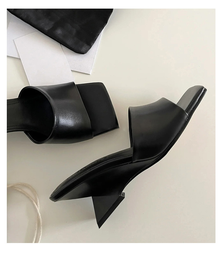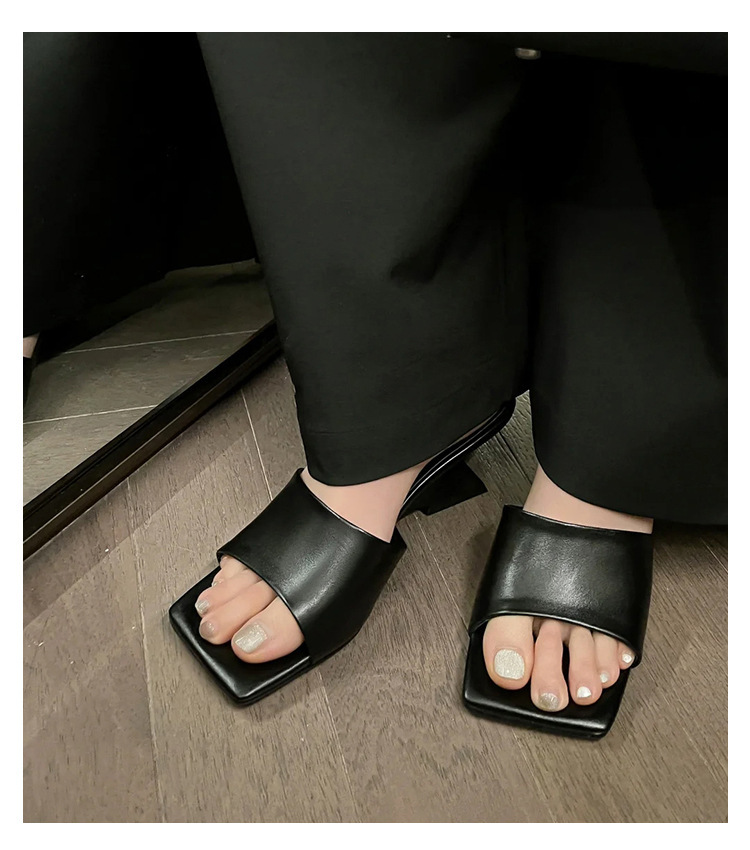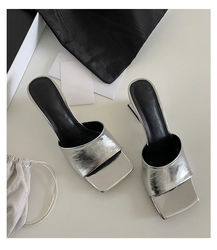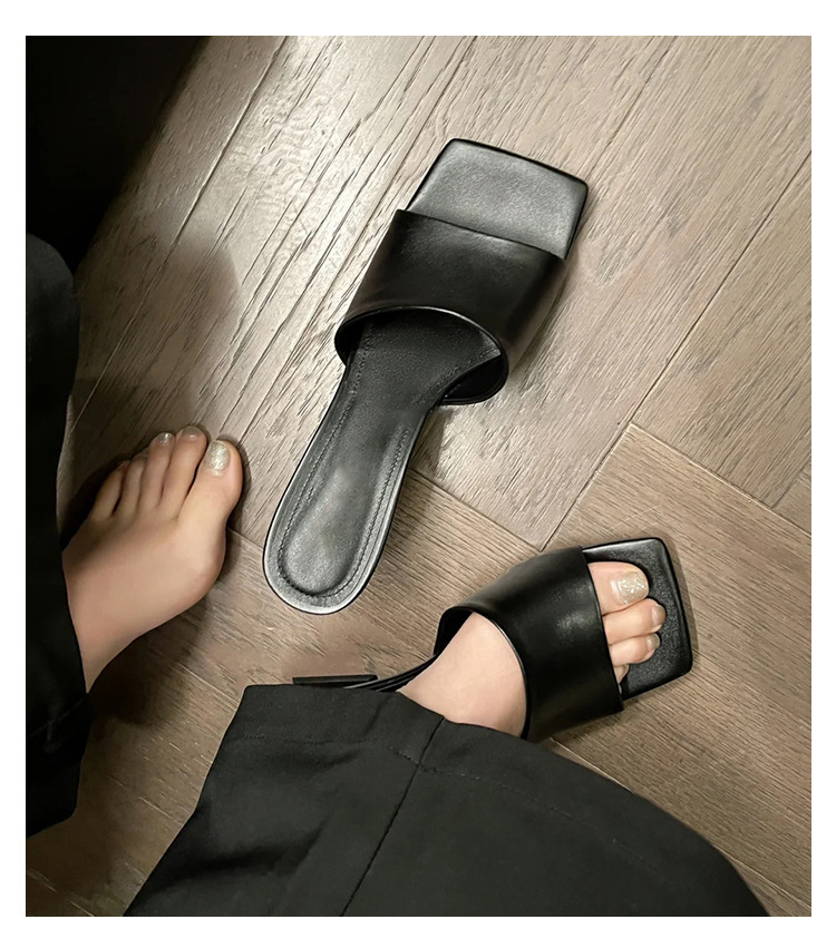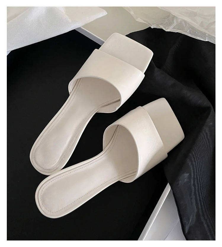 造型偰型根 方頭簡約跟拖(35-39)(黑/銀/白)