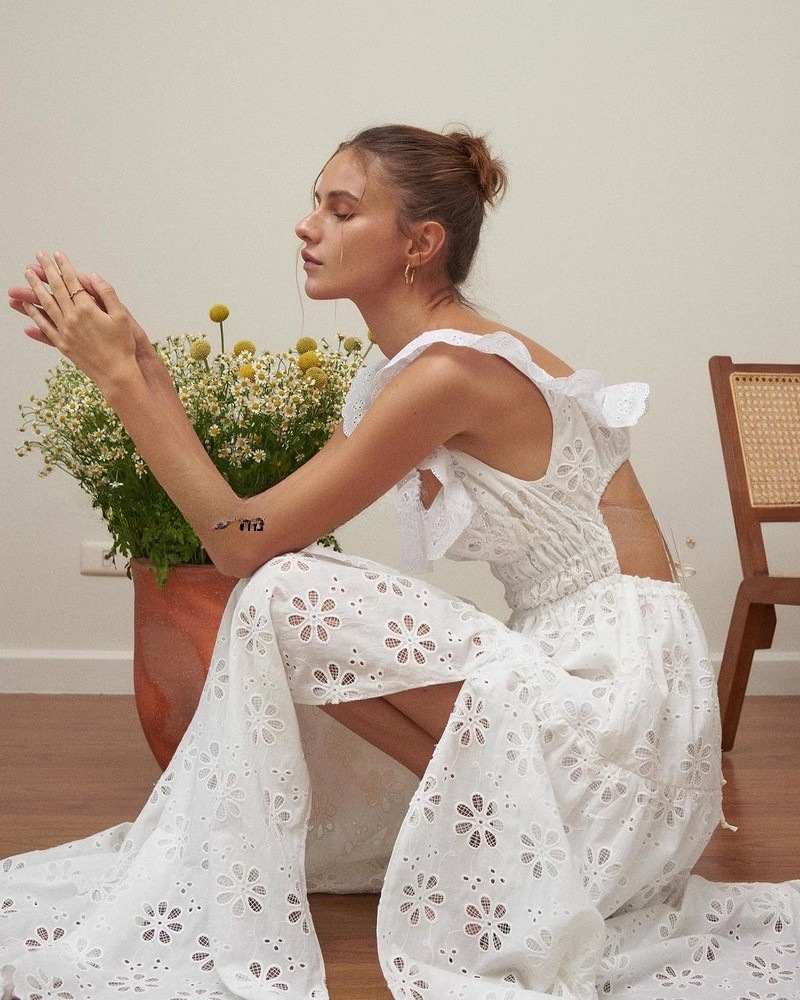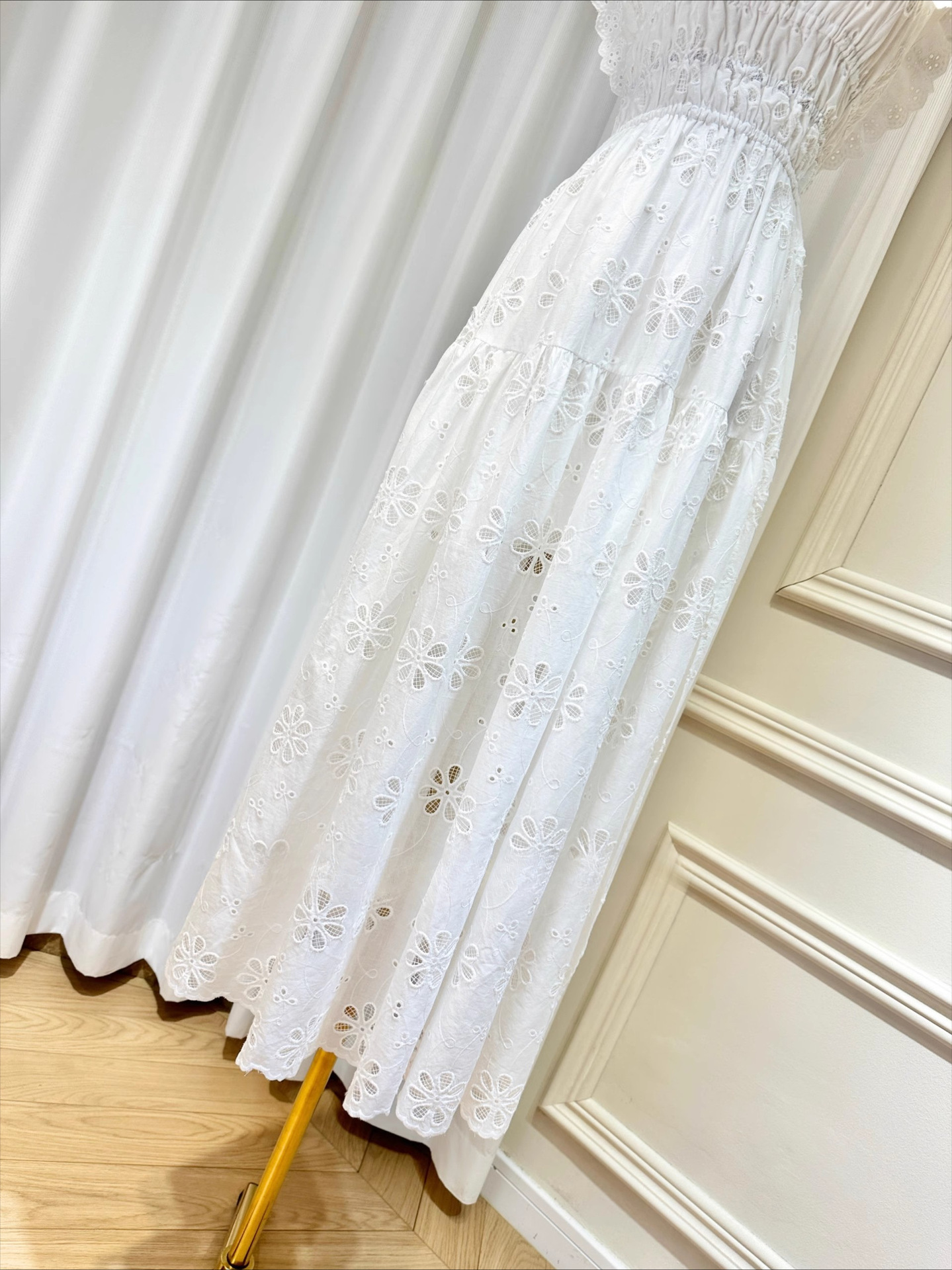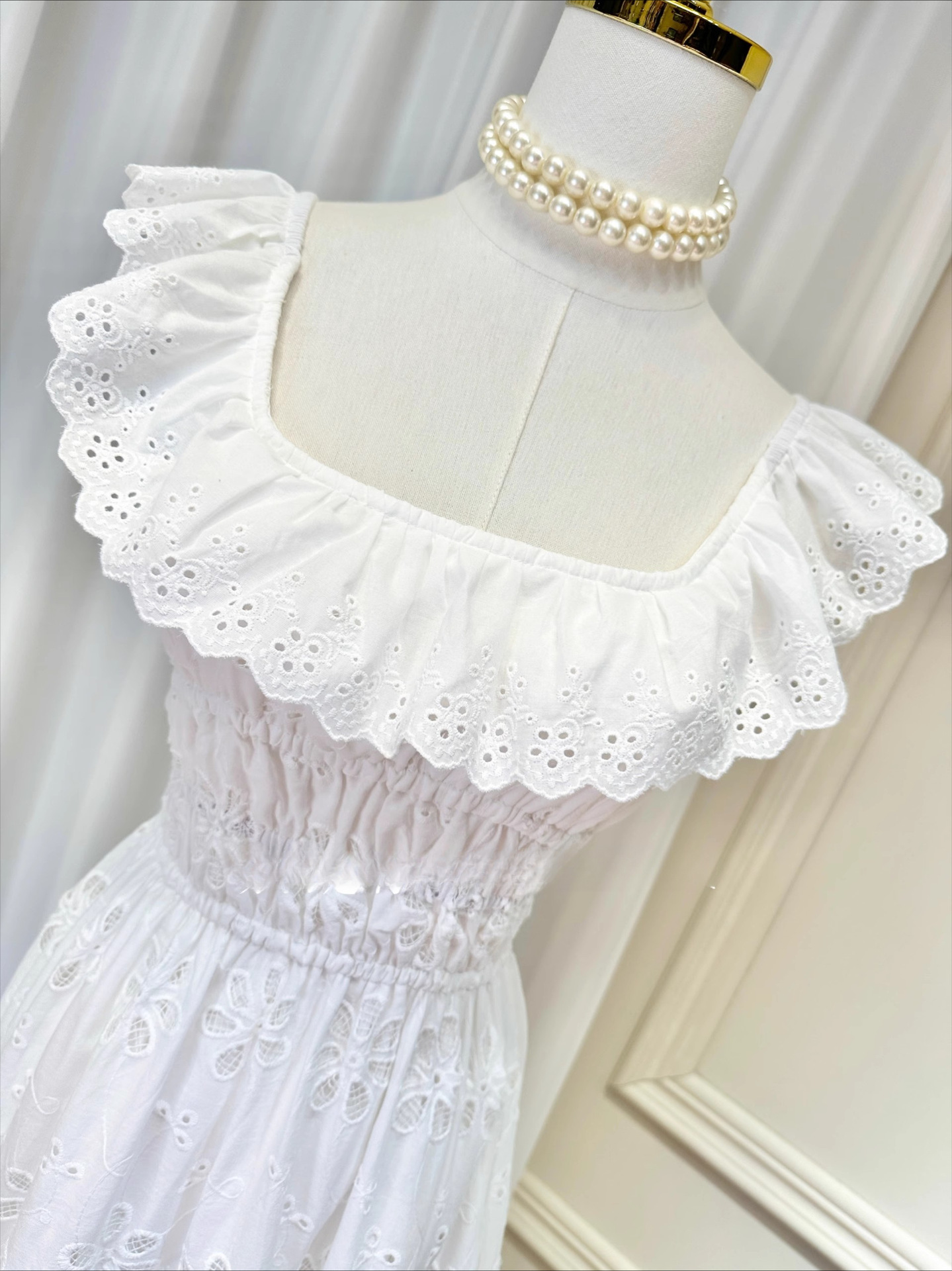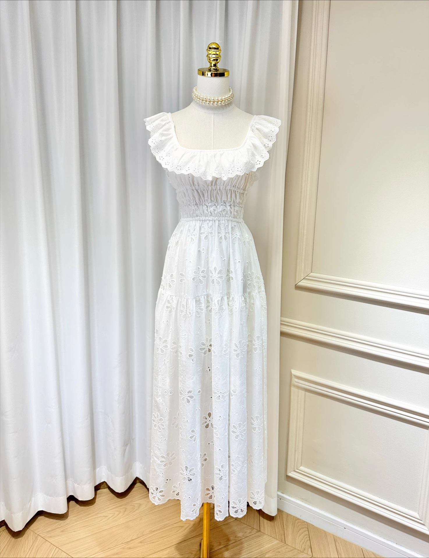 刺繡簍空 方領荷葉邊露背長洋裝