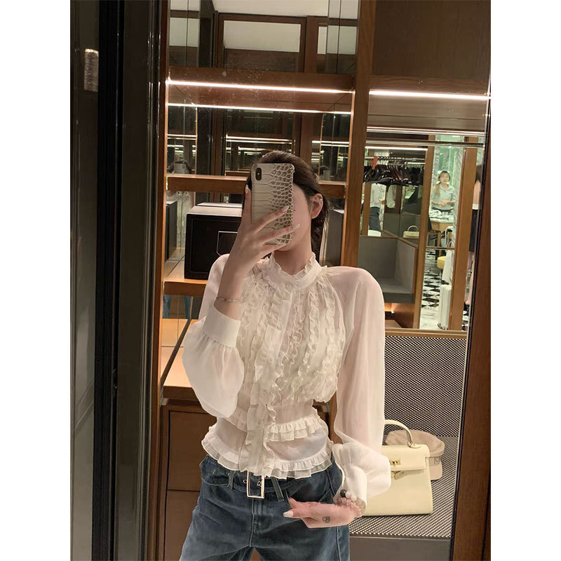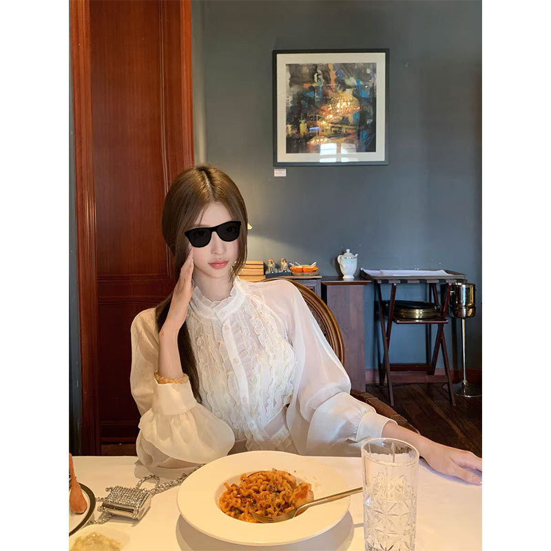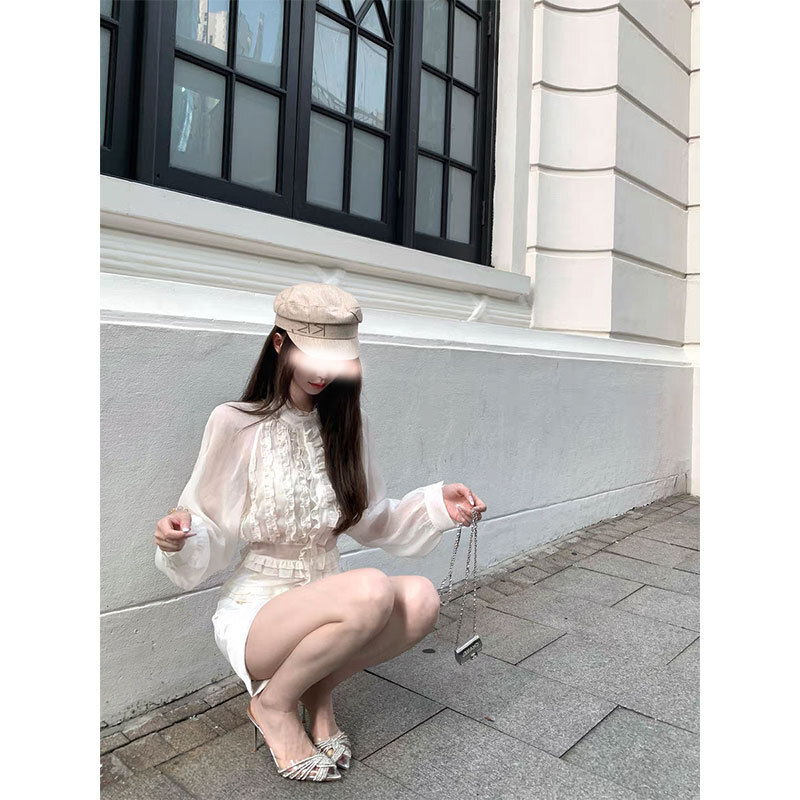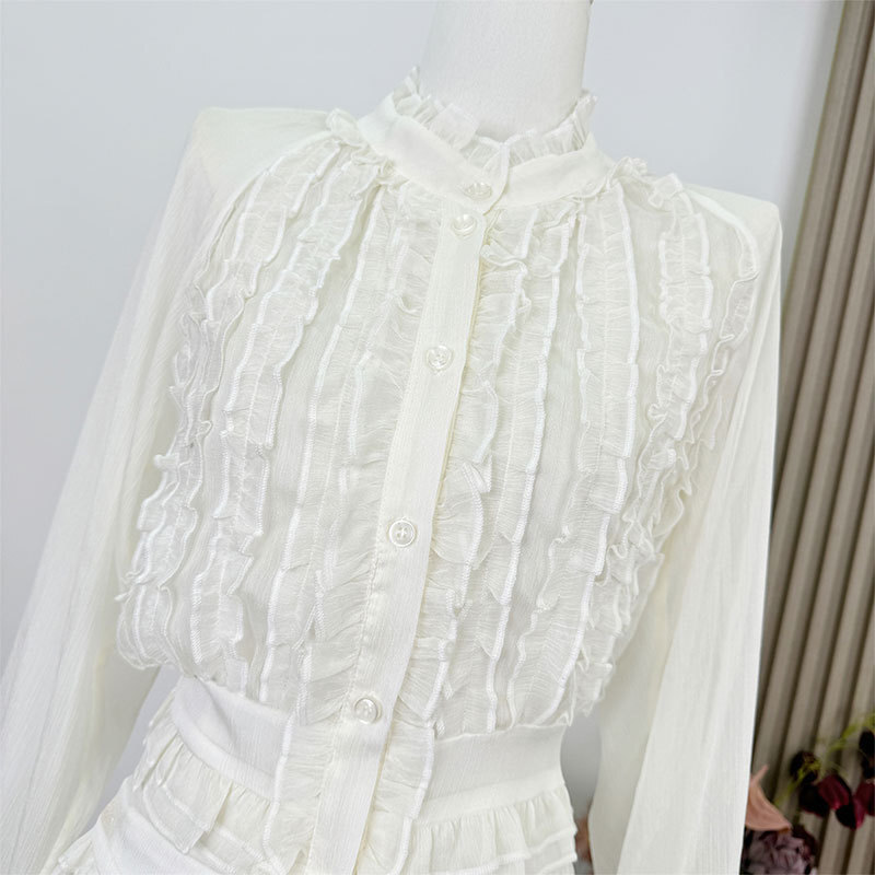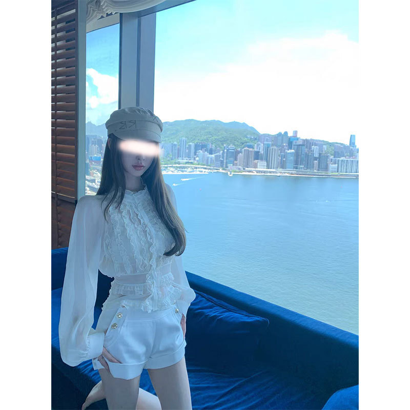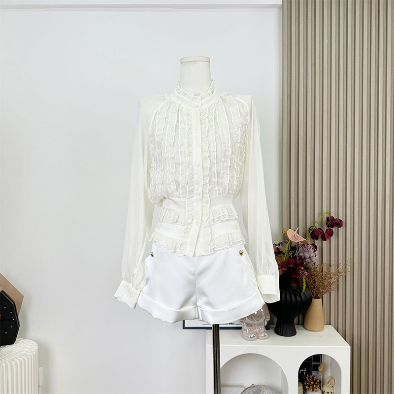 雪紡木耳邊 宮廷襯衫+高短褲 (2件組)