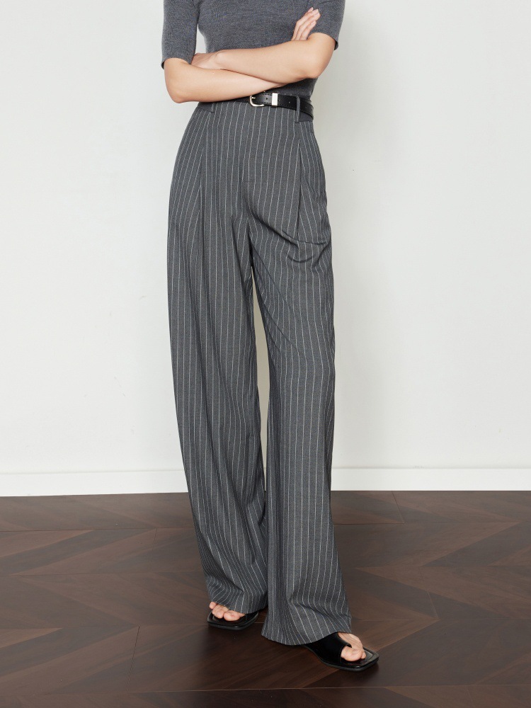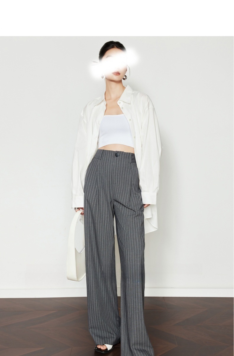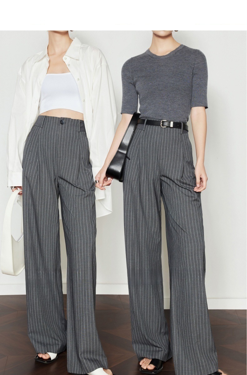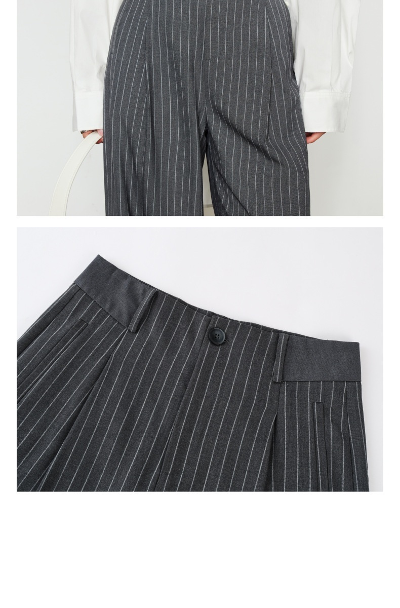 條紋垂墜感 高腰直筒褲