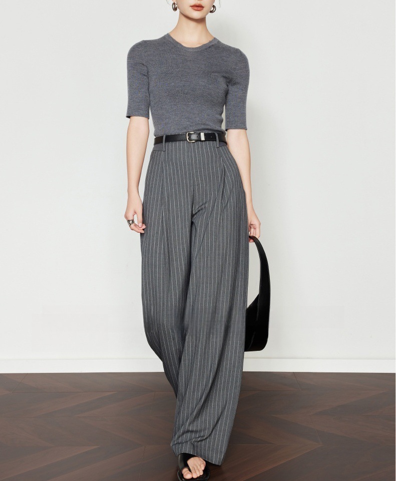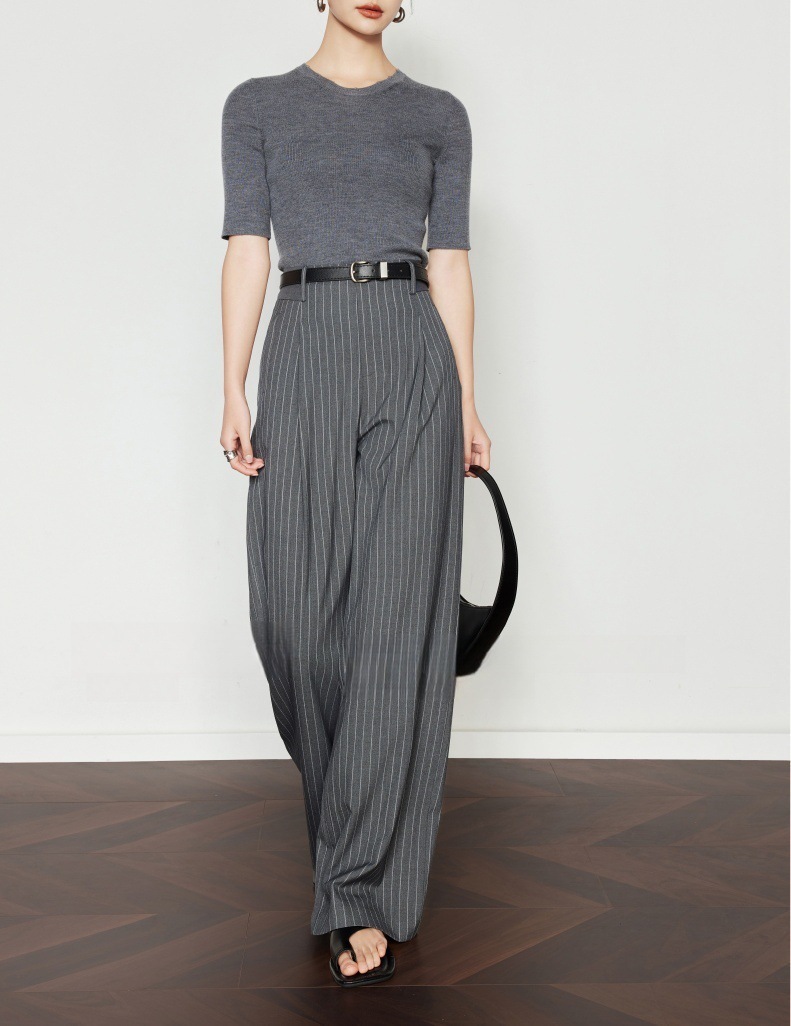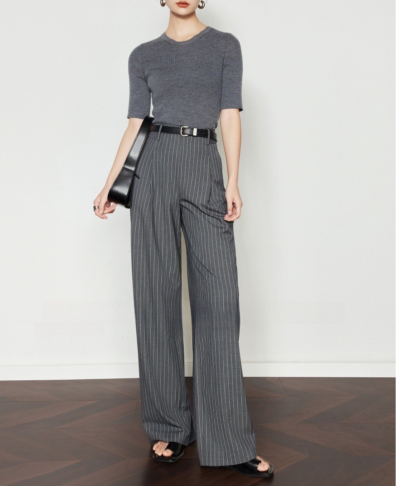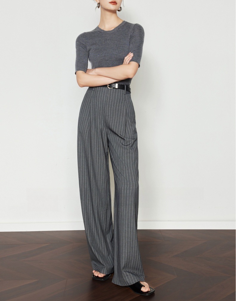 條紋垂墜感 高腰直筒褲