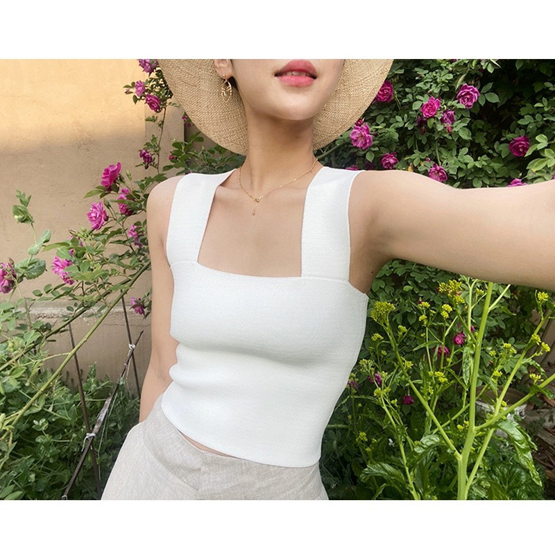 全部商品 / 顯瘦百搭!方領寬肩背心上衣(黑/白)