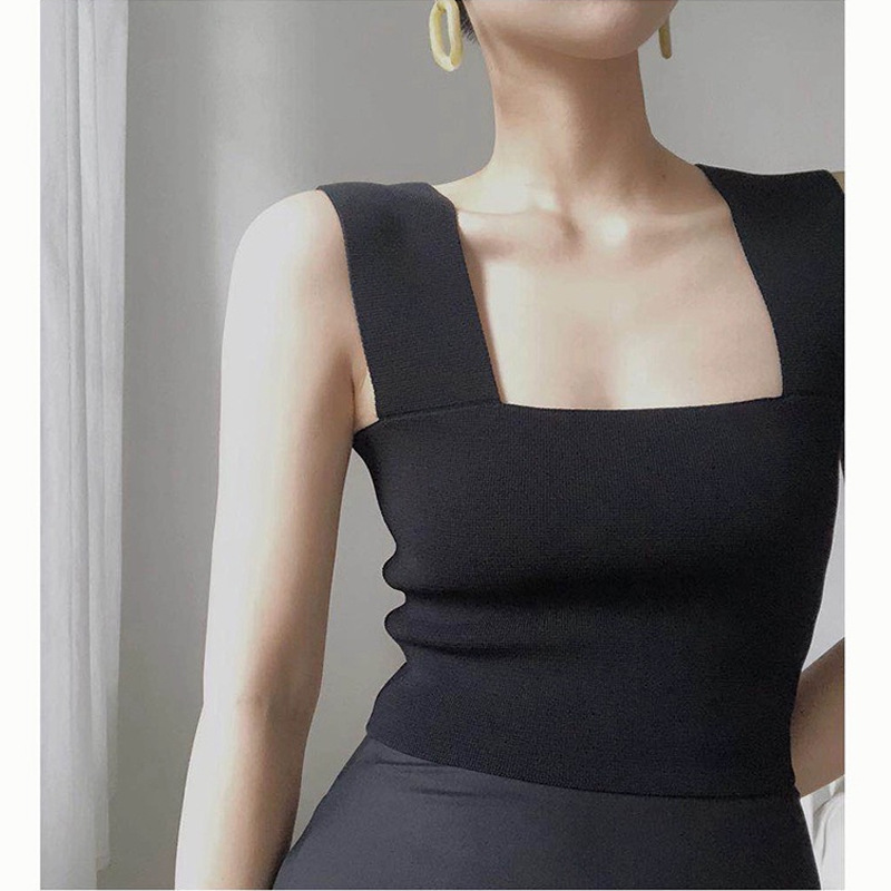 顯瘦百搭!方領寬肩背心上衣(黑/白)