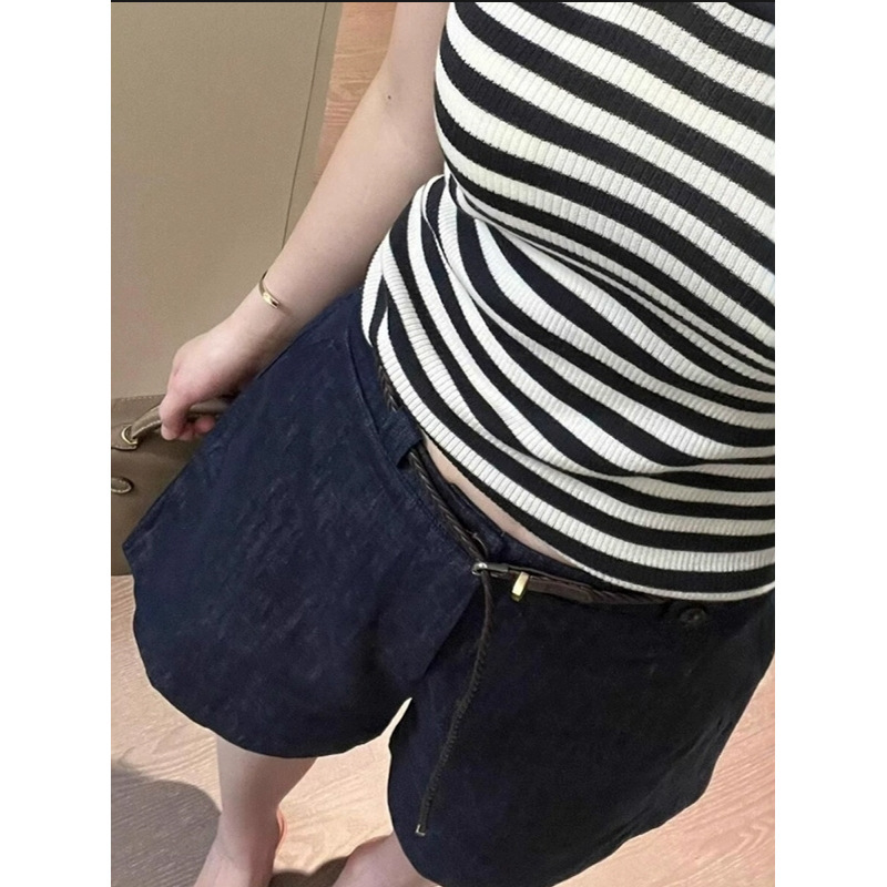 質感顯瘦! 高腰亞麻牛仔短褲(附編織腰帶)