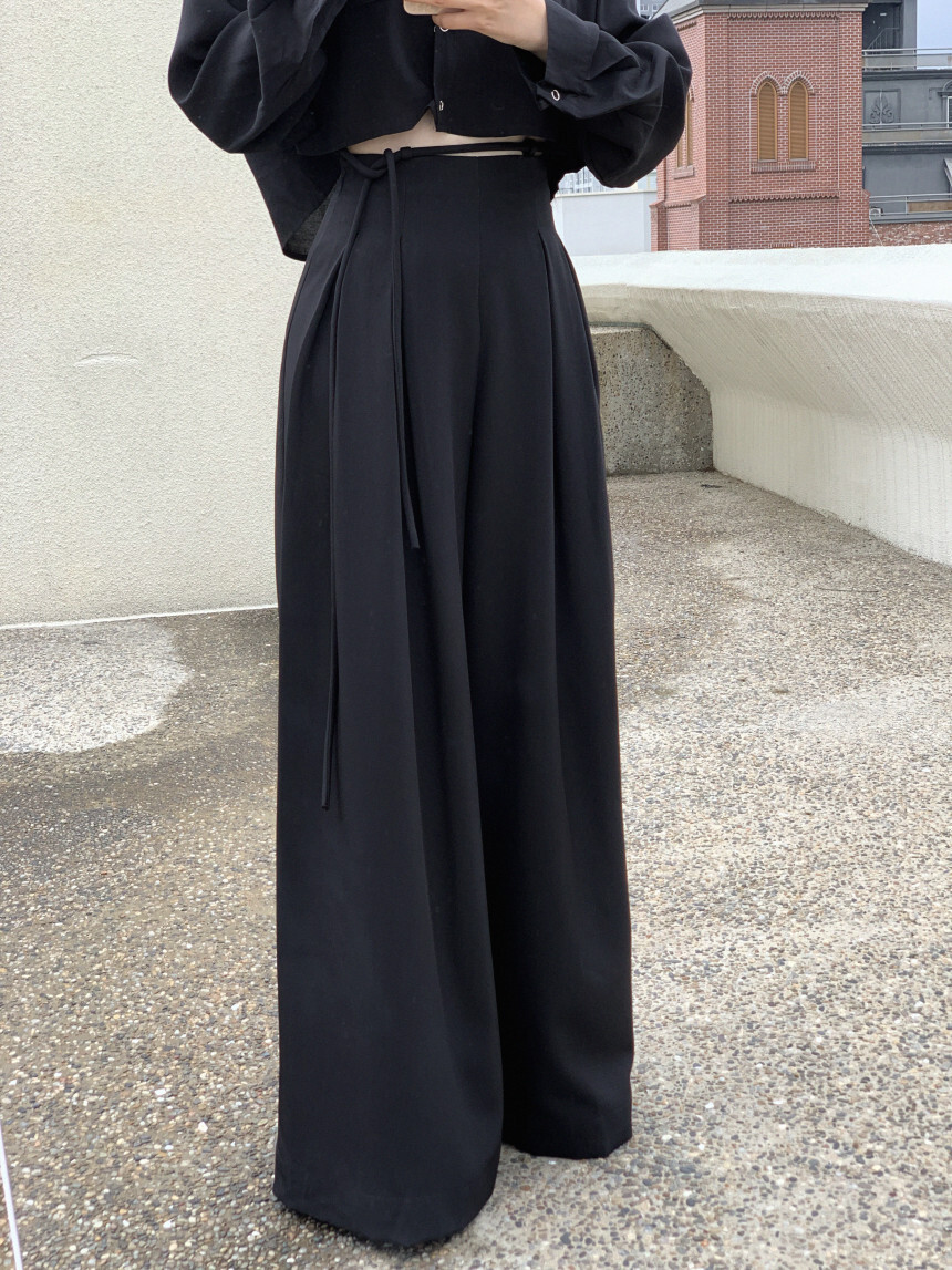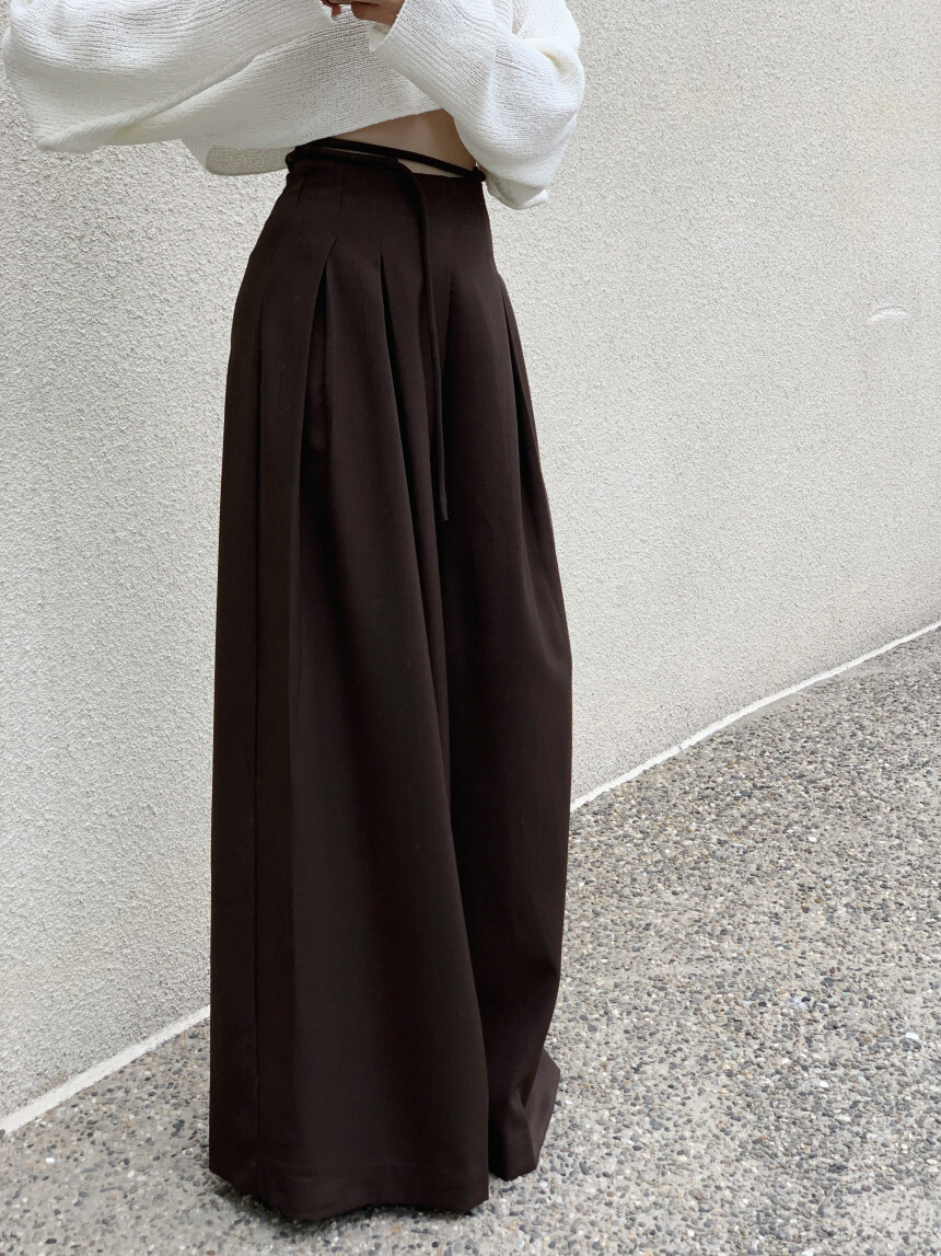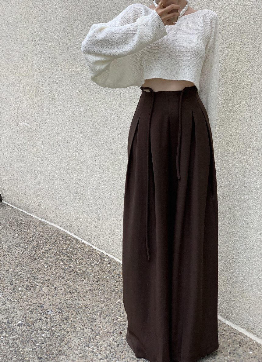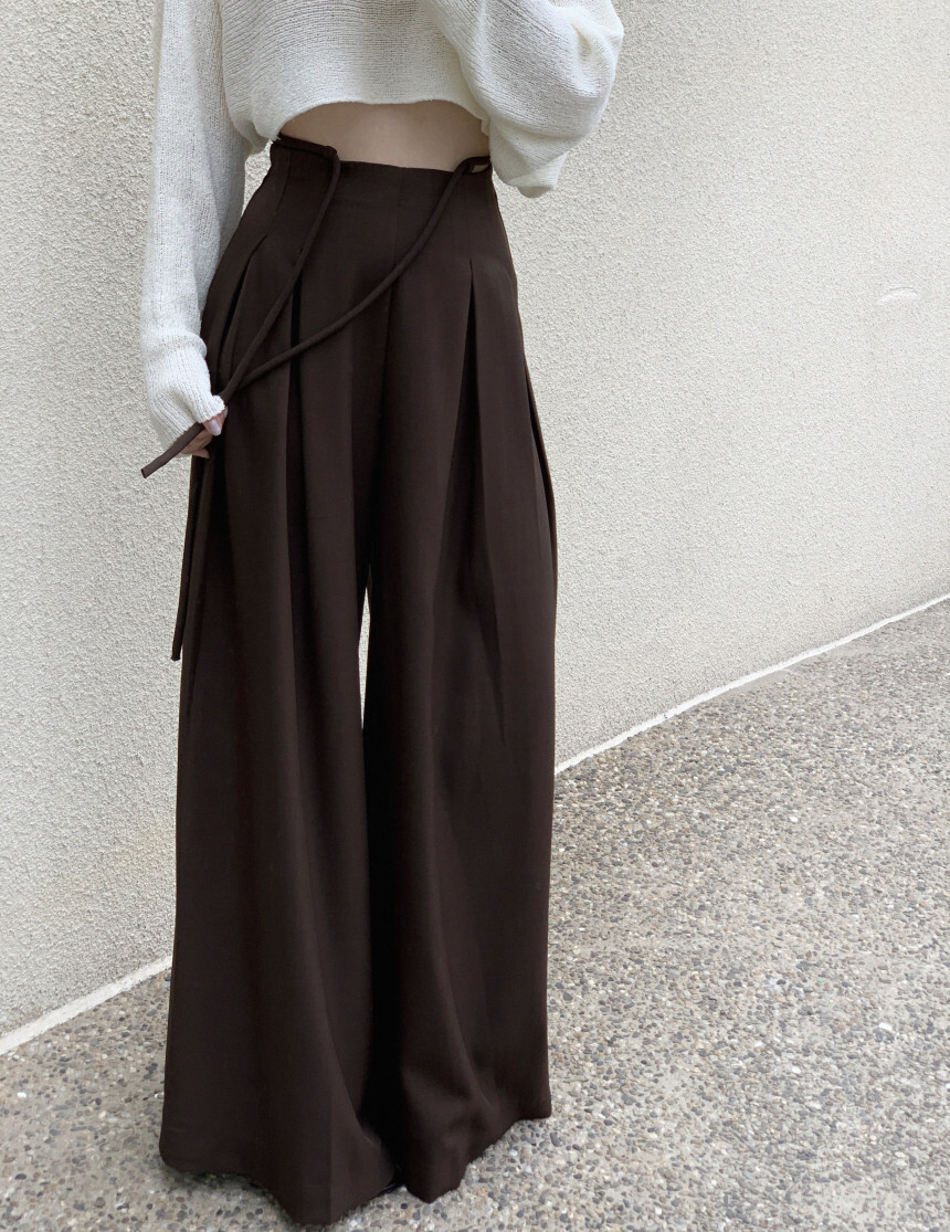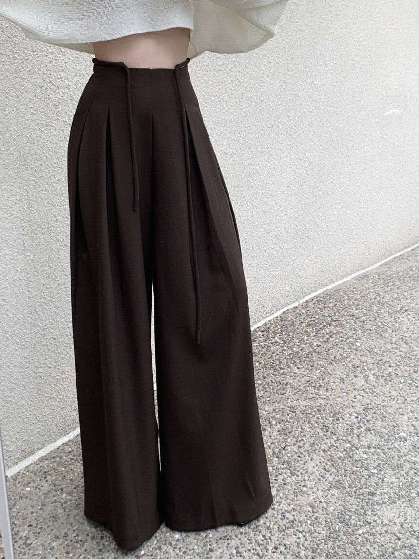 東大門 抽繩設計高腰垂墜寬褲(咖/黑)